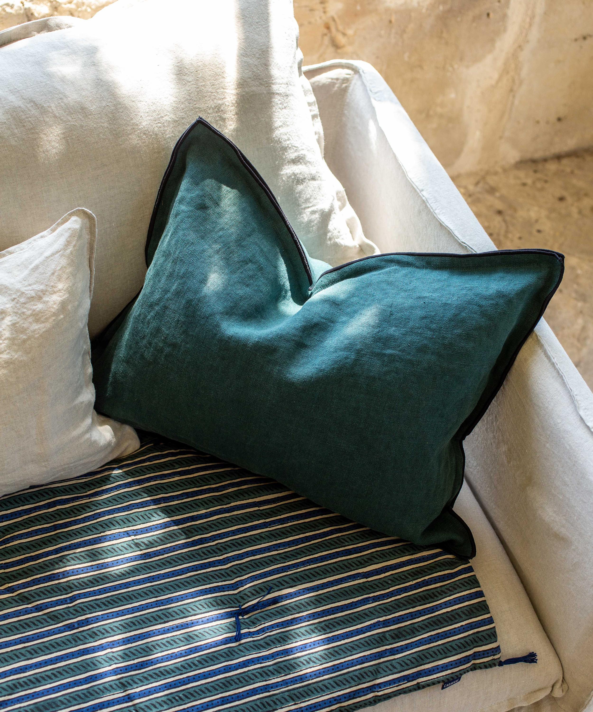A homeware brand that celebrates the eclectic landscape of a lived-in home, this cushion cover is crafted entirely from wild linen for a richness of tone, the fibre revealing the subtlety of each hue - perfect for adding texture and comfort to interior spaces.About Caravane