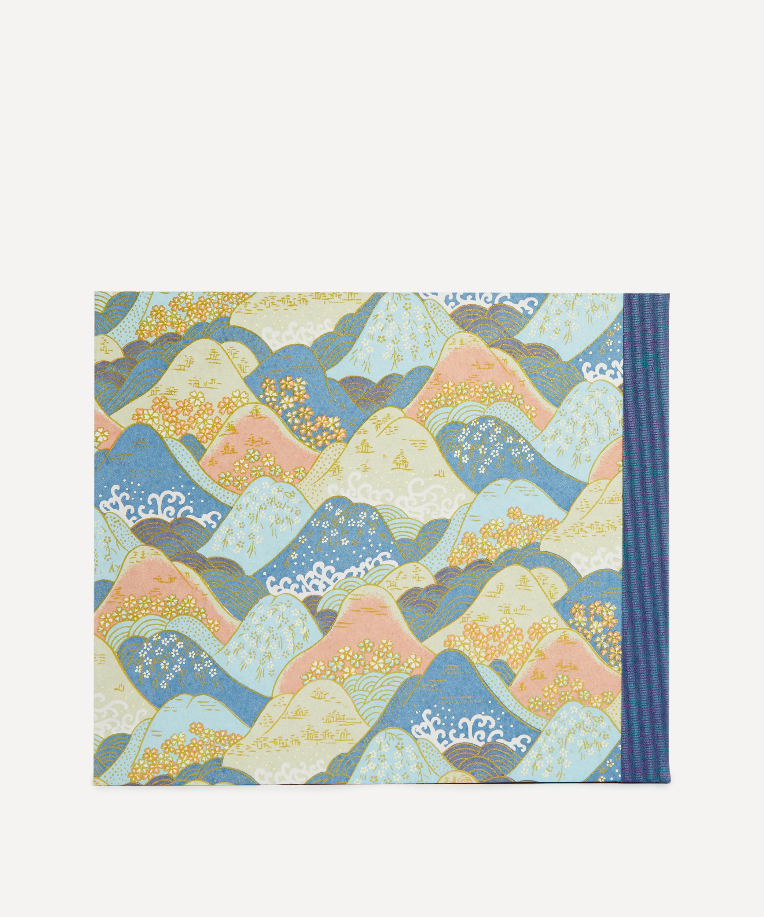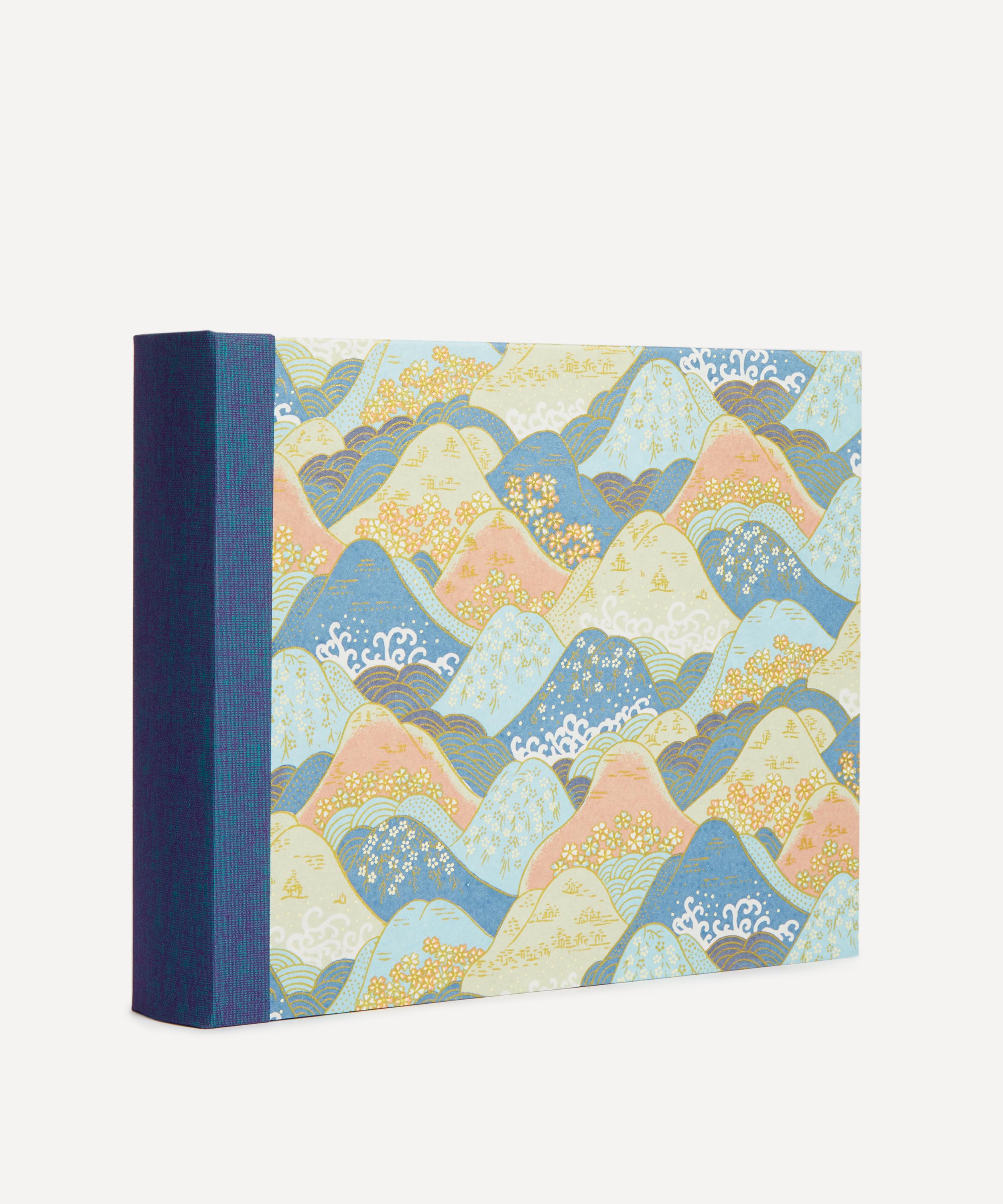 Store precious memories this charming photo album from Esmie - bound by hand, it features 30 off-white leaves overlaid with glassine to protect your beloved photographs. The front is adorned with rolling hills, flowing streams and blossom sprays in pastel peach, deep ink and sky blue with an undertone of moss green - reminiscent of a blooming spring in Kyoto.
