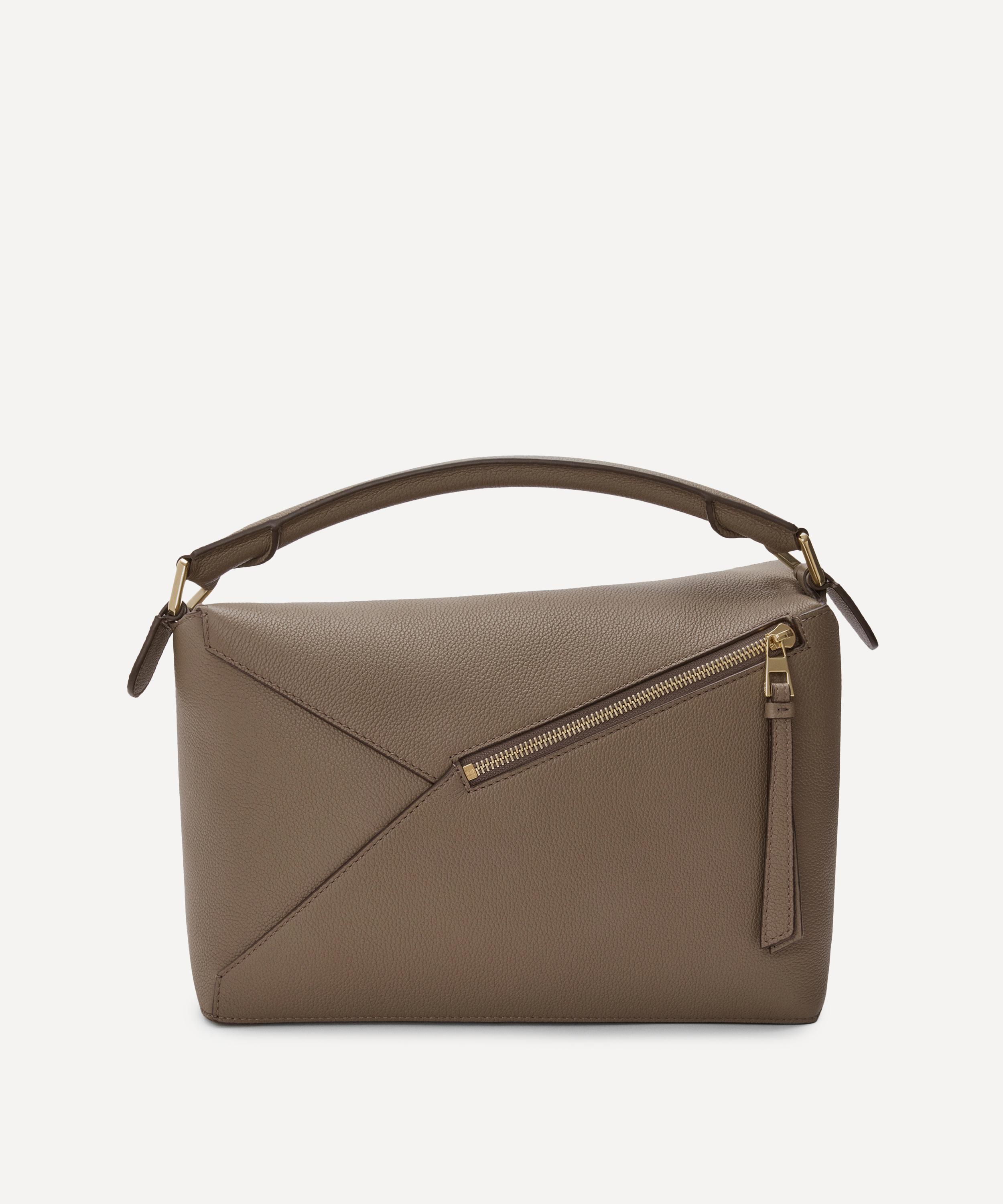 The iconic Puzzle top handle bag from Spanish fashion house Loewe showcases an innovative folding design that can be adapted for any outfit or occasion.