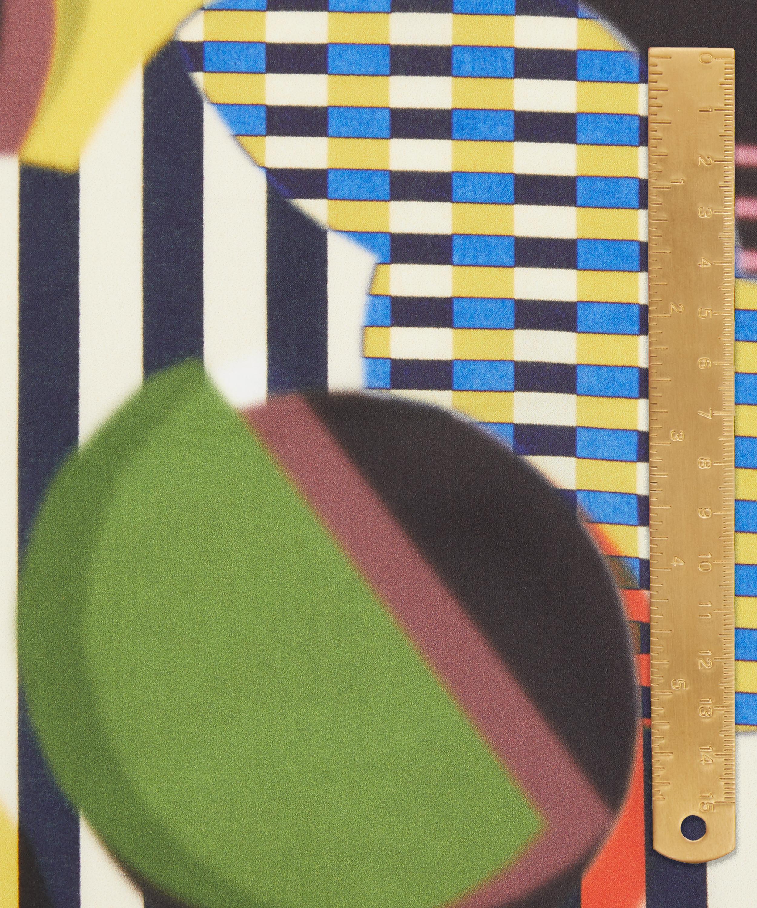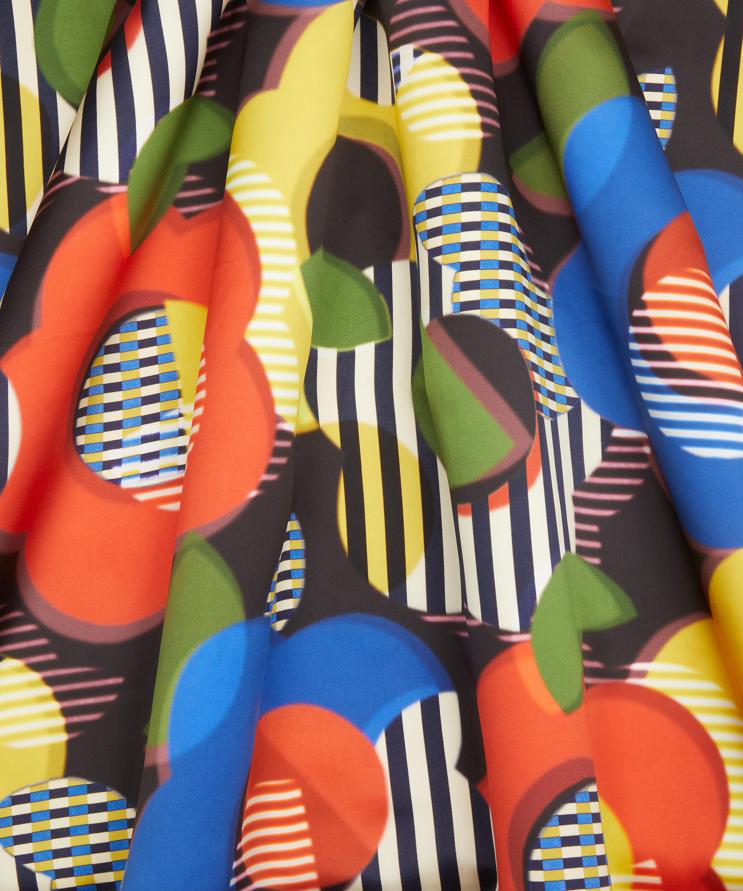 In 1983, Liberty showcased its avant-garde spirit by hosting an exhibition of the radical design group, Memphis Milano. Inspired by the group’s hallmarks of playful, sculptural forms and optical, clashing patterns, Memphis stands out as a visually arresting design brimming with dazzling vitality. Spherical daisies cast soft overlapping shadows, while graphic cutouts dance amidst contrasting stripes, captivating the eye with a riot of illusory geometries. This print is part of the anniversary collection’s final chapter, Collectibles. Offering a design for each decade, this timeline of hero prints encapsulates 150 years - exploring the design house’s varied and influential handwriting while honouring key moments of creativity and discovery.