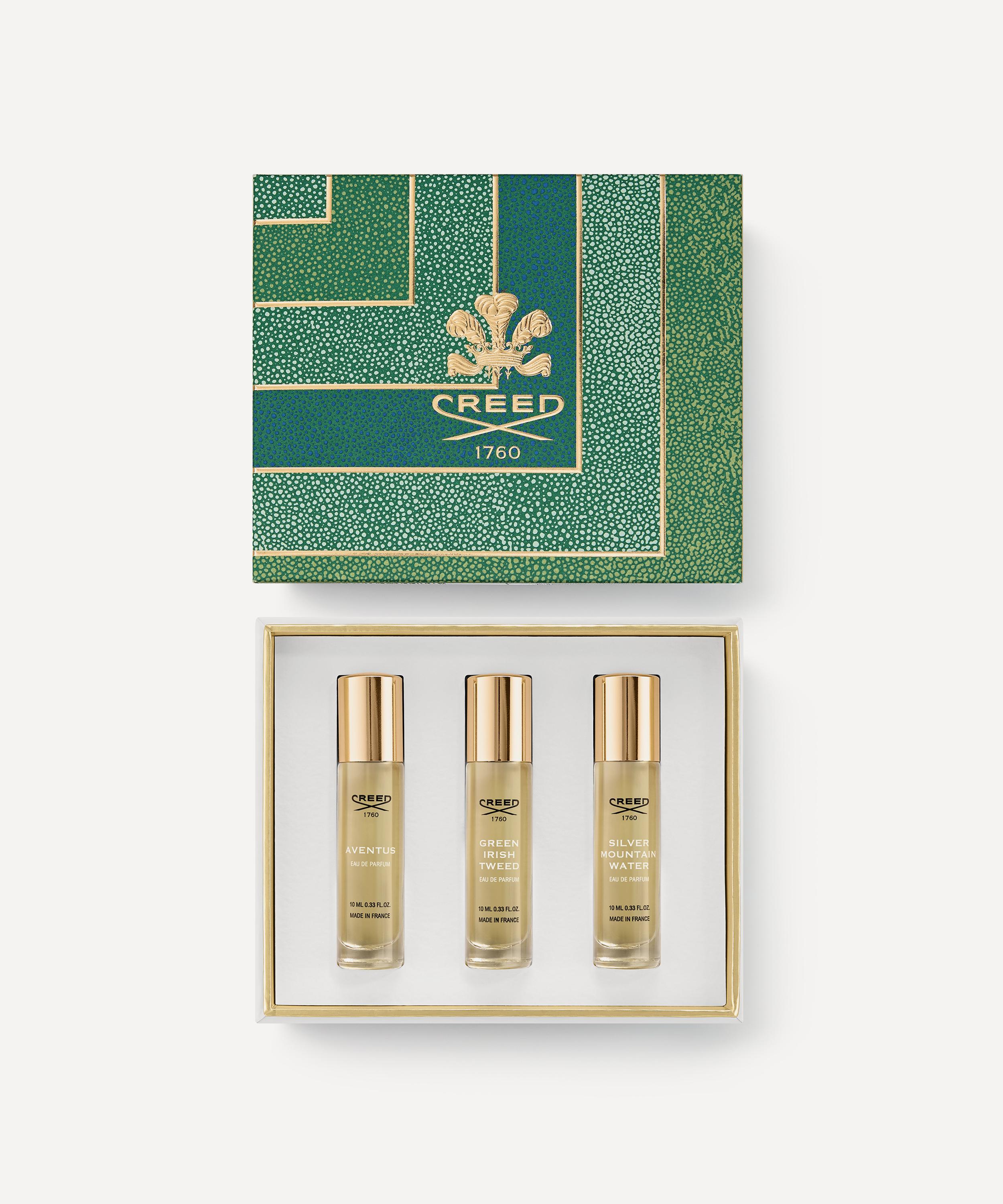 - Includes: Aventus Eau de Parfum 10ml, Green Irish Tweed Eau de Parfum 10ml and Silver Mountain Water Eau de Parfum 10ml