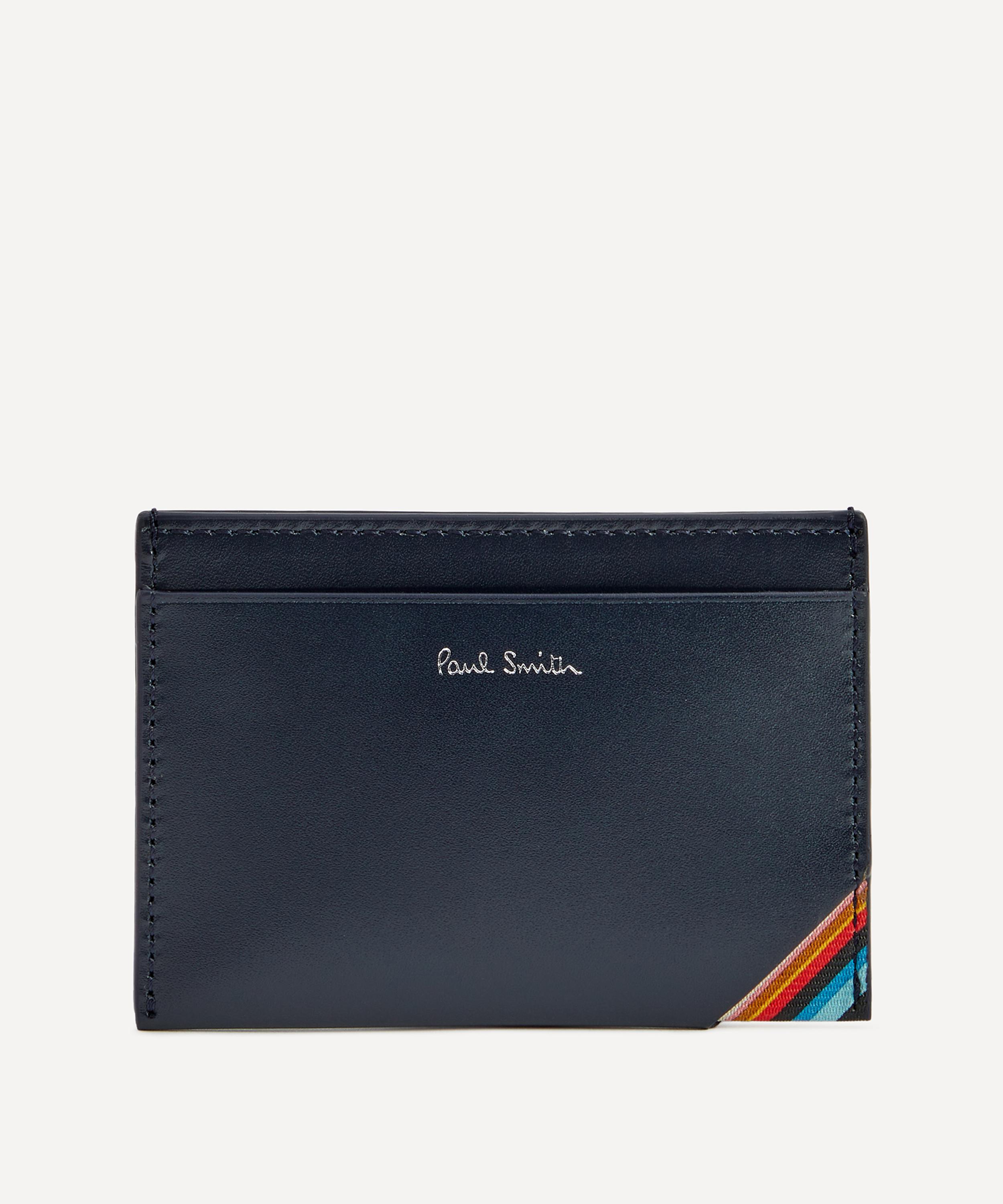 Stripe Leather Card Holder H: 6.7cm, W: 10cm - 100% Leather, Lining: 100% Polyamide