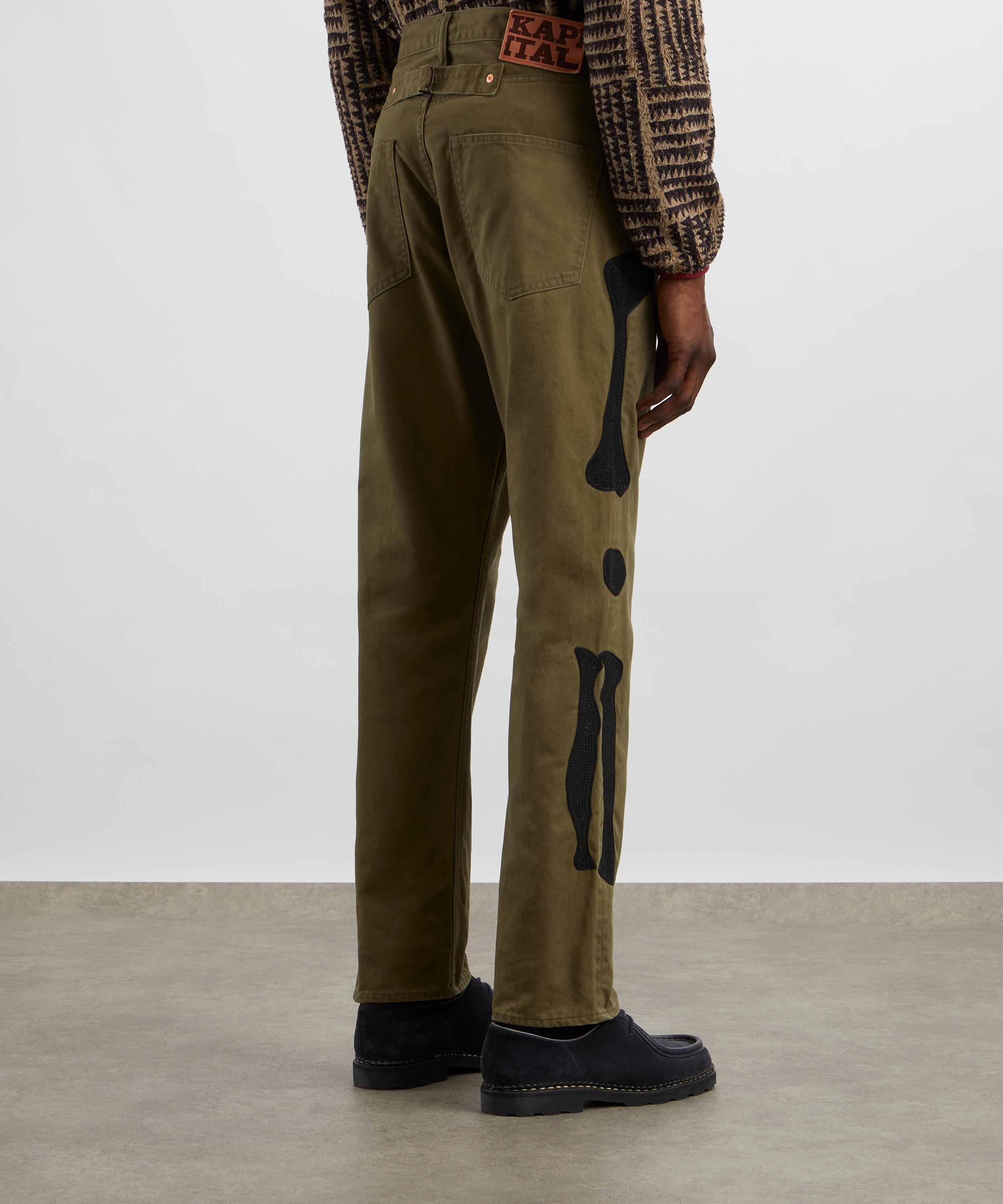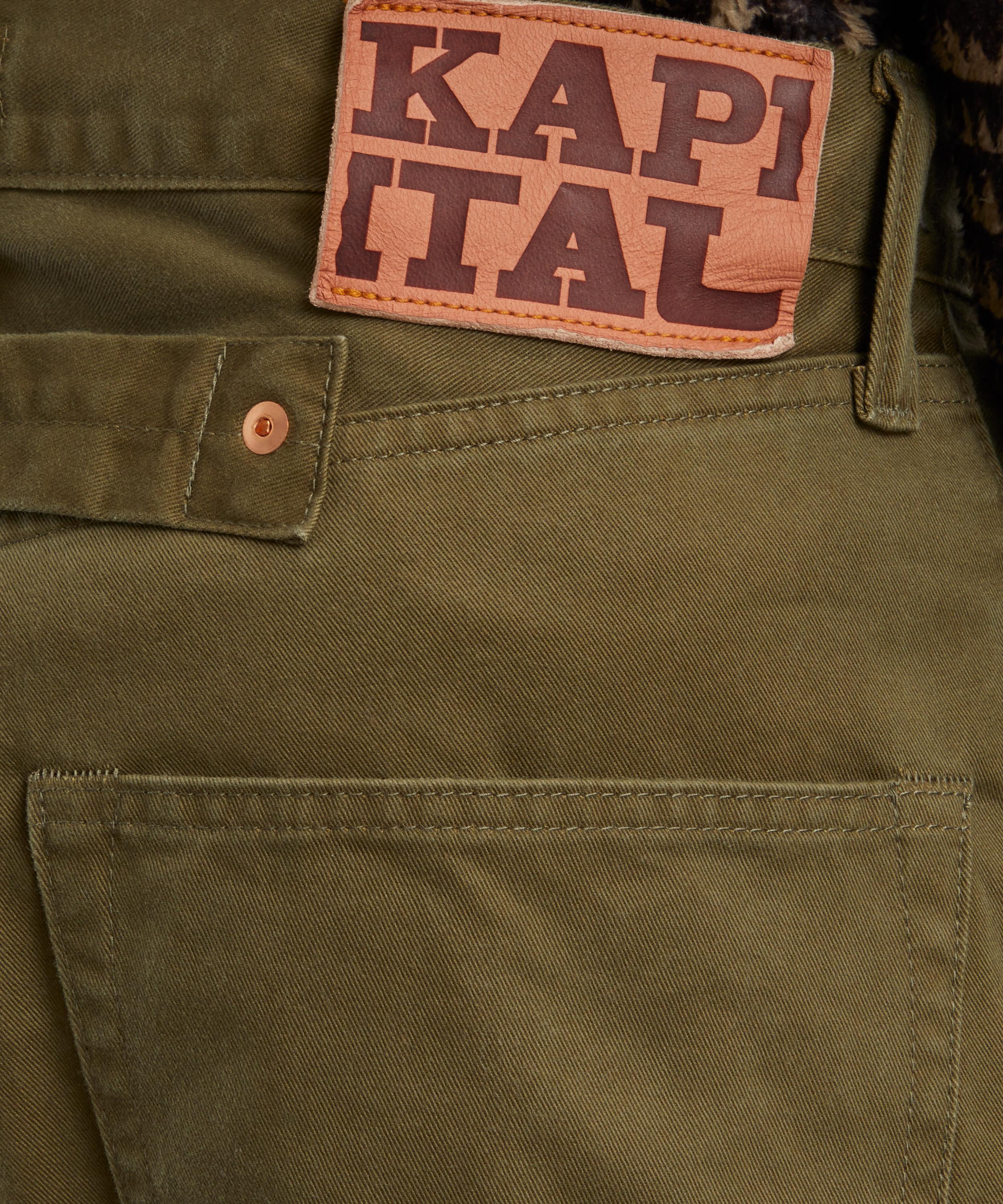 The MEXICAN TUXEDO 5P OKAGILLY Chino Trousers from cult Japanese label KAPITAL are designed with a modern, streetwear-inspired aesthetic.