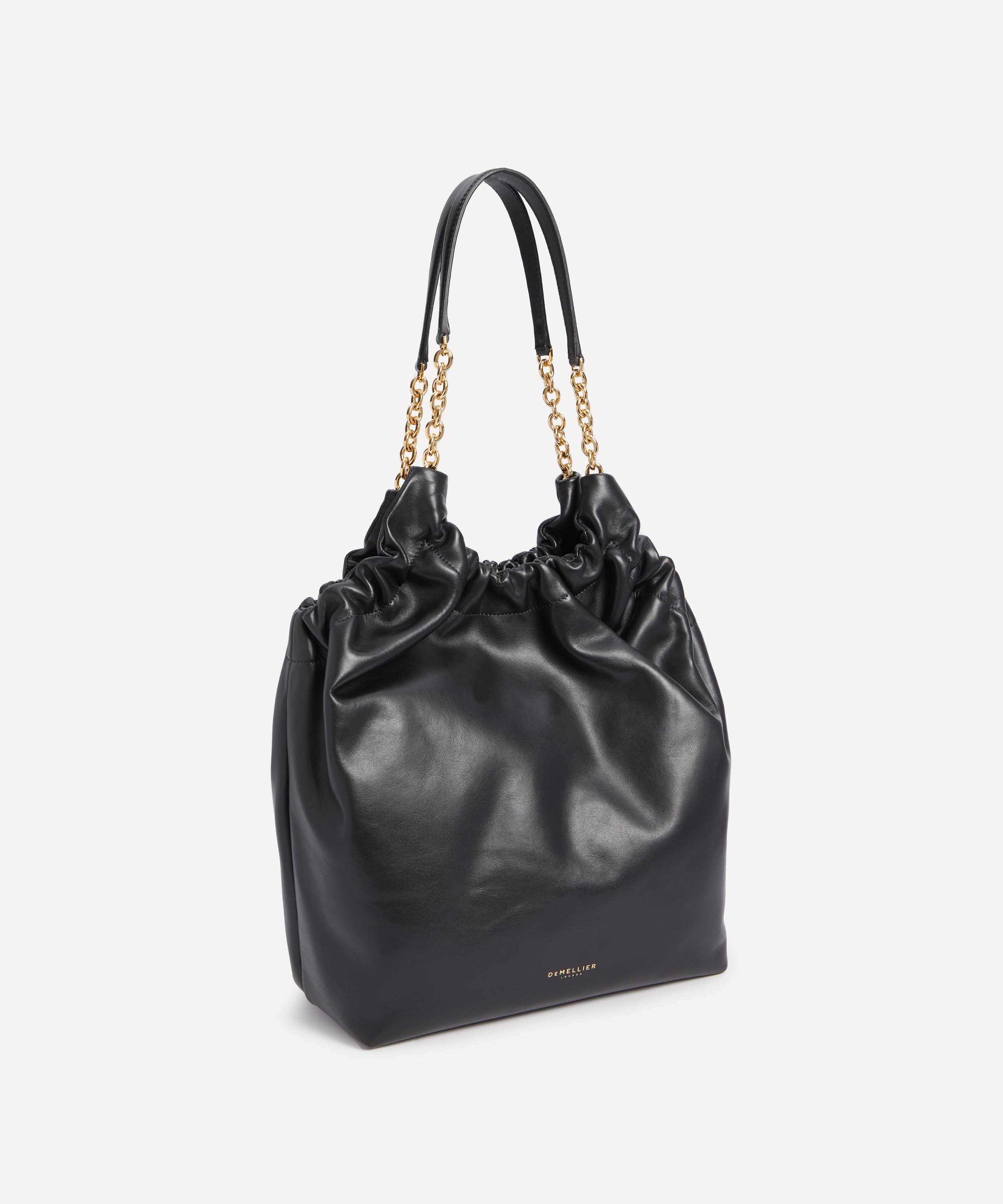 Showcasing a modern yet timeless slouchy silhouette with its ruched details across the top, its elegant gold-tone chain top-handles easily swing under your shoulder. The perfect size to carry all your essentials, its roomy interior includes an internal magnet closure as well as a zip pocket.