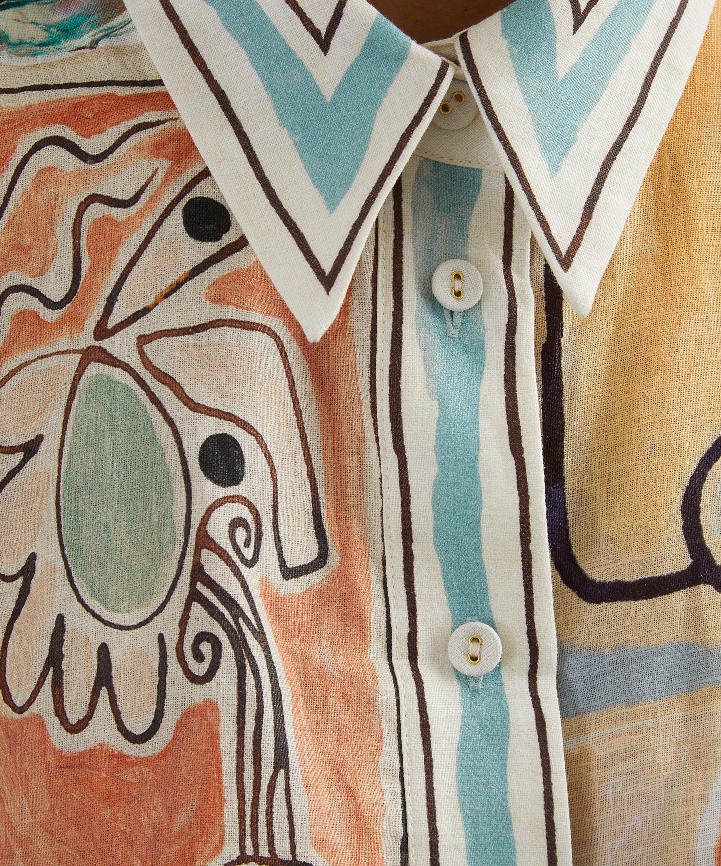 Created in collaboration with artist Laurence Leenaert, this linen shirtdress features a straight mini silhouette with a Point collar, cropped sleeves, and a button fastening, finished with a checkered self-tie belt to cinch the waist.