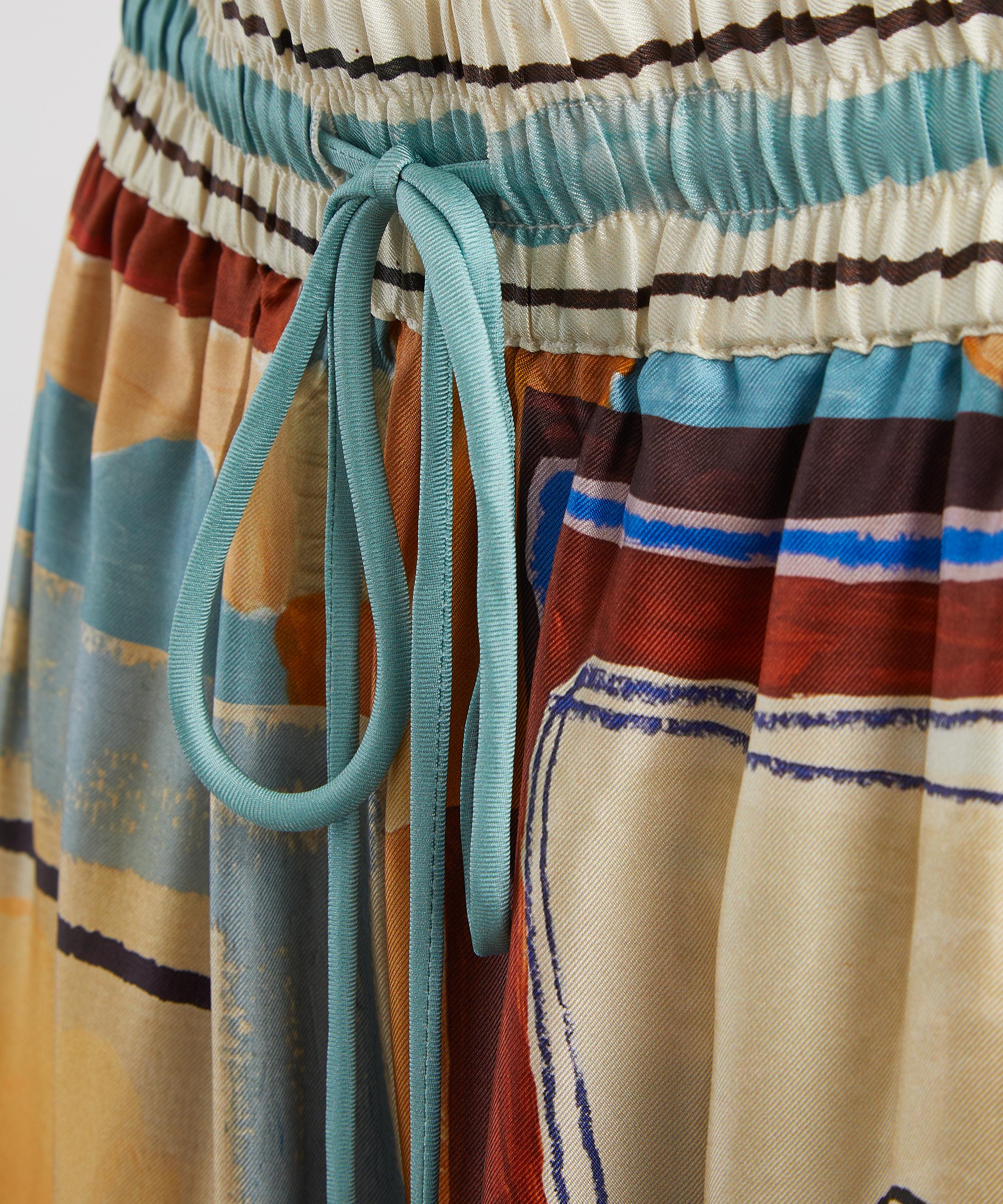 Created in collaboration with artist Laurence Leenaert, these silk twill trousers feature a relaxed, jogger-inspired silhouette with an elasticated drawstring waist for an adjustable fit.