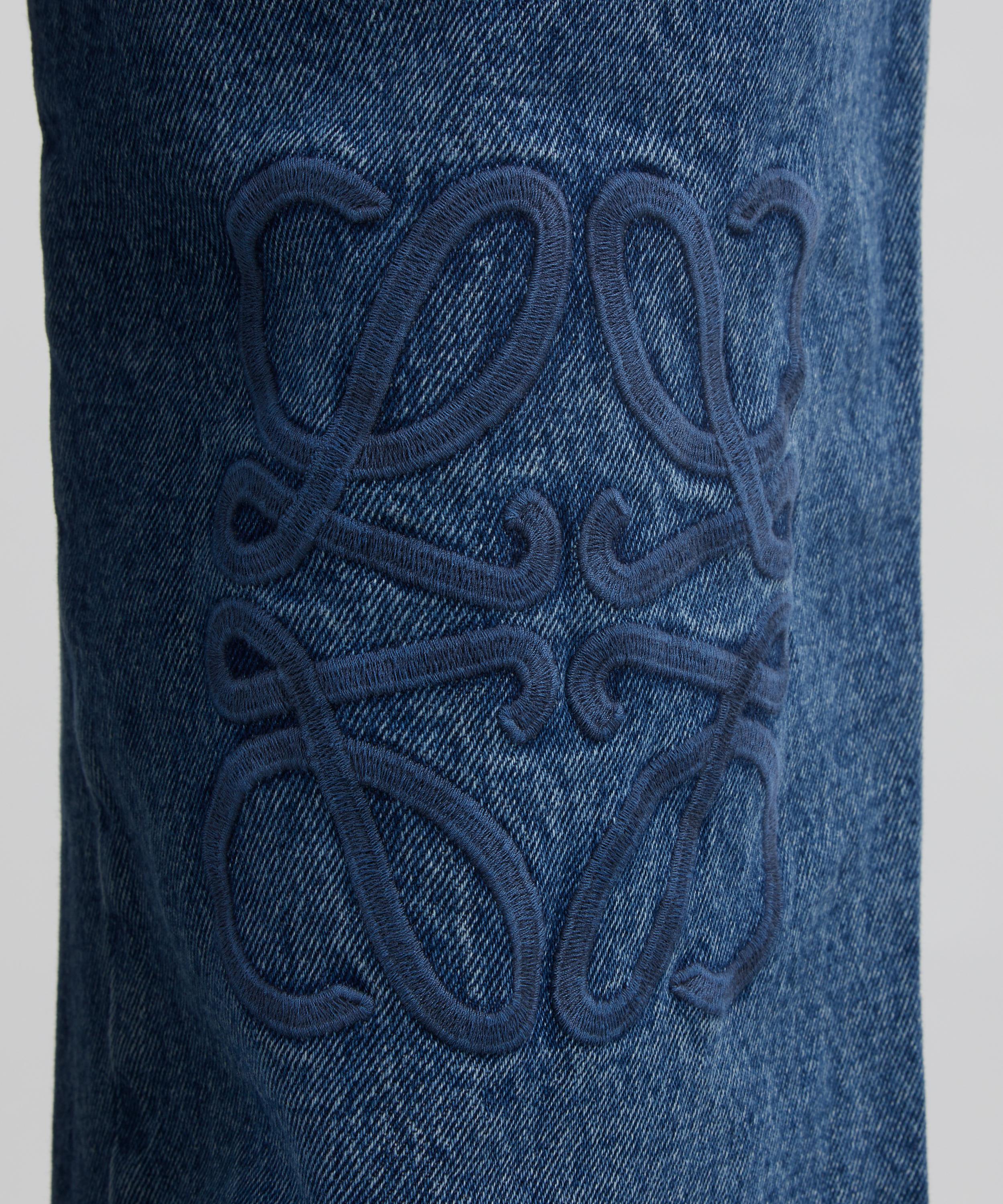 Mid-Blue Anagram-Embroidered Baggy Jeans