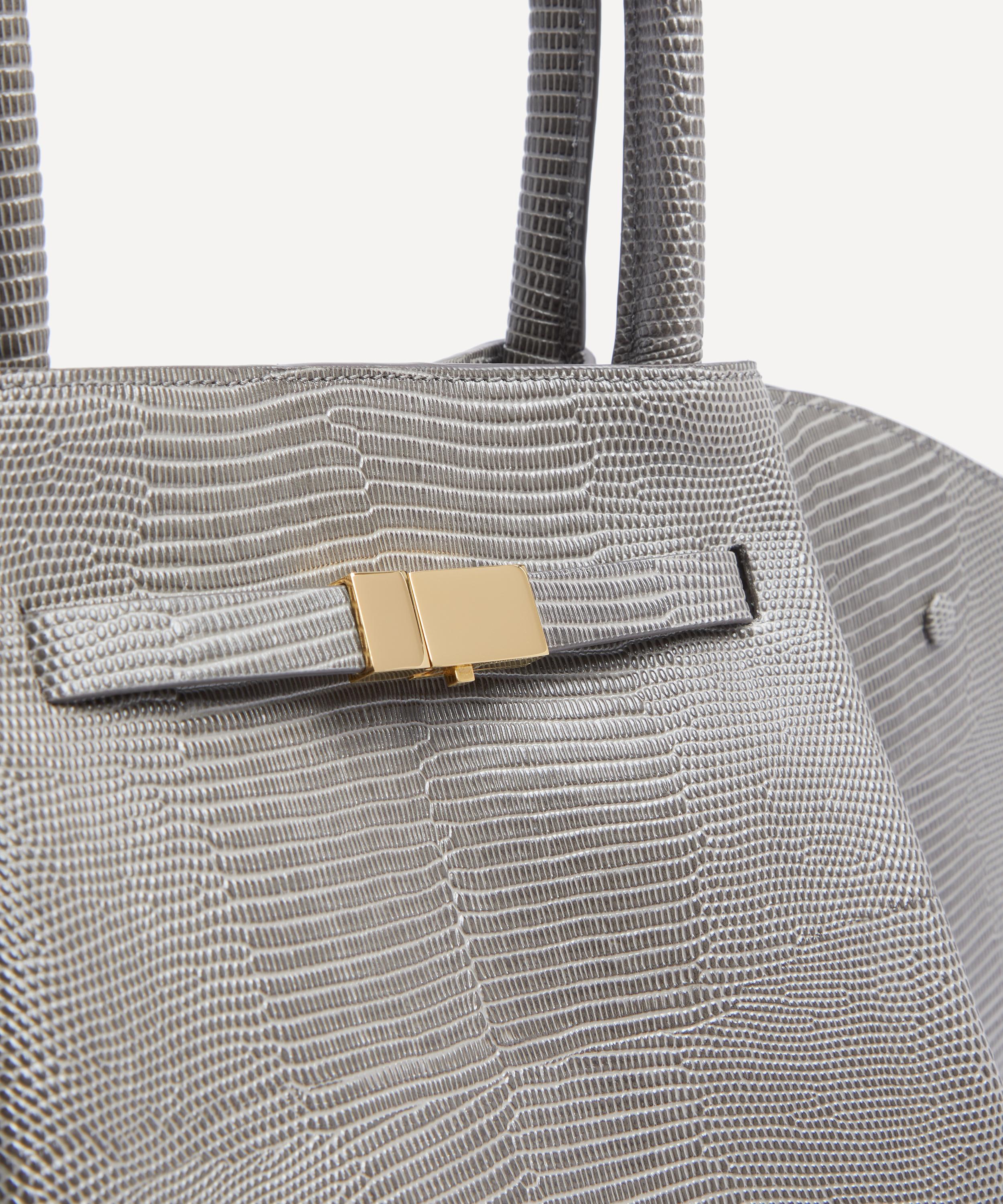 Created in collaboration with Alison Toby, this variation is reimagined with an exclusive Cocoa Croc-Effect and an elongated silhouette. Handcrafted by skilful artisans, it is inspired by the energy, architecture and people of the city it’s named after. Finished with a gold belted front detail and a practical zip closure, its double tubular top-handles easily swing under your shoulder.