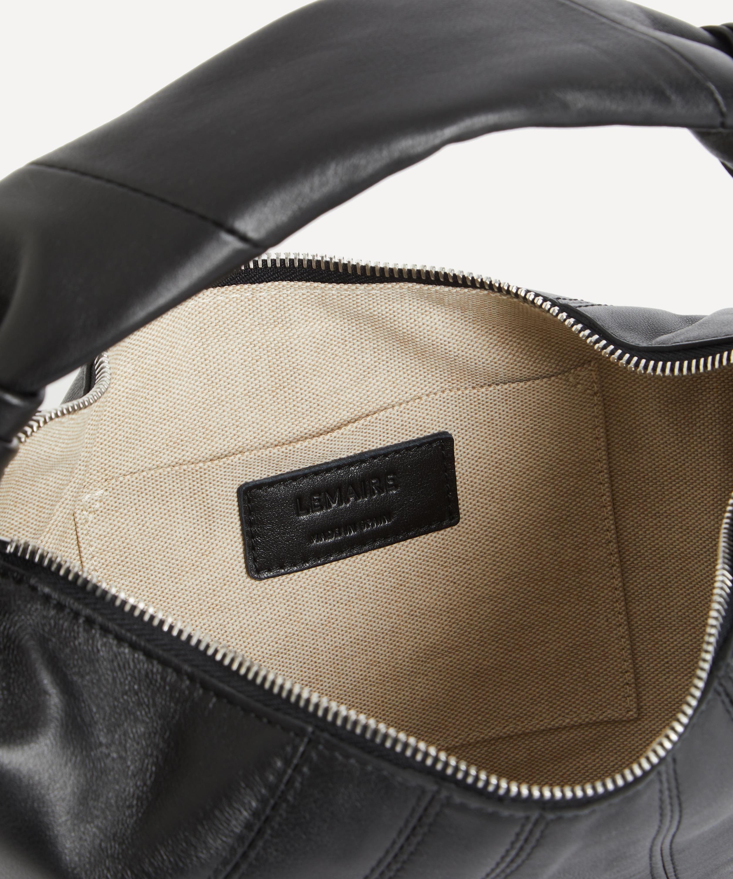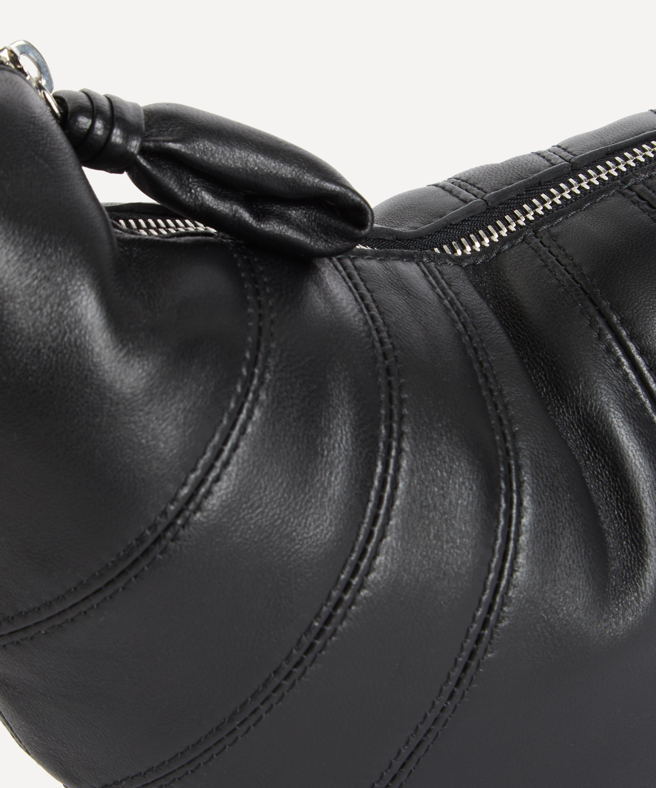 Cut from soft nappa lambskin leather, this elegant bag epitomises the brand's penchant for the avant-garde with a distinctive, croissant-inspired silhouette made up of a series of topstitched panels. A top zip fastening with a padded leather zip pull opens to reveal a compact main pouch for stashing small essentials, while the knotted shoulder strap adds a chic, contemporary finish.