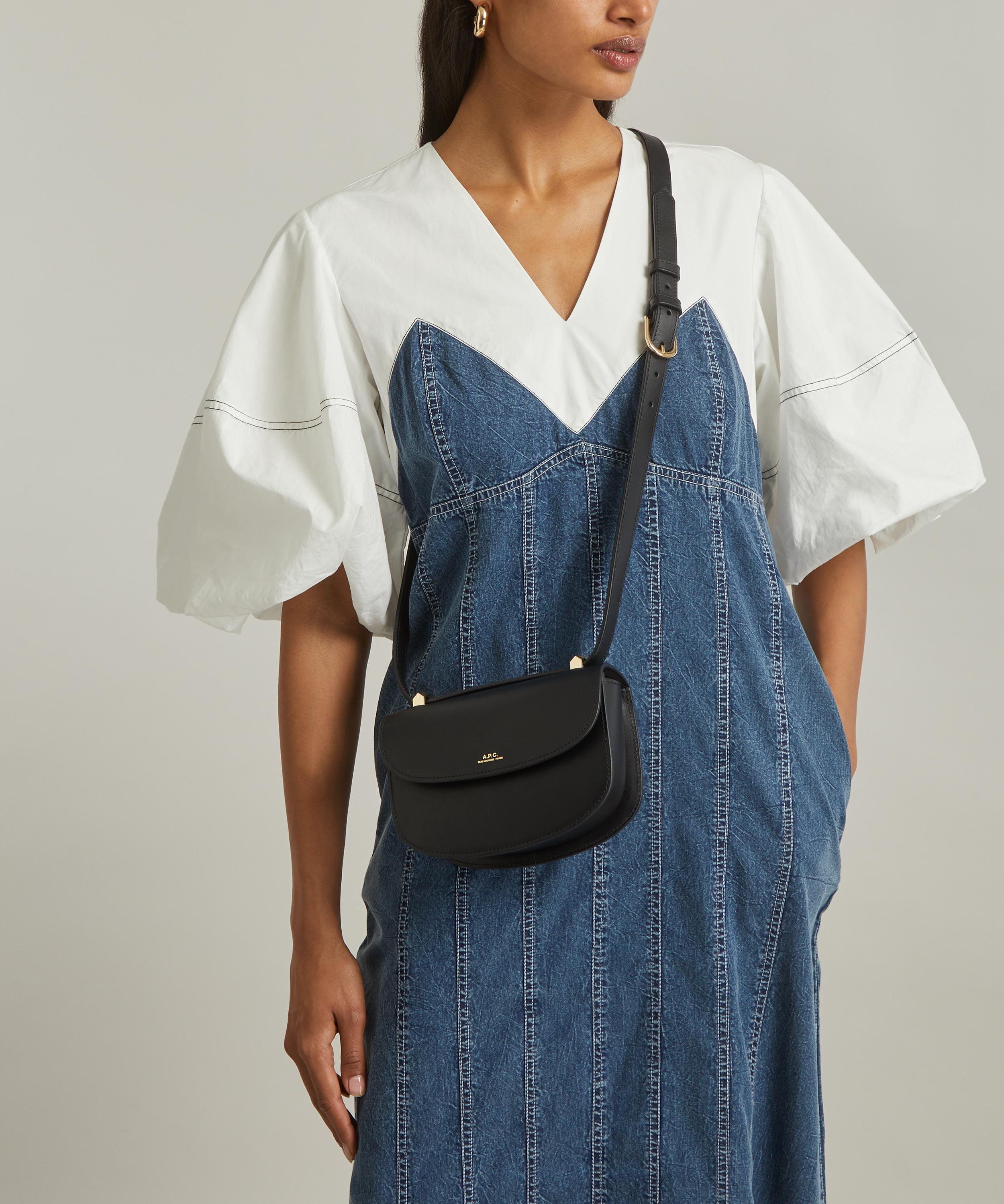 Renowned French basics label A.P.C. brings us the mini Genève bag - a sleek and compact leather cross-body bag embossed with delicate lettering.
