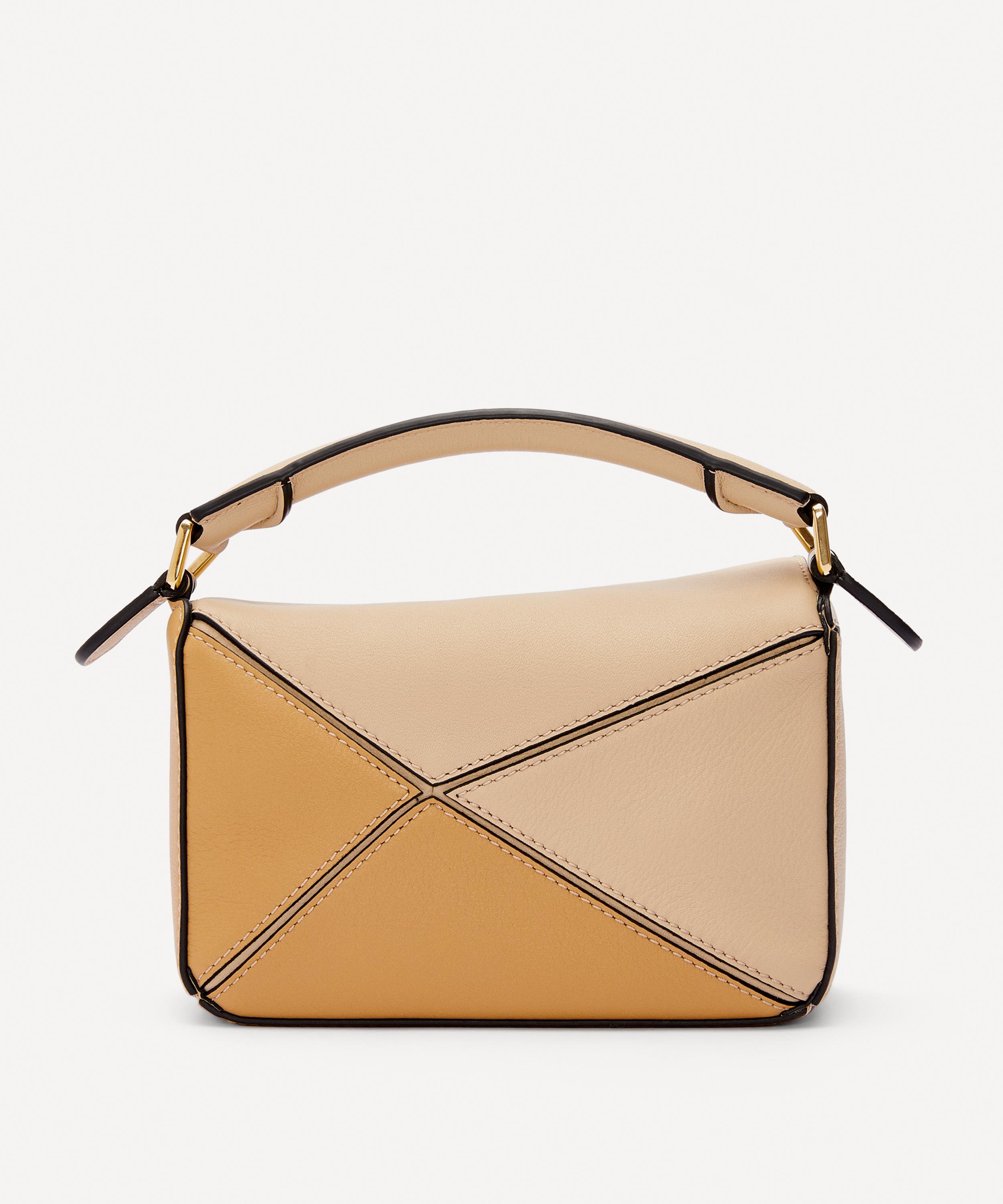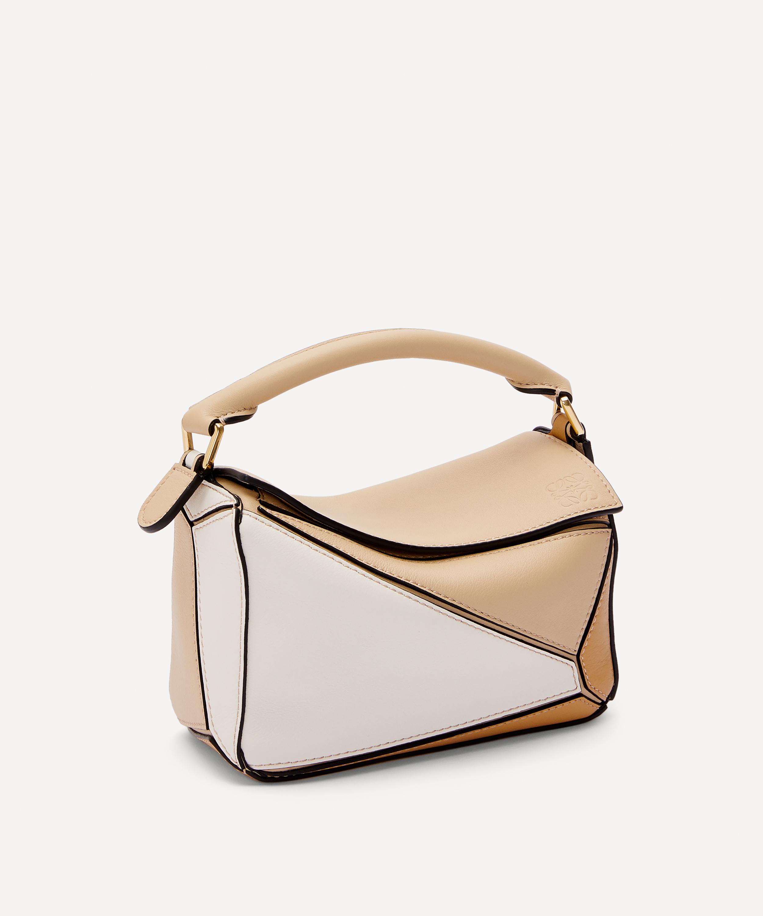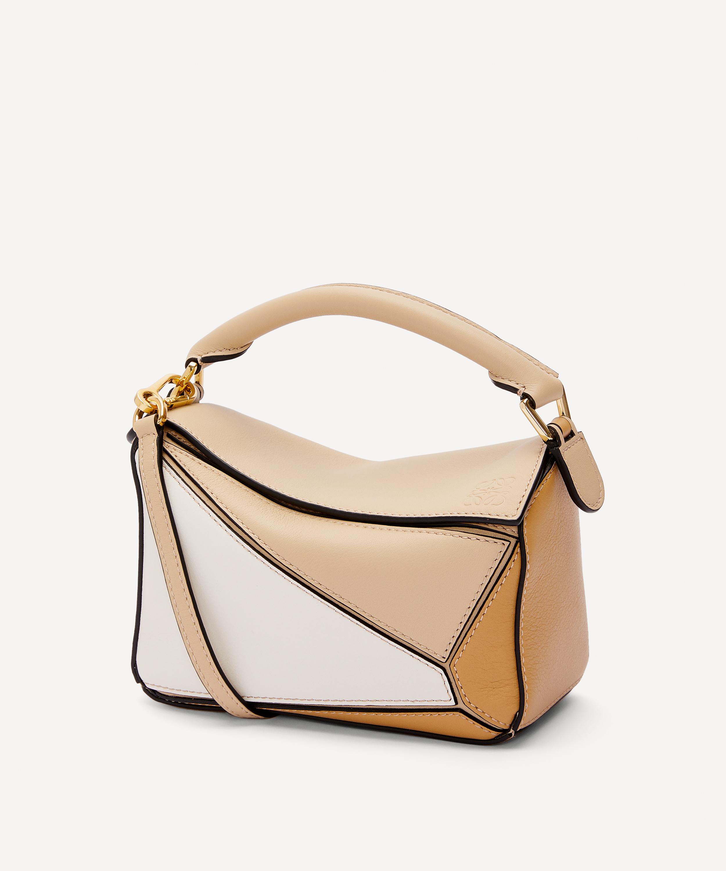 Designed by Jonathan Anderson, the iconic Puzzle shoulder bag from Spanish fashion house Loewe showcases an innovative folding design that can be adapted for any outfit or occasion.