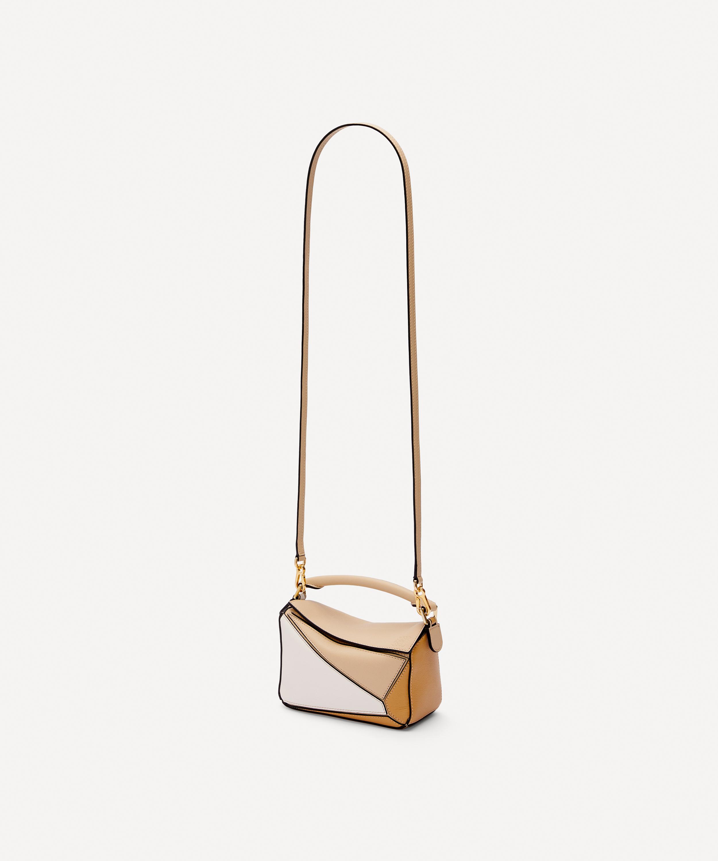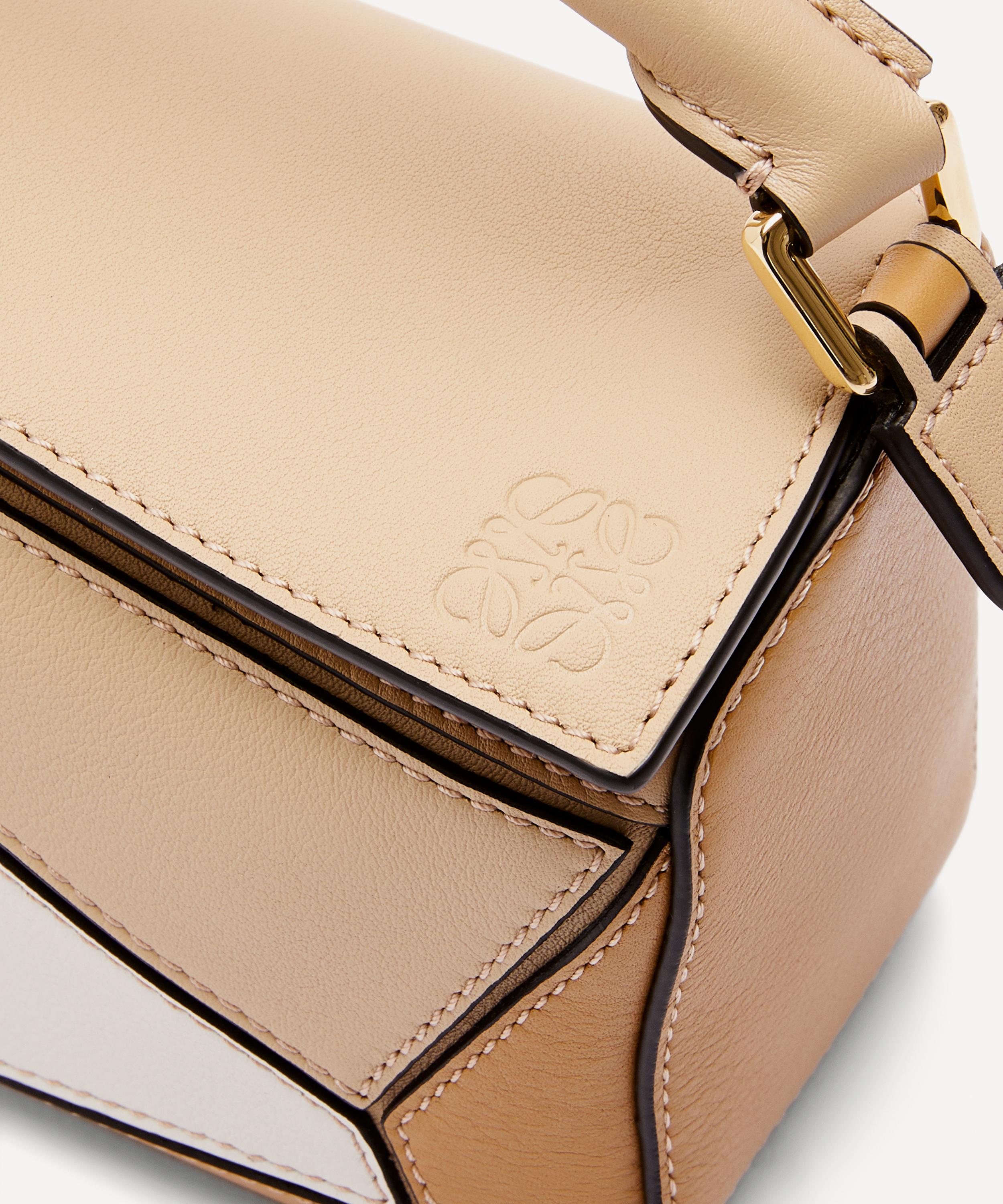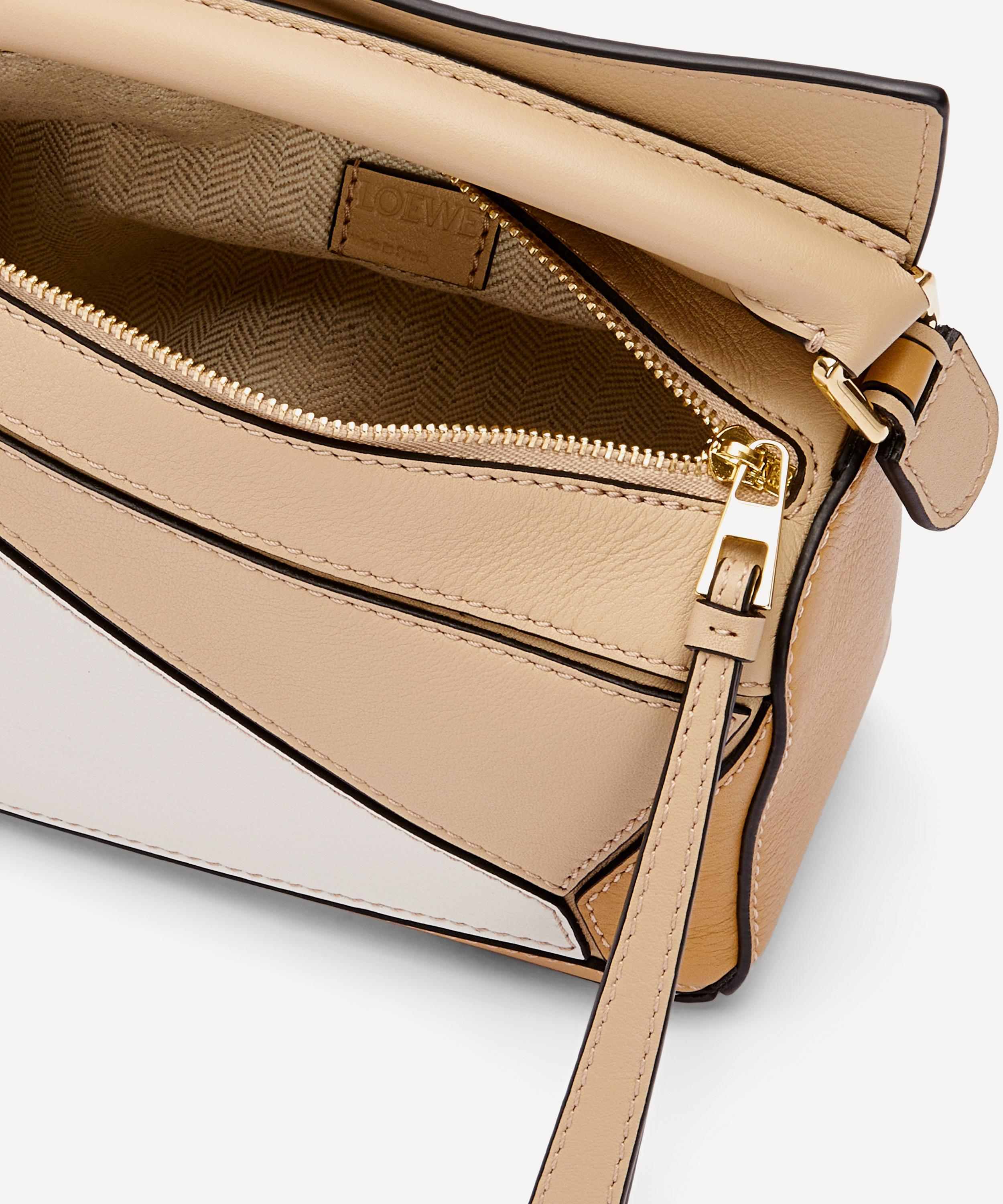 Designed by Jonathan Anderson, the iconic Puzzle shoulder bag from Spanish fashion house Loewe showcases an innovative folding design that can be adapted for any outfit or occasion.
