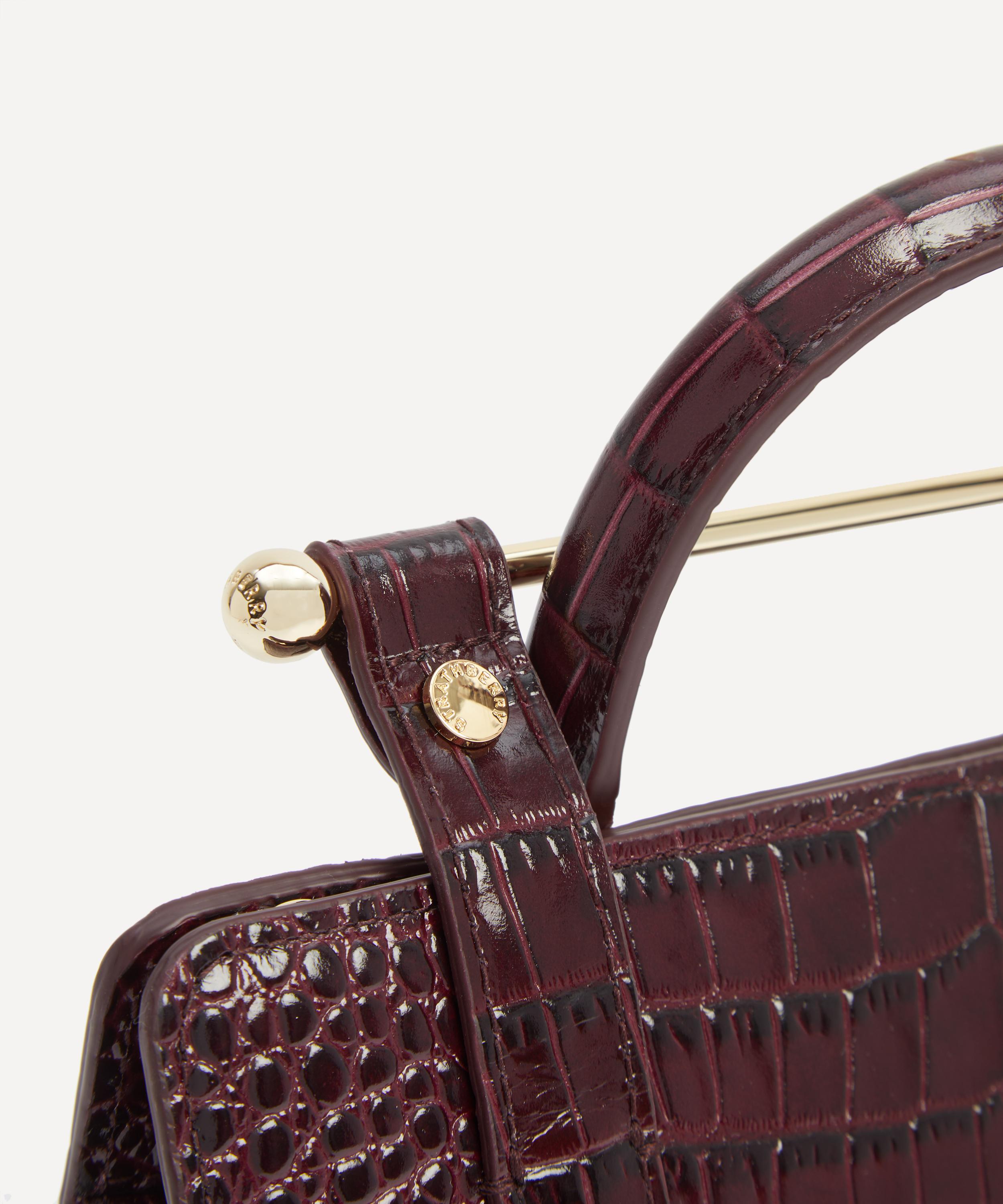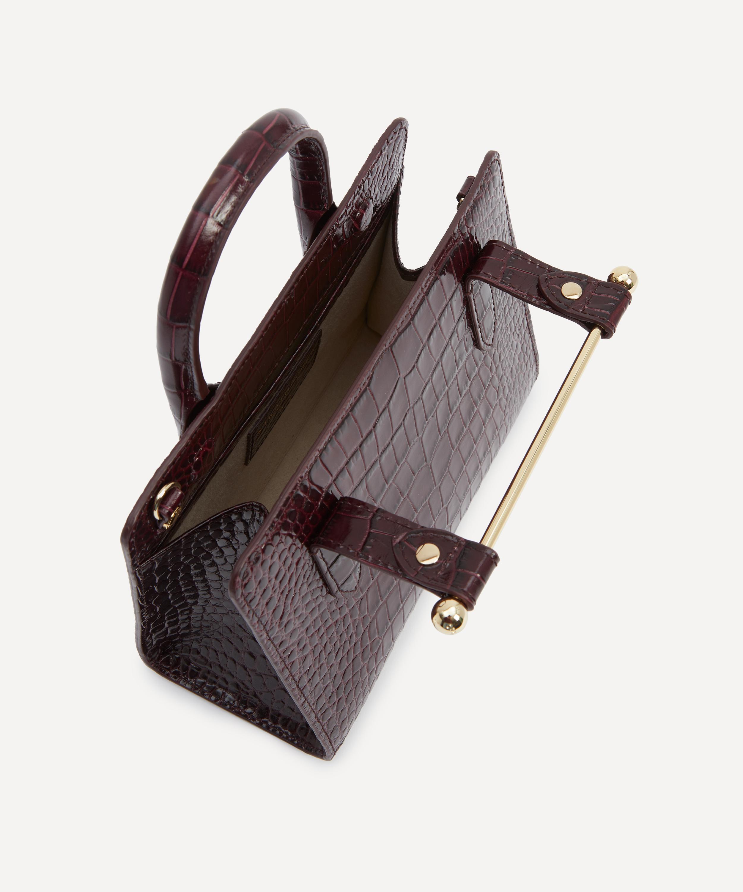 Handmade in Spain from croc-embossed calfskin leather and a soft microfibre lining, it features an elegant, structured silhouette equipped with a spacious main compartment and an interior pocket, secured by a signature bar closure. Guaranteed to add an air of sophistication to any outfit, this timeless bag is complete with one top handle and a detachable chain – style it crossbody, sling it over your shoulder, or carry it by hand.About Strathberry