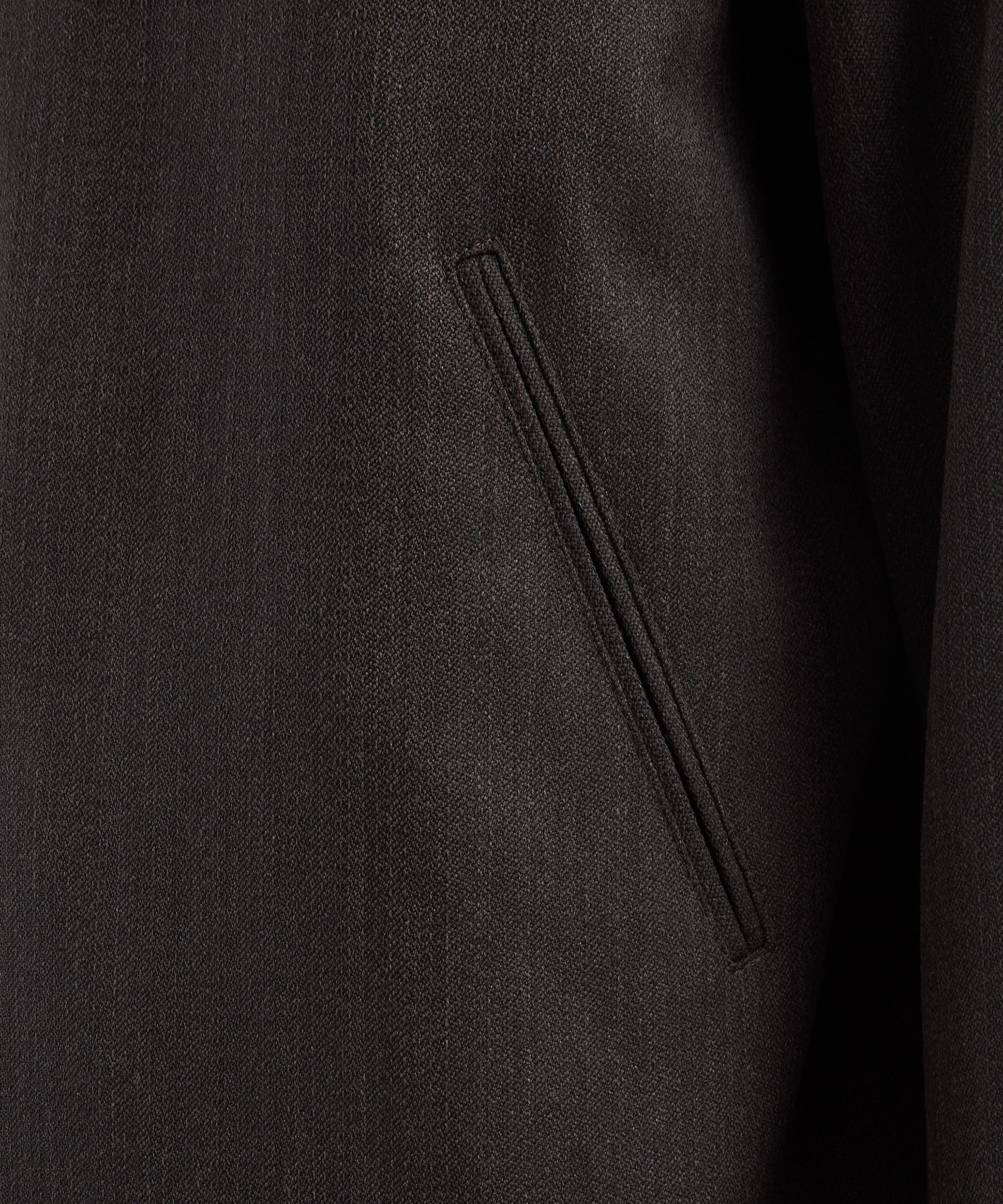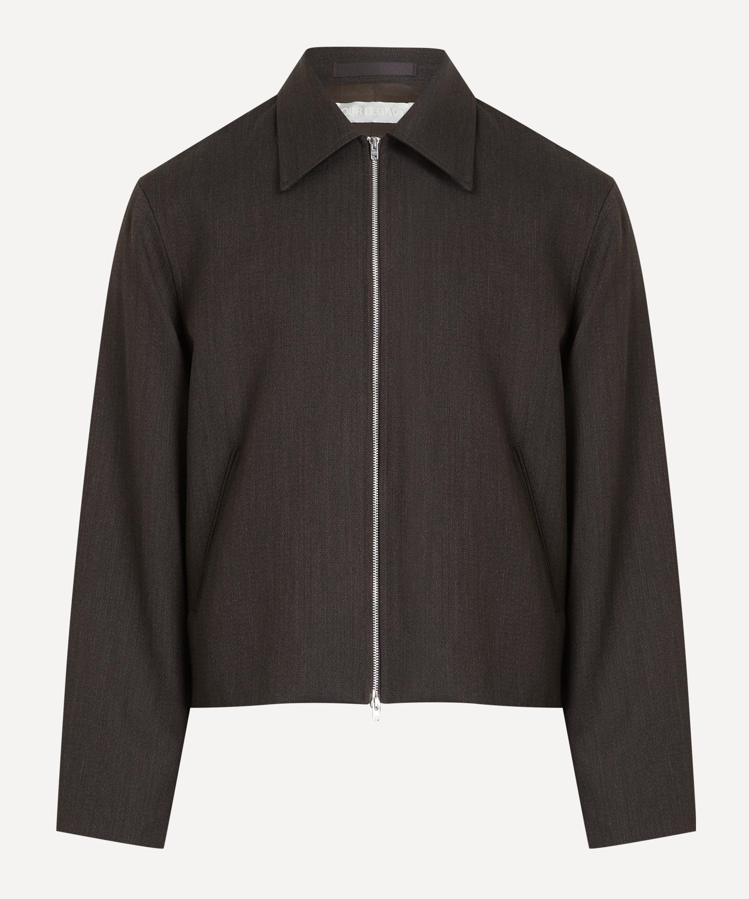 Tailored from Italian suiting fabric woven from virgin wool, the Mini Jacket showcases a minimalist, boxy silhouette with a point collar, two-way zip fastening, and sleek jet front pockets for an effortlessly refined finish.