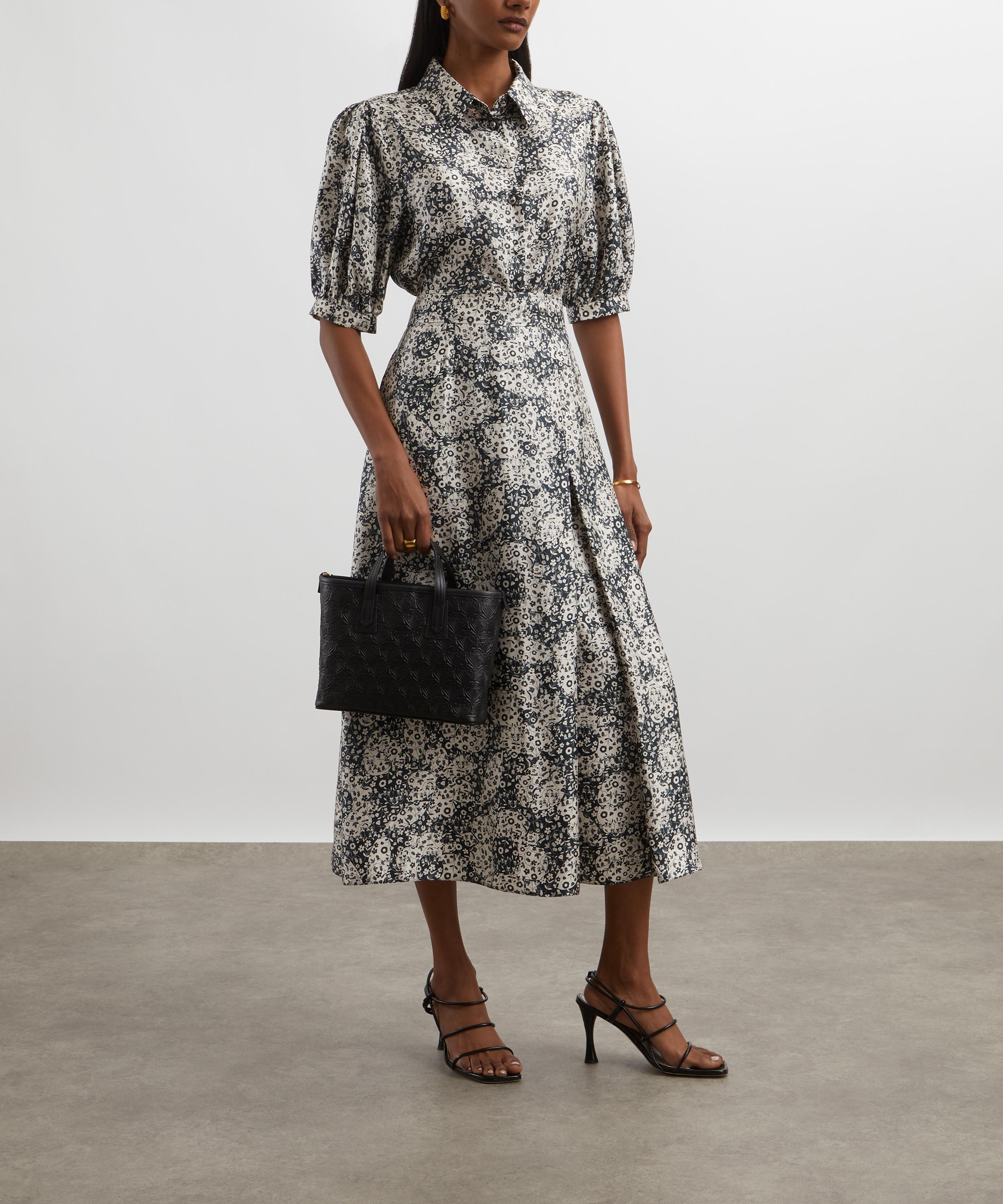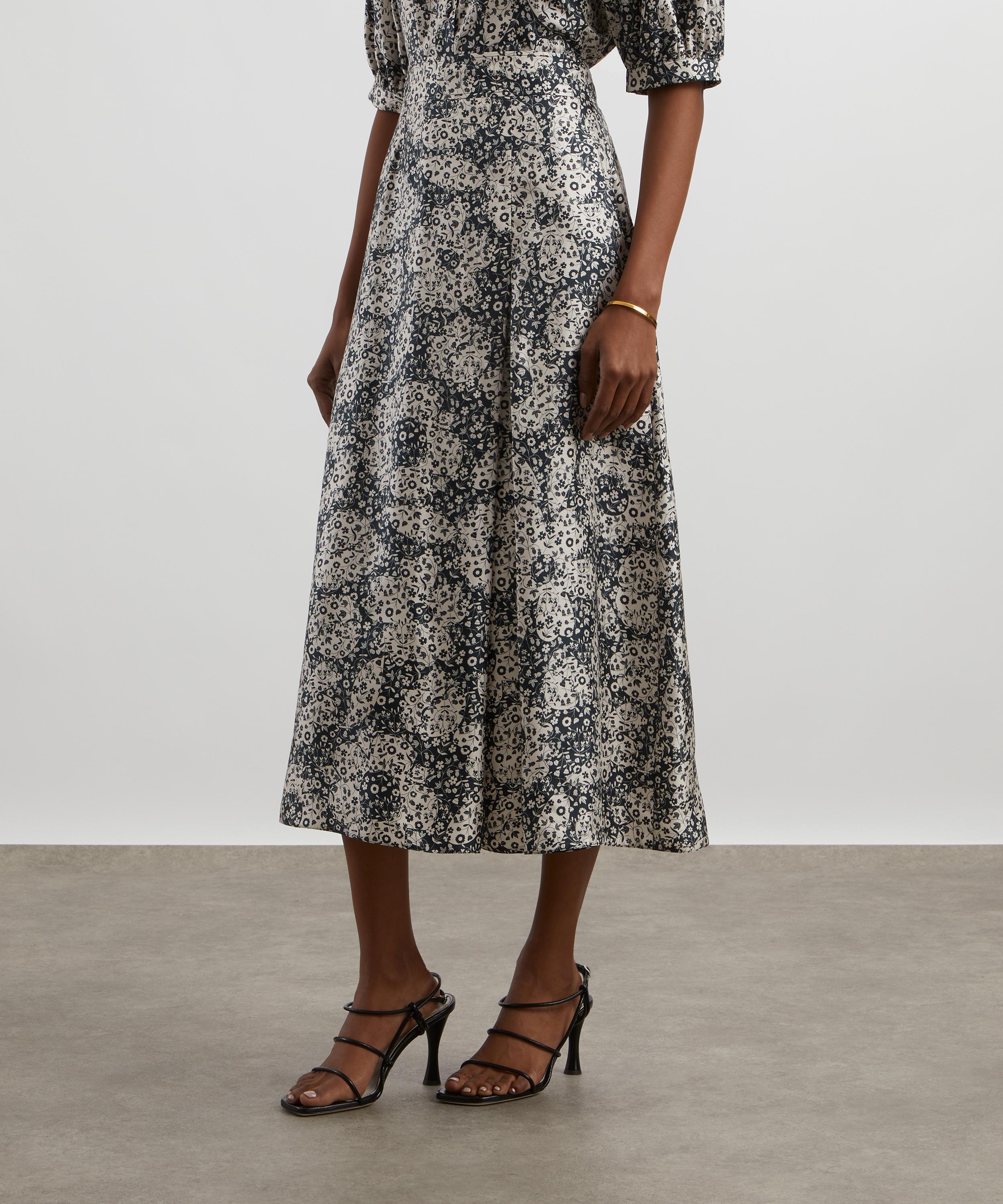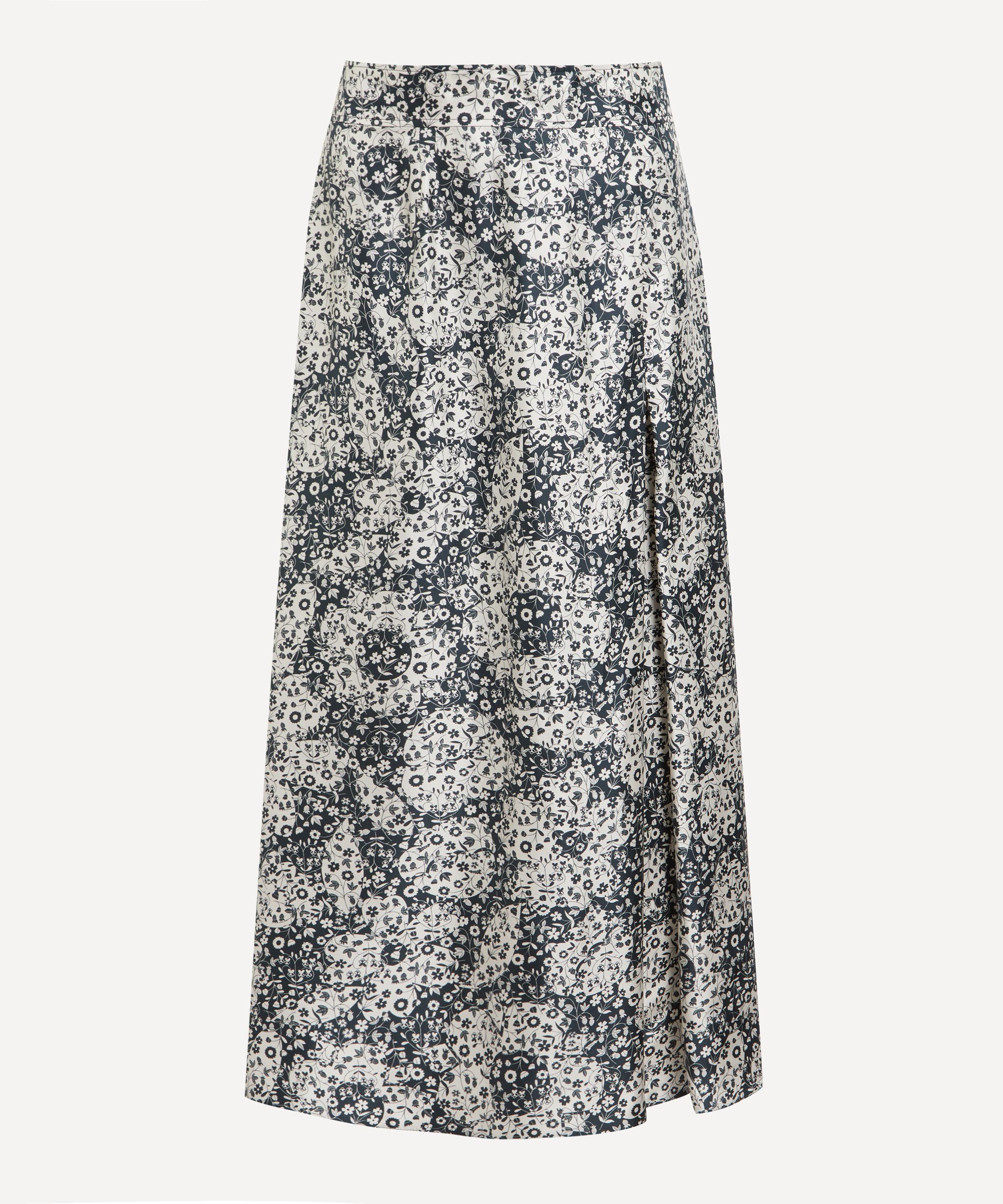 Cut from Liberty Fabric Silk Twill, this A-line skirt is tailored to fit and flatter all body shapes with its clean, contemporary design and faux wrap detail at the front. Elegant and easy to wear, its sleek fabrication lends this skirt a beautiful drape that enhances the garment’s sweeping midi length. Adorned with our retro-inspired Mirabelle Mono print, it’s made to be matched with a coordinating Liberty shirt.