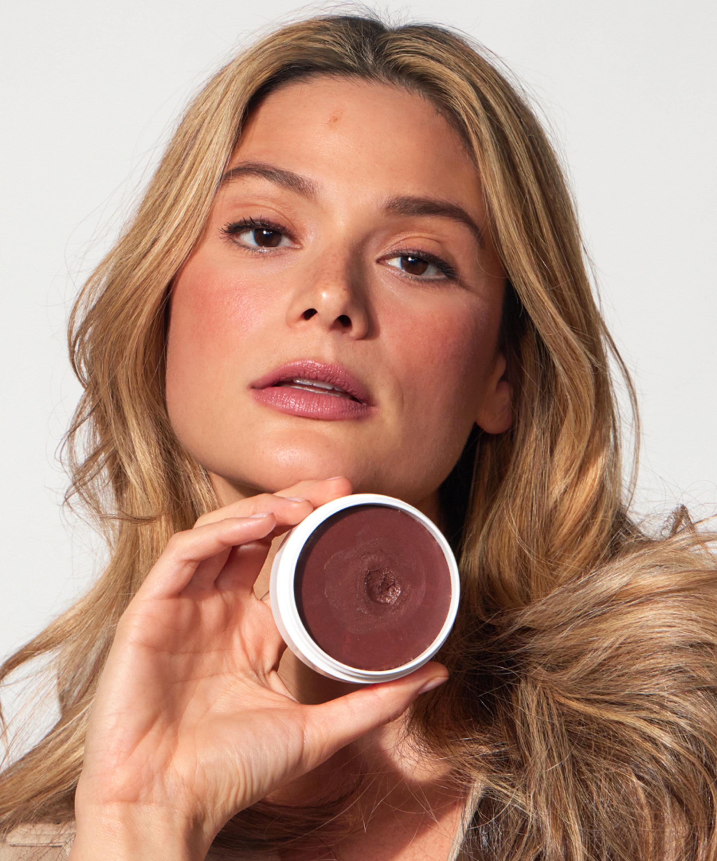 Break the top surface of the balm with your index finger first, and then warm it up to soften the formula. Apply balm using your fingertips, palms, a brush, or a sponge onto cheeks, lips, eyelids, or anywhere you want to tint or glow.
