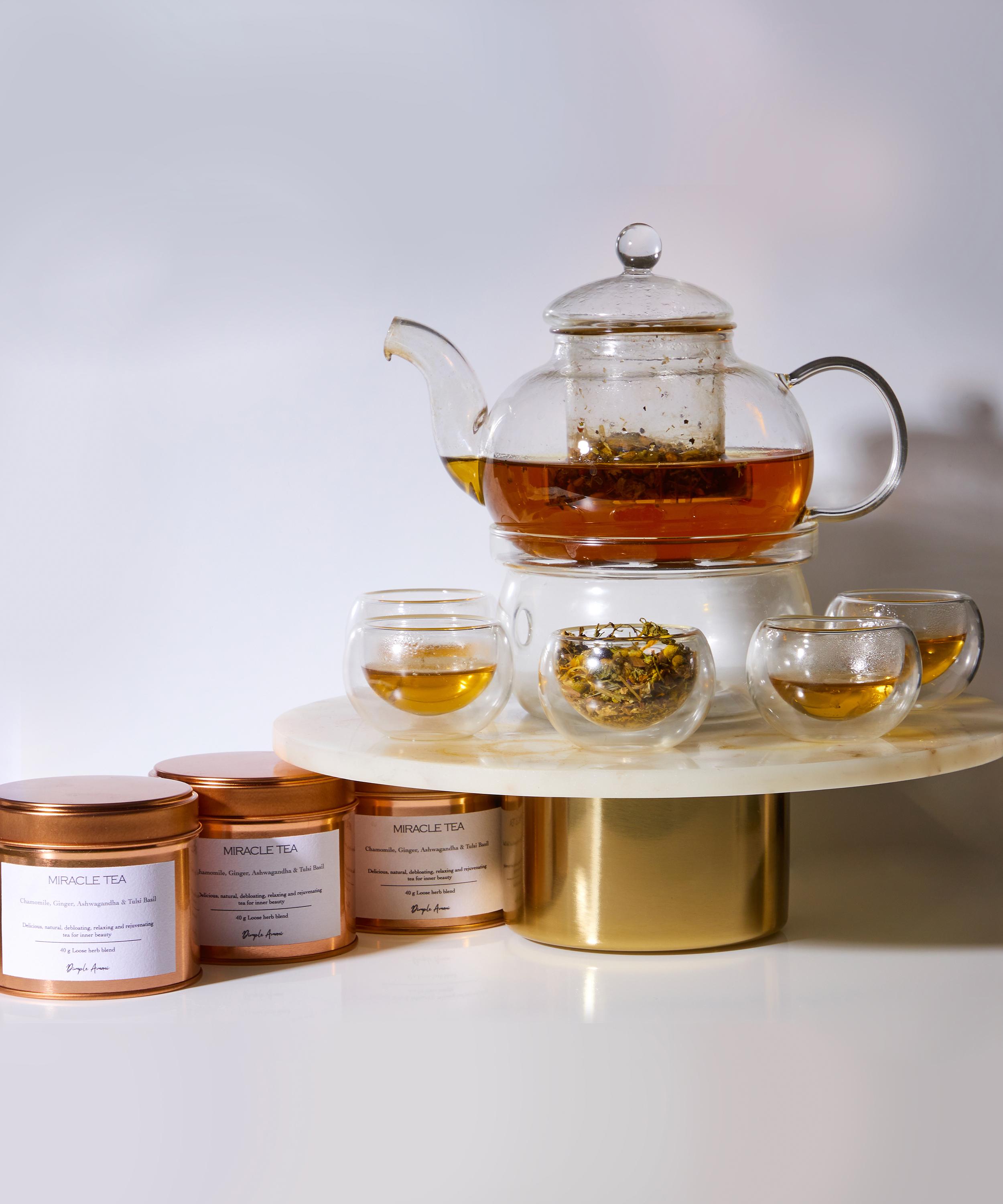 Enjoy a delicious brew and discover the power of Dimple Amani's Miracle Tea, crafted to provide a multitude of health benefits.