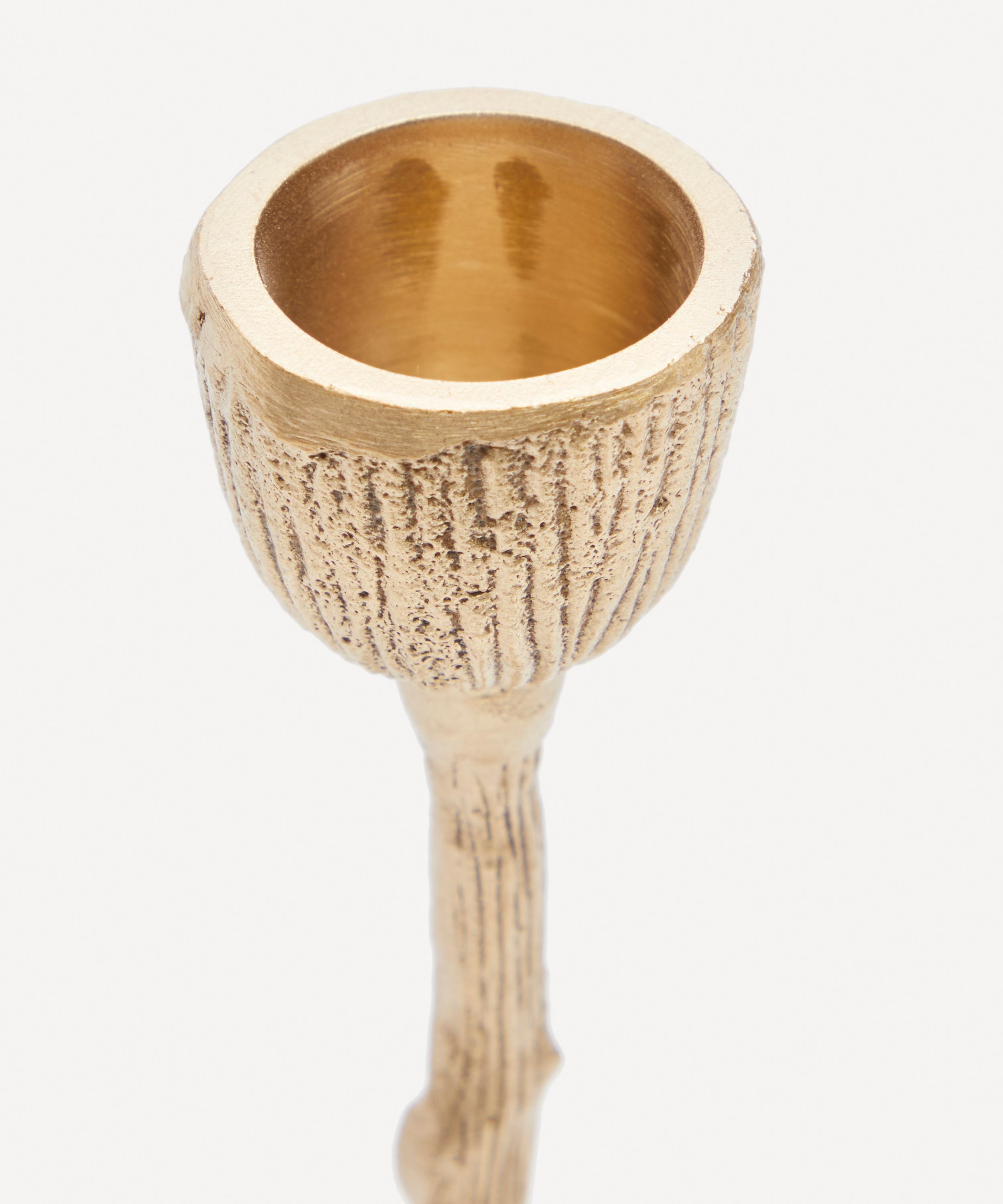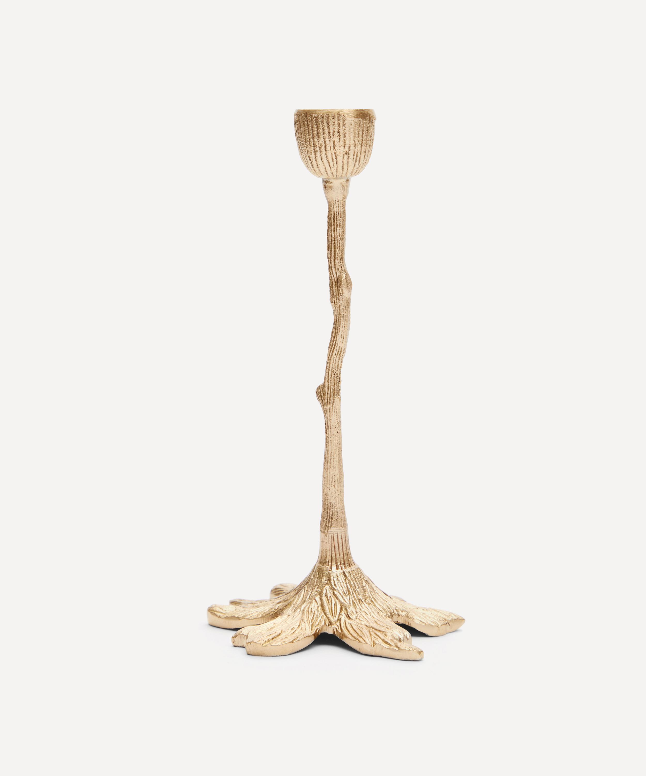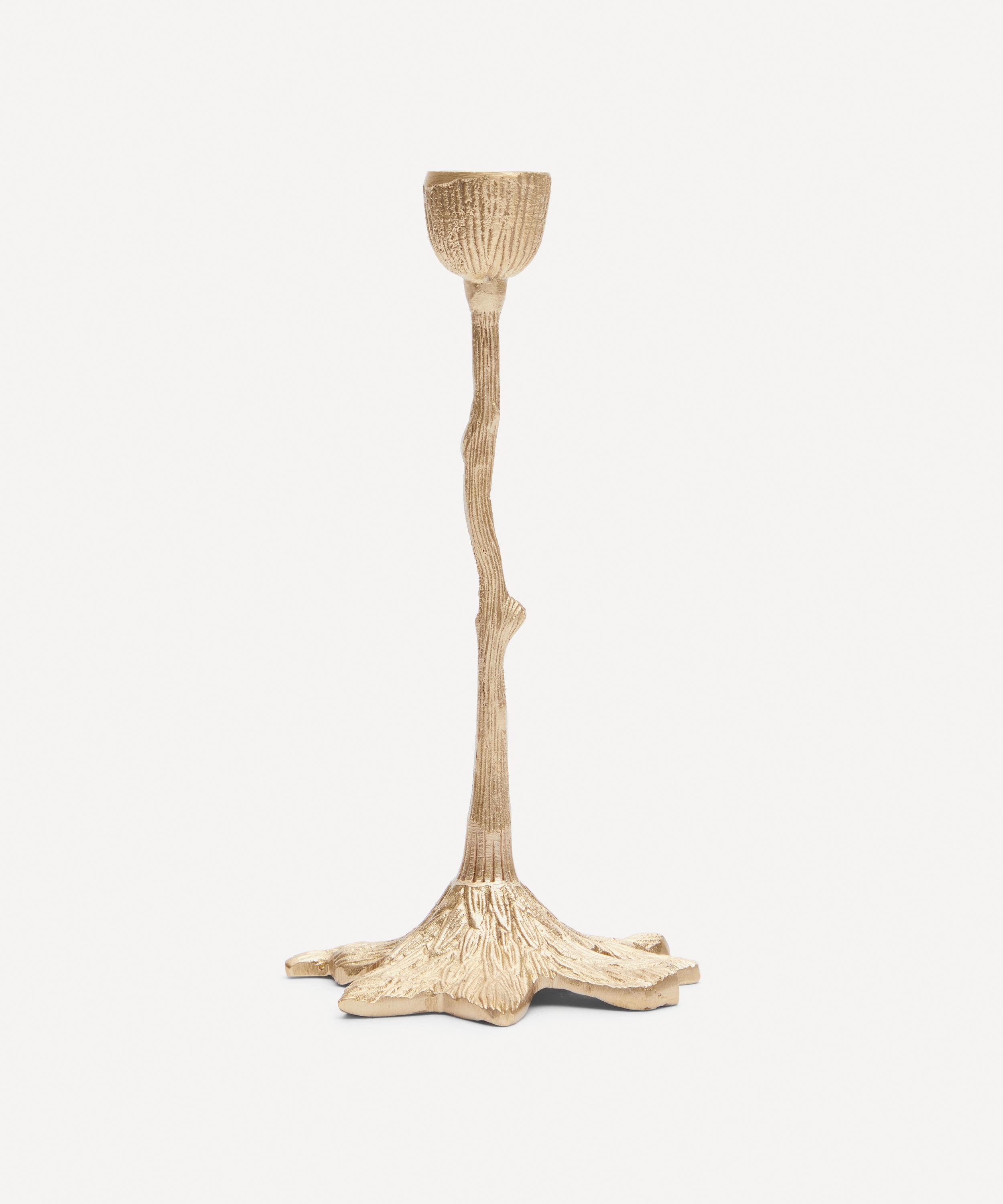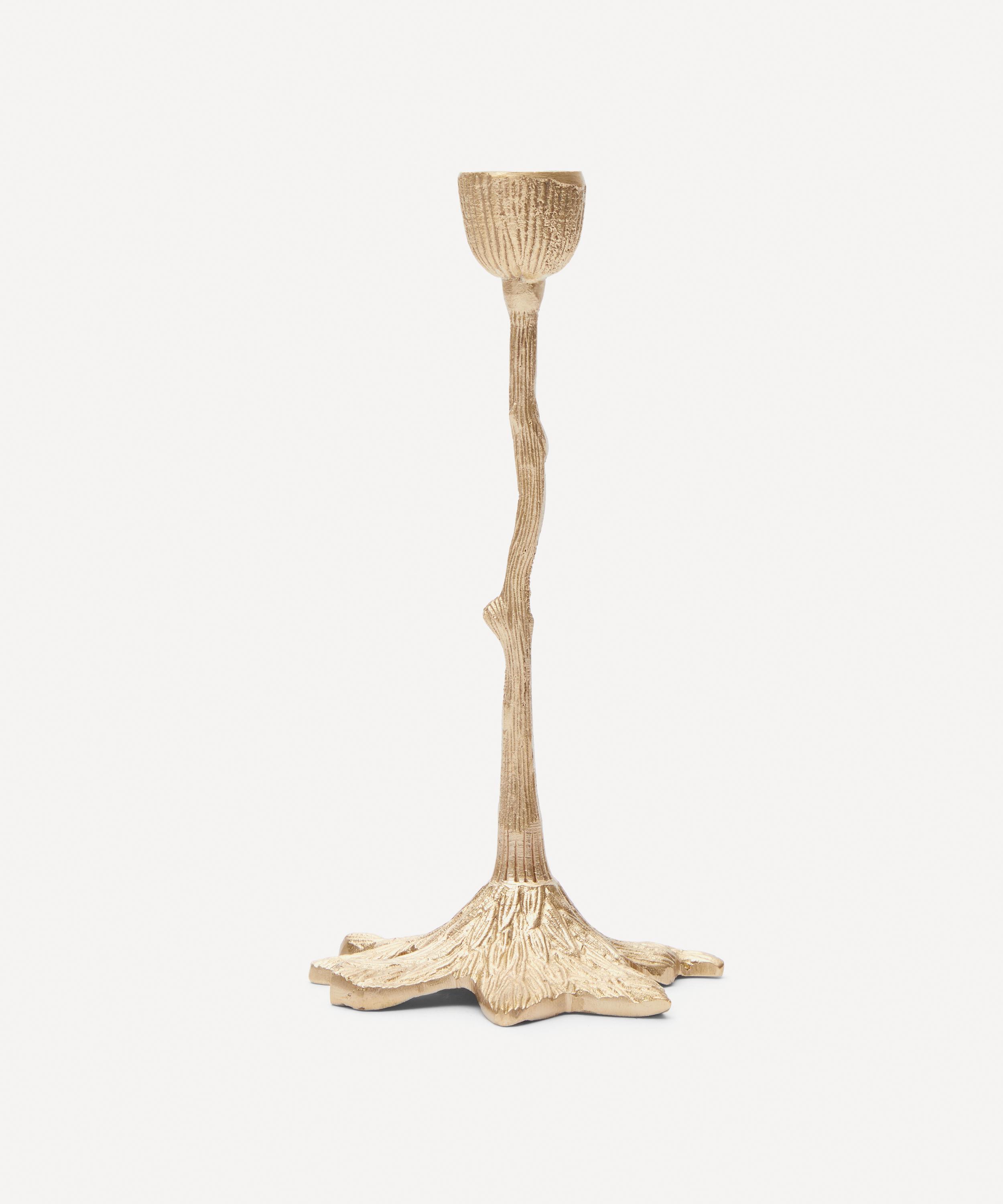 Give your table setting a sense of well-lit drama with this brass Mistry Tree candlestick holder from Doing Goods.