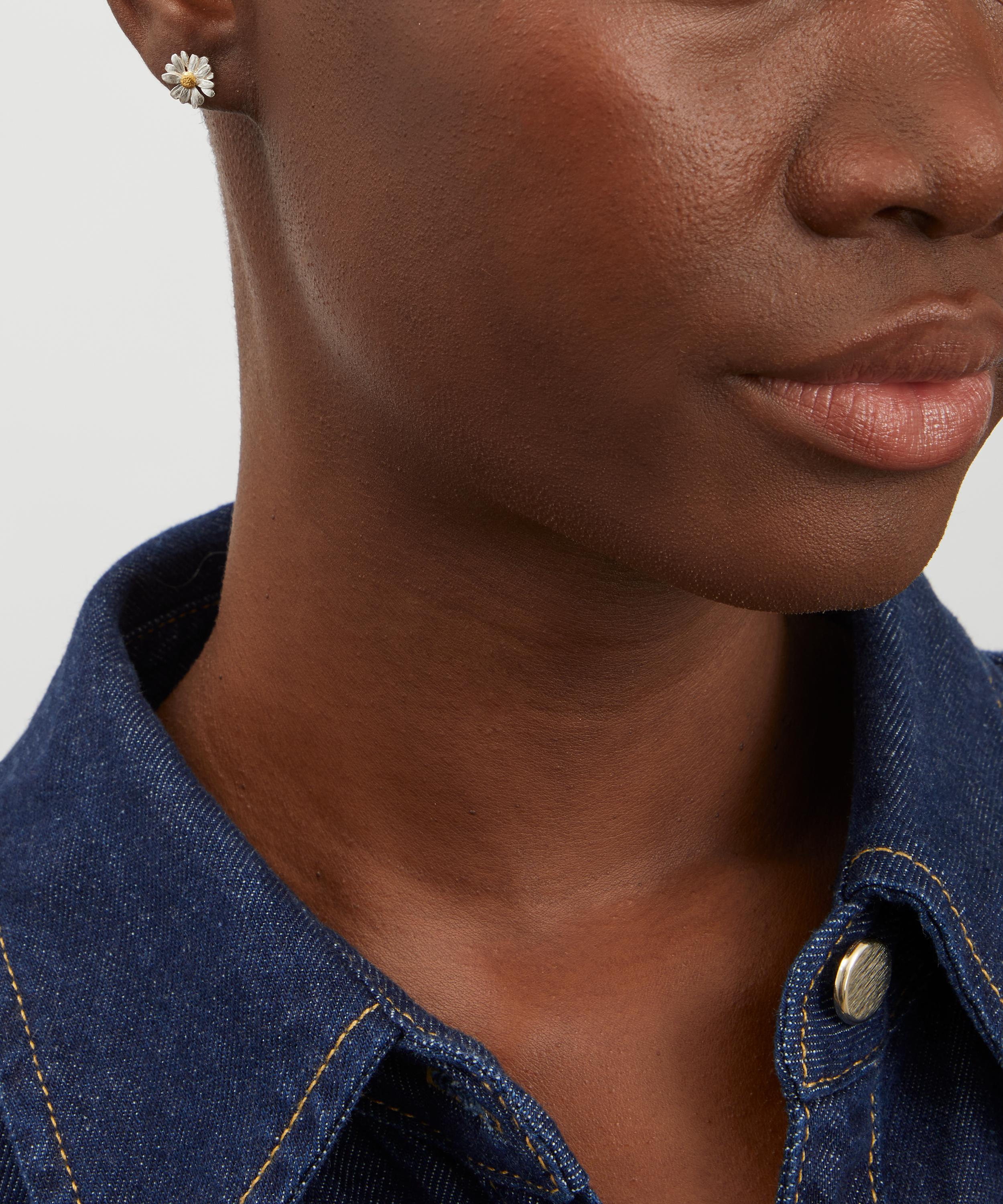 Alex Monroe's Classic Daisy stud earrings showcases one of the designer's signature natural motifs.