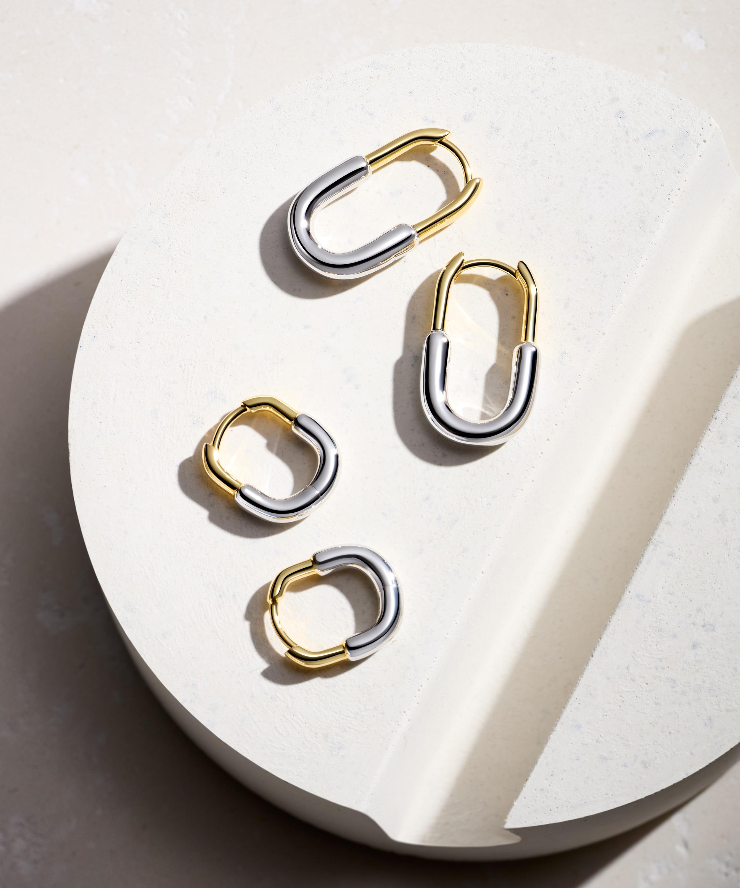 Mixed Metal Aurora U-Hoop Huggie Hoop Earrings