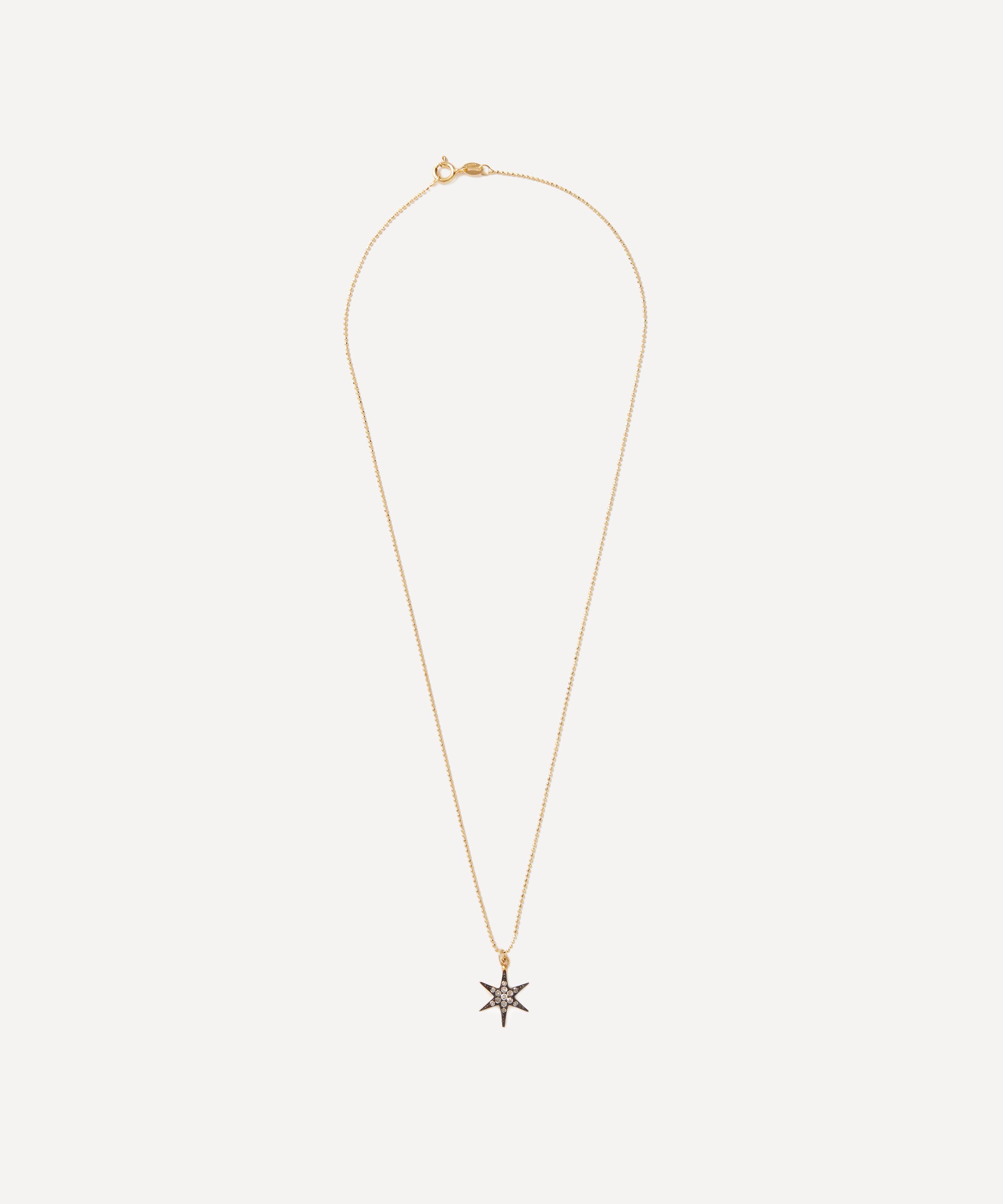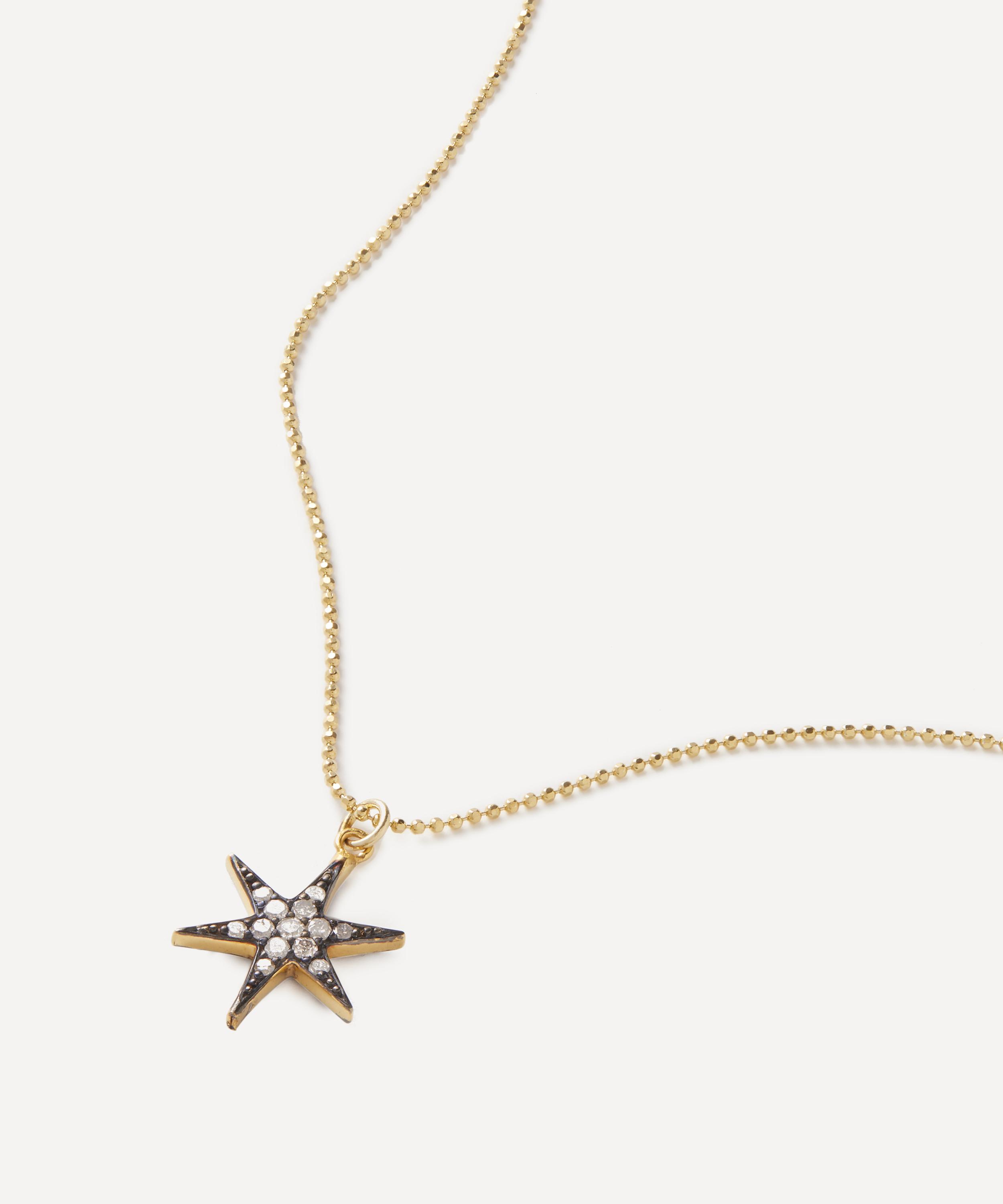 Interlacing edgy style with a soft femininity, Kirstie Le Marque’s Cosmic Star pendant necklace perfectly encapsulates the brand’s contemporary take on vintage bling. Crafted from gold-plated silver, it features a beautiful ball chain and star pendant in oxidised silver with pavé set diamonds. Style it as a solo piece, or as part of a chain stack.