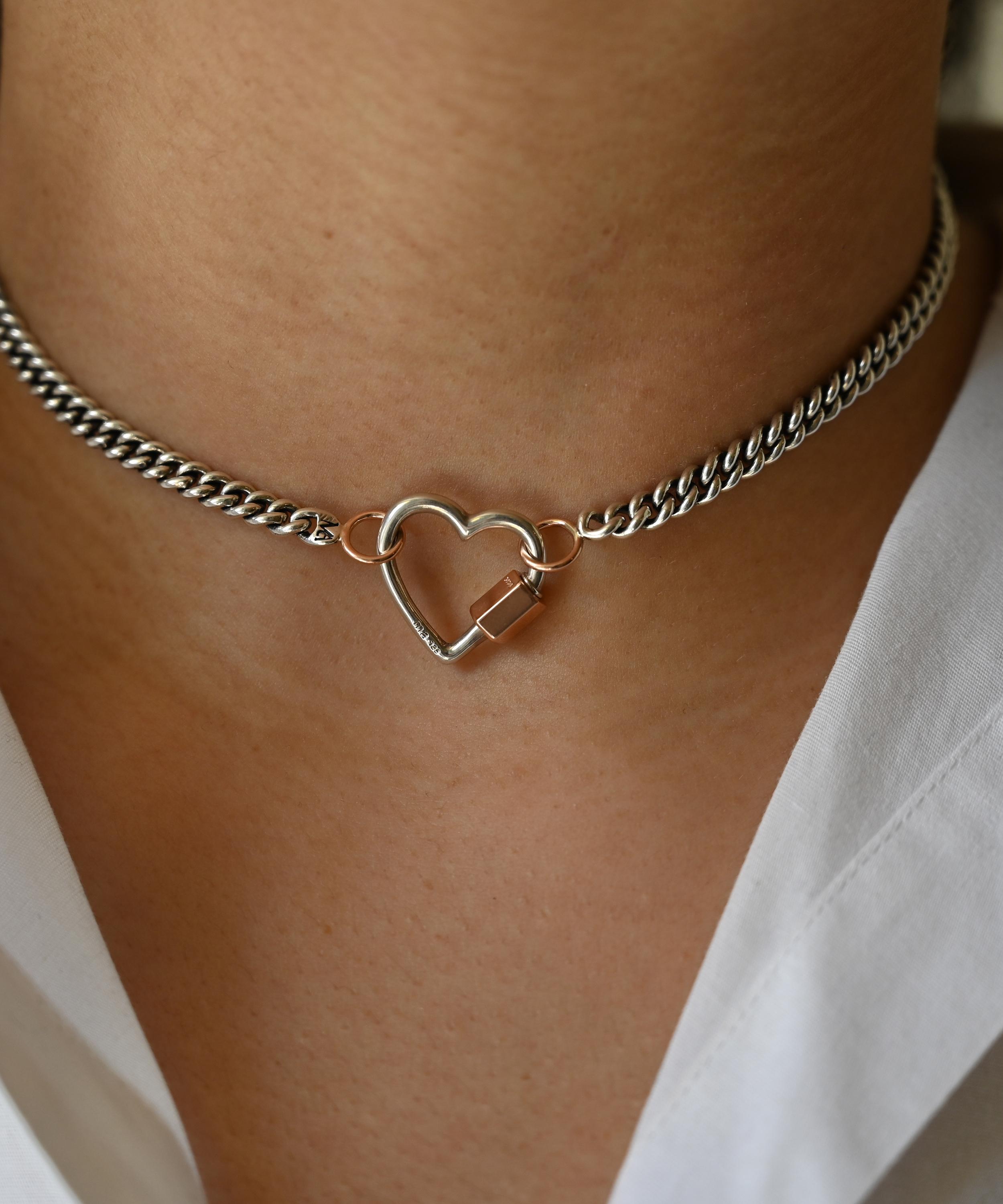 Complete your favourite chain from Marla Aaron with the playful Heartlock clasp. Made from sterling silver and 14ct rose gold, it features Aaron’s signature carabiner-inspired lock, shaped into a heart. Designed to be paired with one of the brand’s exceptional chains, it can be used as a connector, a clasp, or a charm holder. Spotlighting functional maximalism with a bold, yet refined look, it boasts endless styling possibilities, ideal for a necklace.