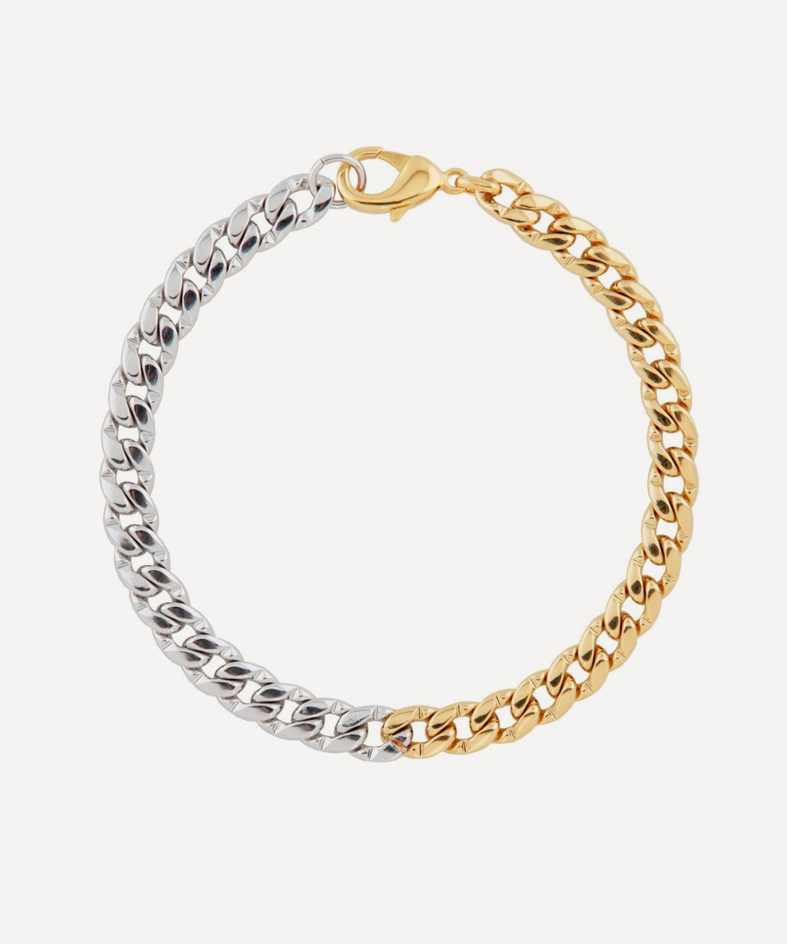 Add a statement finish and round off your outfit with the Libre chain necklace from Martha Calvo. It features a chunky curb chain in a contemporary, dual tone design composed of 14ct gold-plated and rhodium-plated brass. Wear it solo, stack it with your favourite necklaces, or try pairing it with one or two of the brand’s beaded styles.