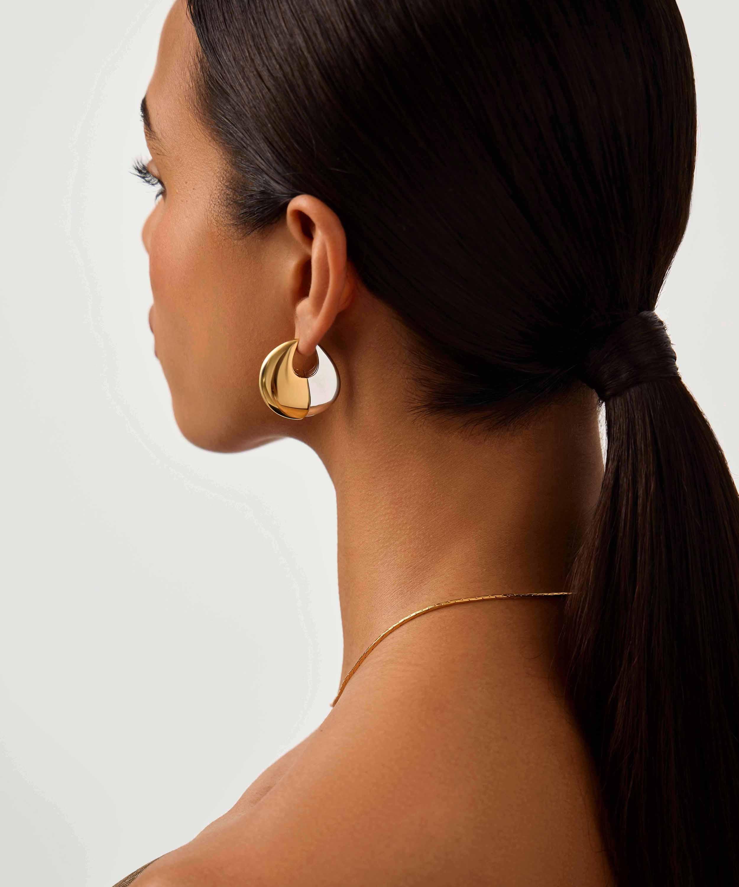 Embrace the maximalist look with these statement-making hoop earrings from Missoma. Inspired by sculptural shapes, each hoop features a pebble-shaped silhouette in gold-plated and rhodium-plated brass – creating dimension and a contrasting interplay of metals for an unmissable style statement. They can be worn with either silver or gold side facing forward, giving you two pairs of hoops in one.