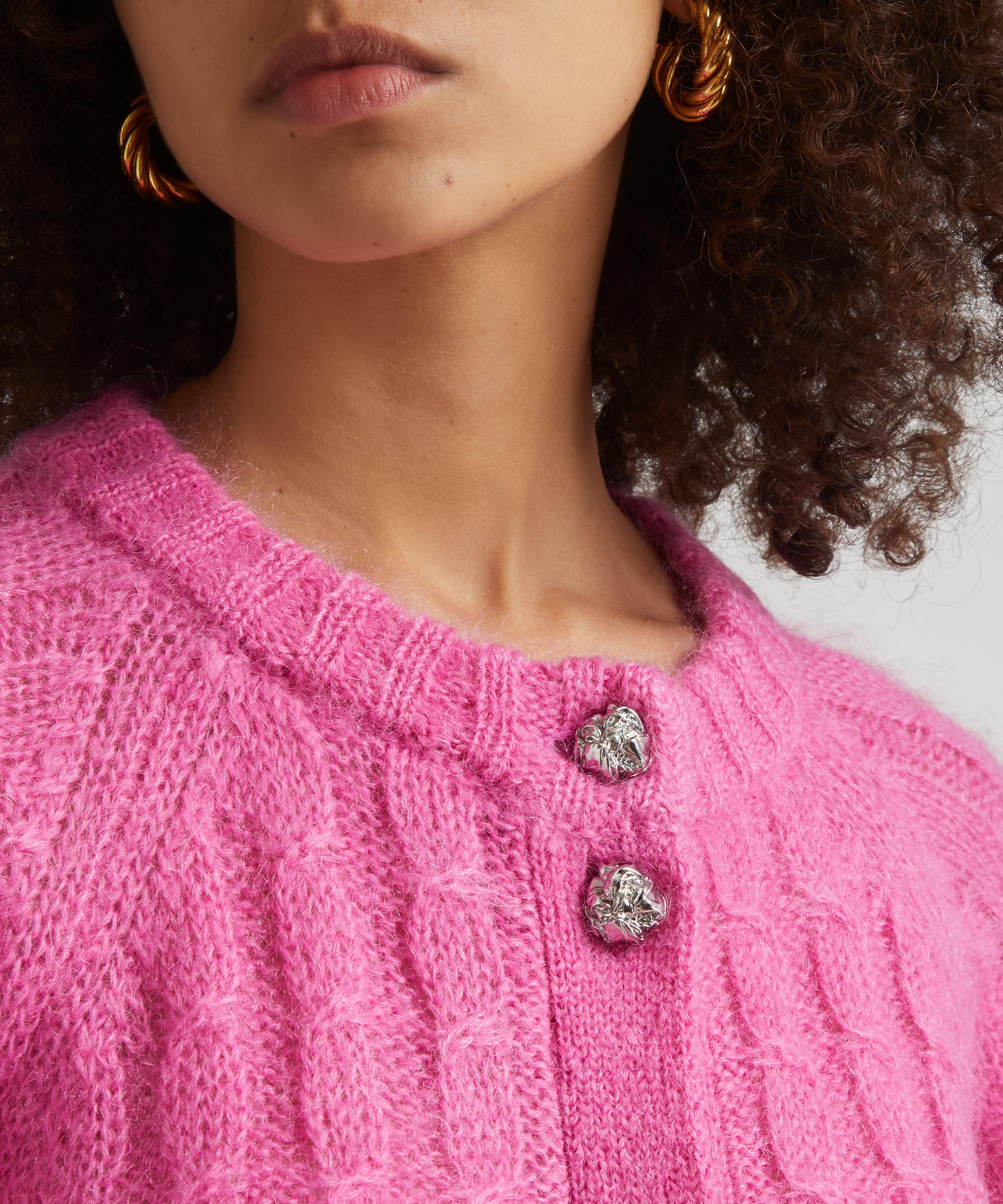 A cosy knit done the GANNI way, this hot-pink cardigan brings some Scandi-cool to your knitwear edit.