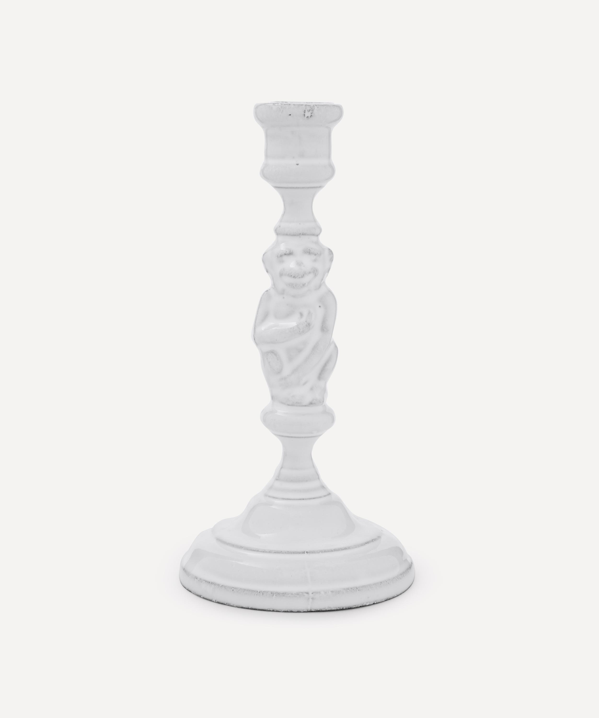 Votary of pre-industrial fabrication, Astier de Villatte is celebrated for being the one and only studio in Paris to hold and harbour the traditions of artisanal ceramic production. Restoring the ancestral systems of moulding and stamping, the Monkey candlestick is made using handcrafting techniques from the Middle Ages which involve moulding a handmade sheet of clay, double firing the ‘biscuit’ piece and glazing the product in white enamel – a lengthy process that involves a drying time of up to one month. Held up by a mischievous monkey, the candlestick is engraved with the brand’s signature crest – depicting an interlacing A & V – alongside the initials of one of the 40 master artisans who created it. Each handmade piece tells a beautiful story, it romances and imparts a sense of nostalgia into its owner. Arrange with other serveware in the collection to breathe an air of authenticity into your table setting.