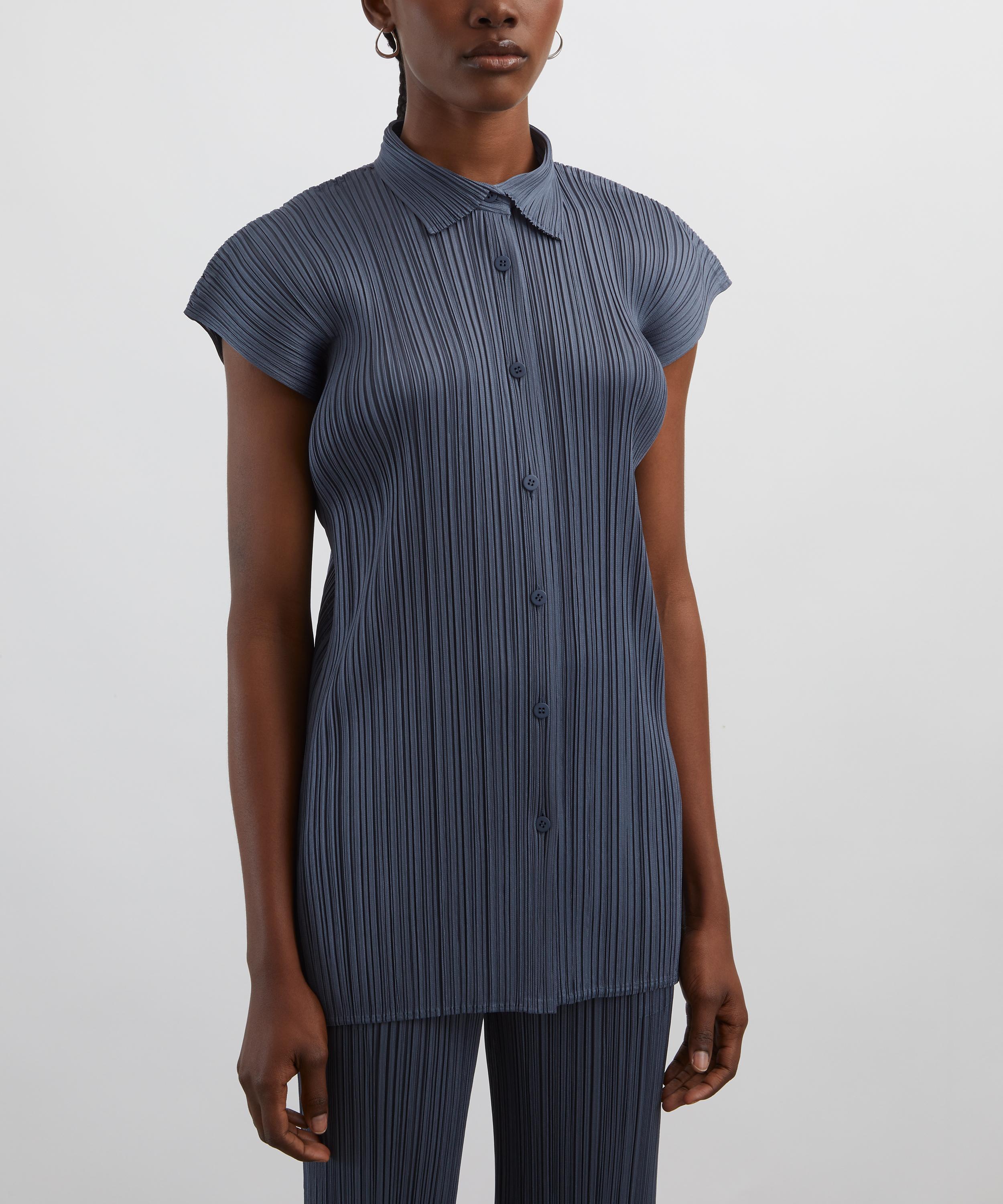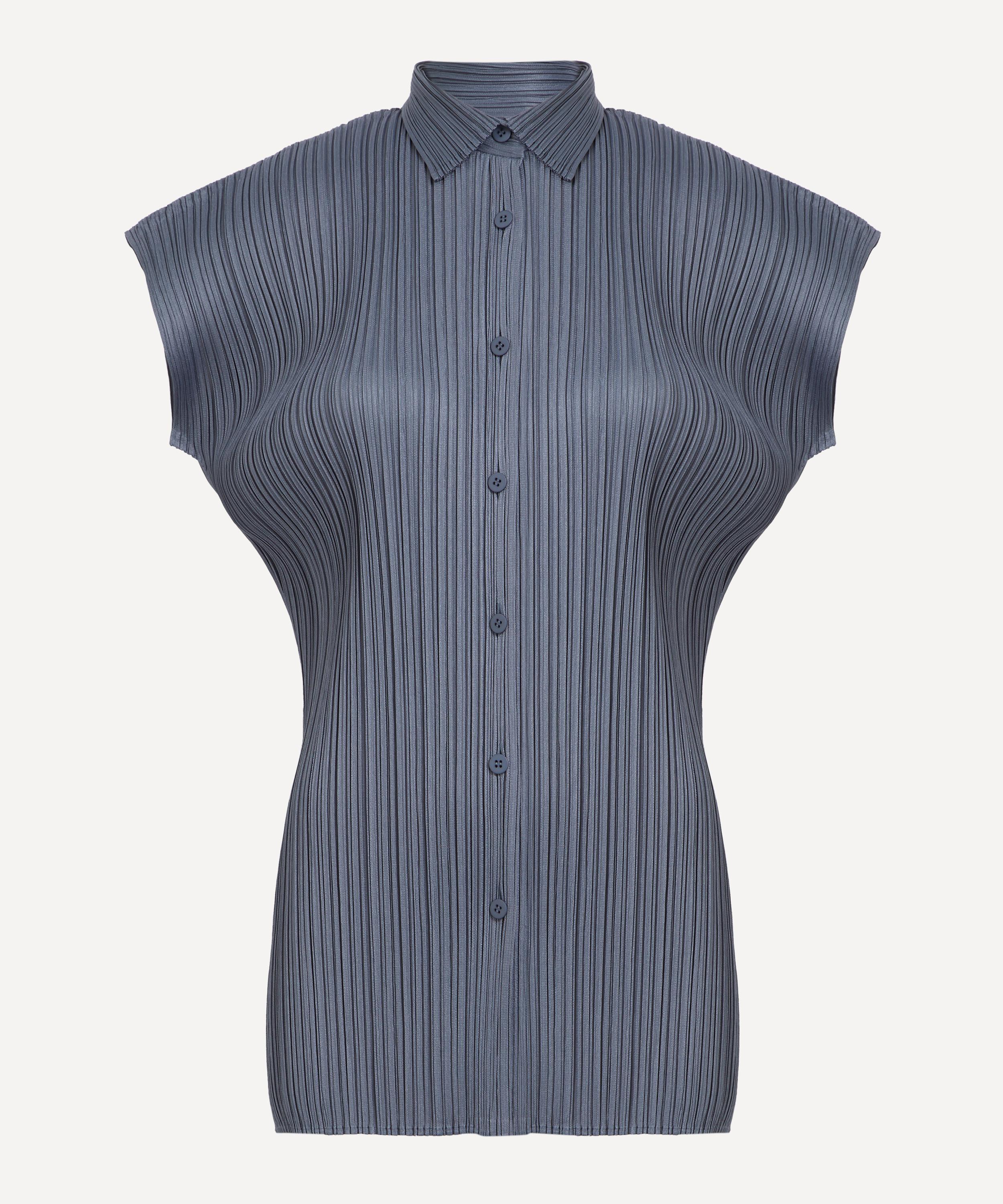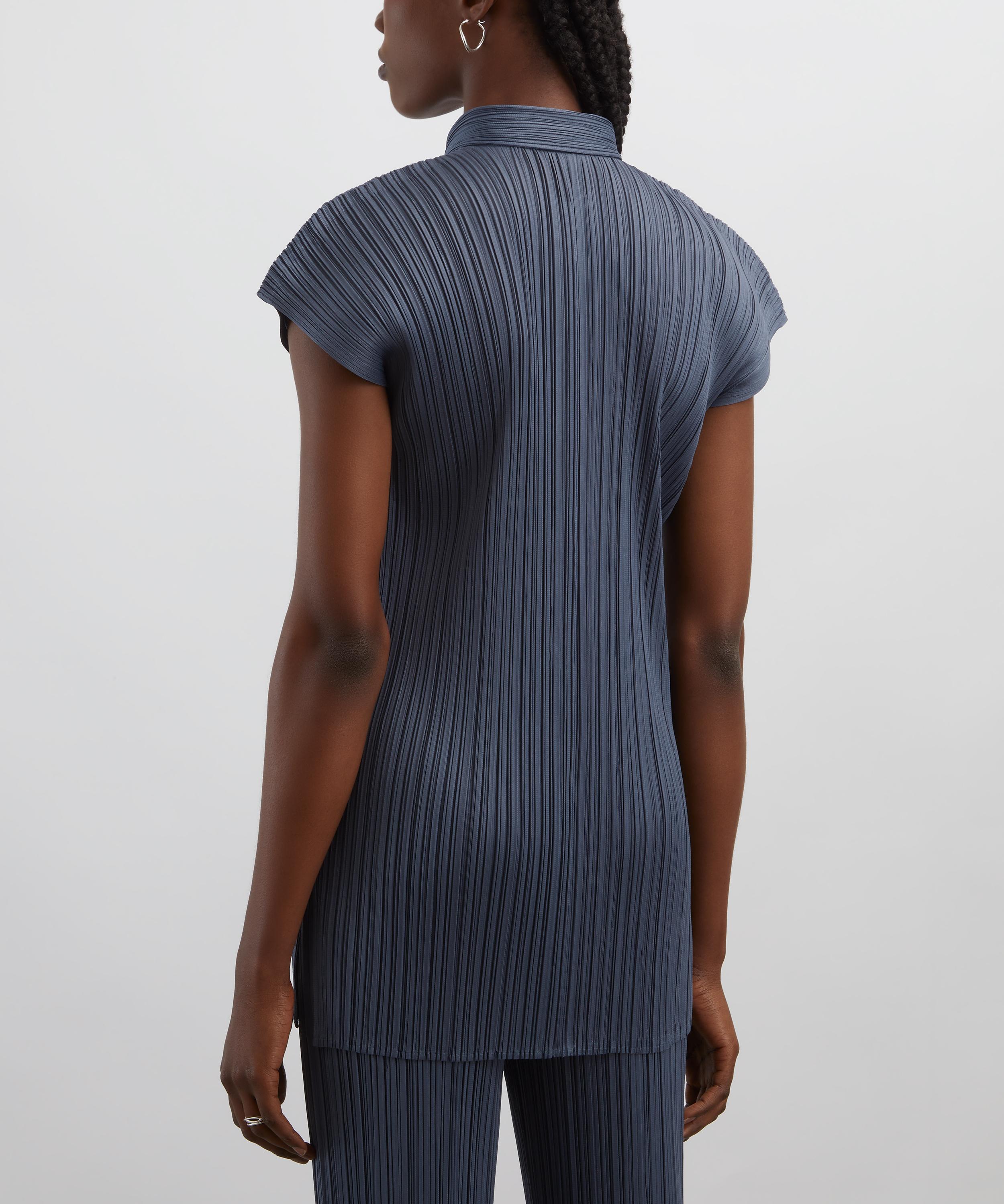 Part of the MONTHLY COLOURS: MAY collection,which displays a colour palette inspired by X-rayed objects, this pleated top features a long silhouette with regular collar, rounded short sleeves, side slits, and a button fastening - offering elegant movement and a serene, sculptural shape.