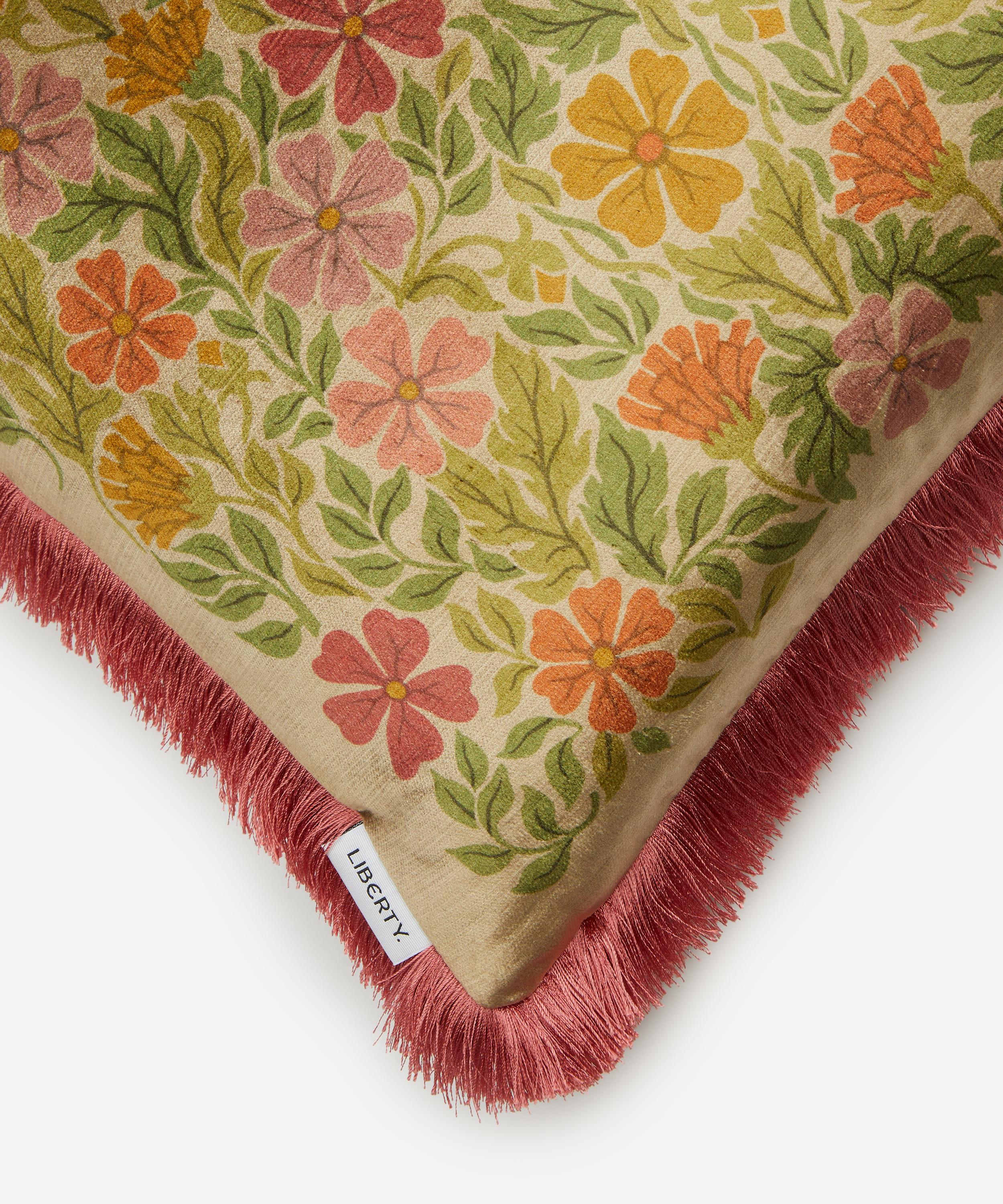 This Liberty square cushion features our Moon Garden print and is decadently soft with a plump recycled duck feather filling. Created in the Liberty design studio, Moon Garden – echoing the essence of the Arts and Crafts-style – appears here in a beautifully engineered iteration, complete with a fringed edge for an immaculate finish. The cushion’s classic silhouette and richly hued palette add an elegant twist to modern interiors.