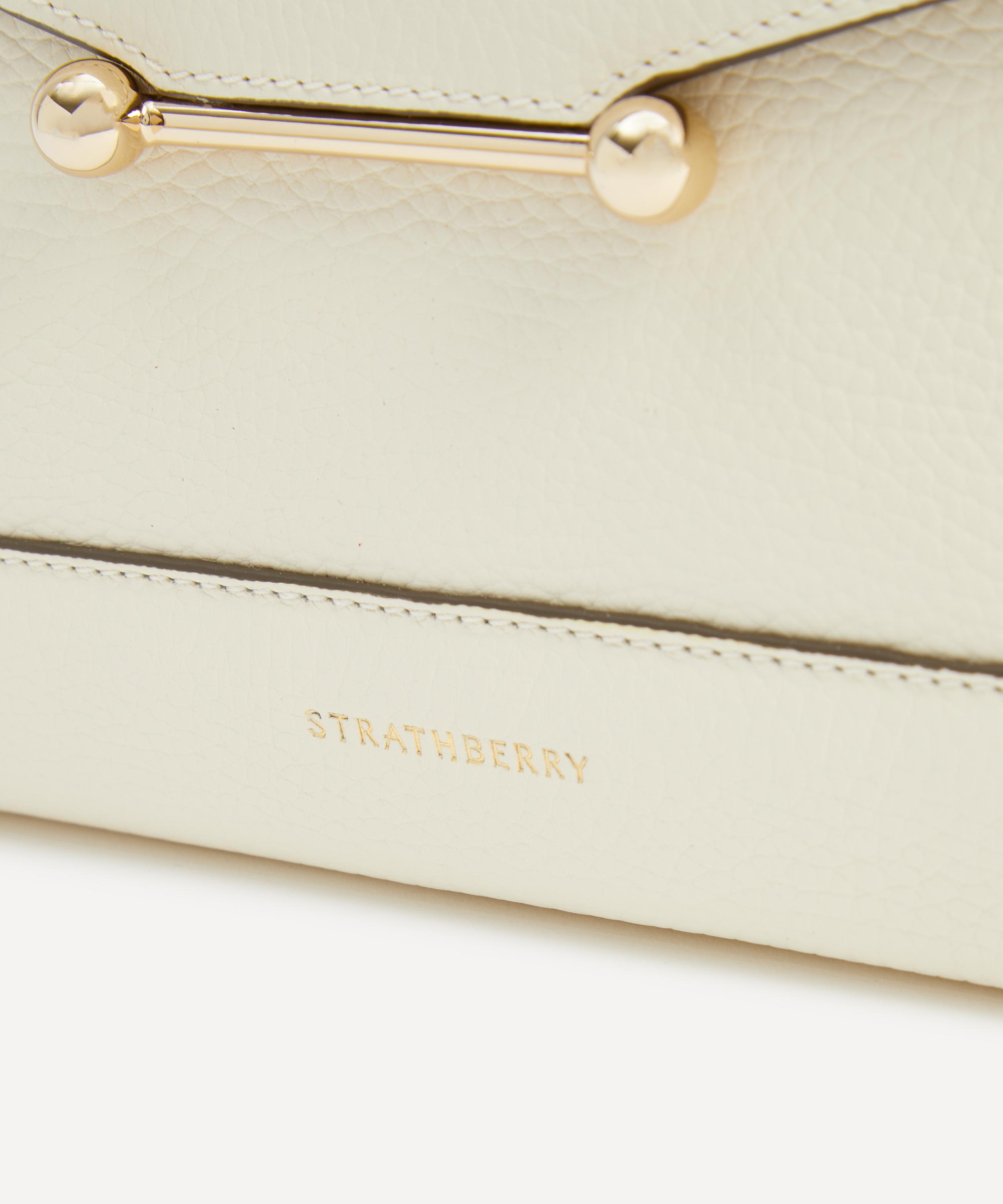 Handmade in Spain from grained calfskin leather and a soft microfibre lining, it features the brand’s best-selling silhouette, a masterpiece of clean, precise lines inspired by the works of Scottish artist Eduardo Paolozzi. Equipped with a spacious main compartment and a zipped interior pocket, secured by a signature bar closure, it’s guaranteed to add an air of sophistication to any outfit. Complete with one top handle and a detachable, adjustable strap – style it crossbody, sling it over your shoulder, or carry it by hand.About Strathberry