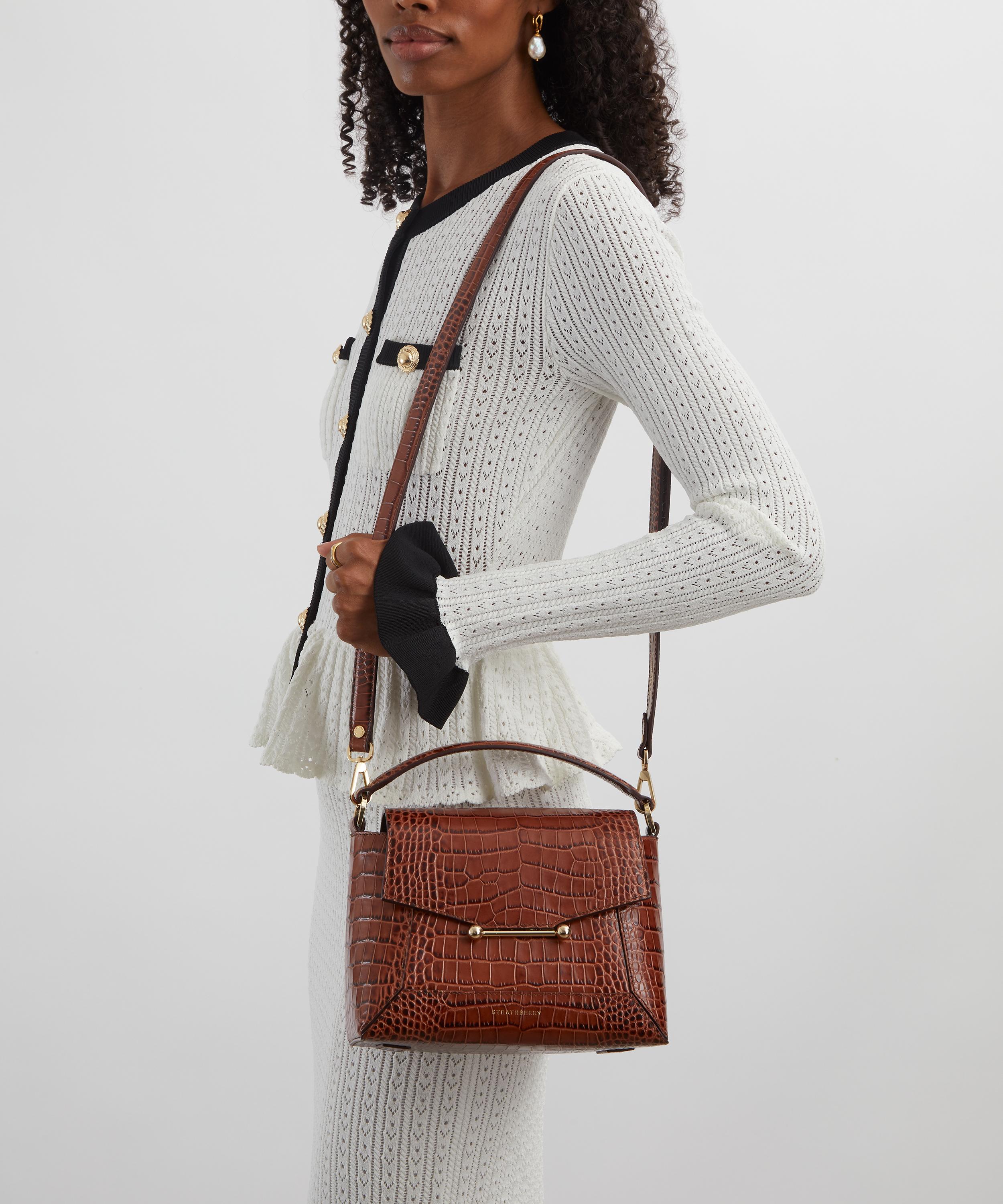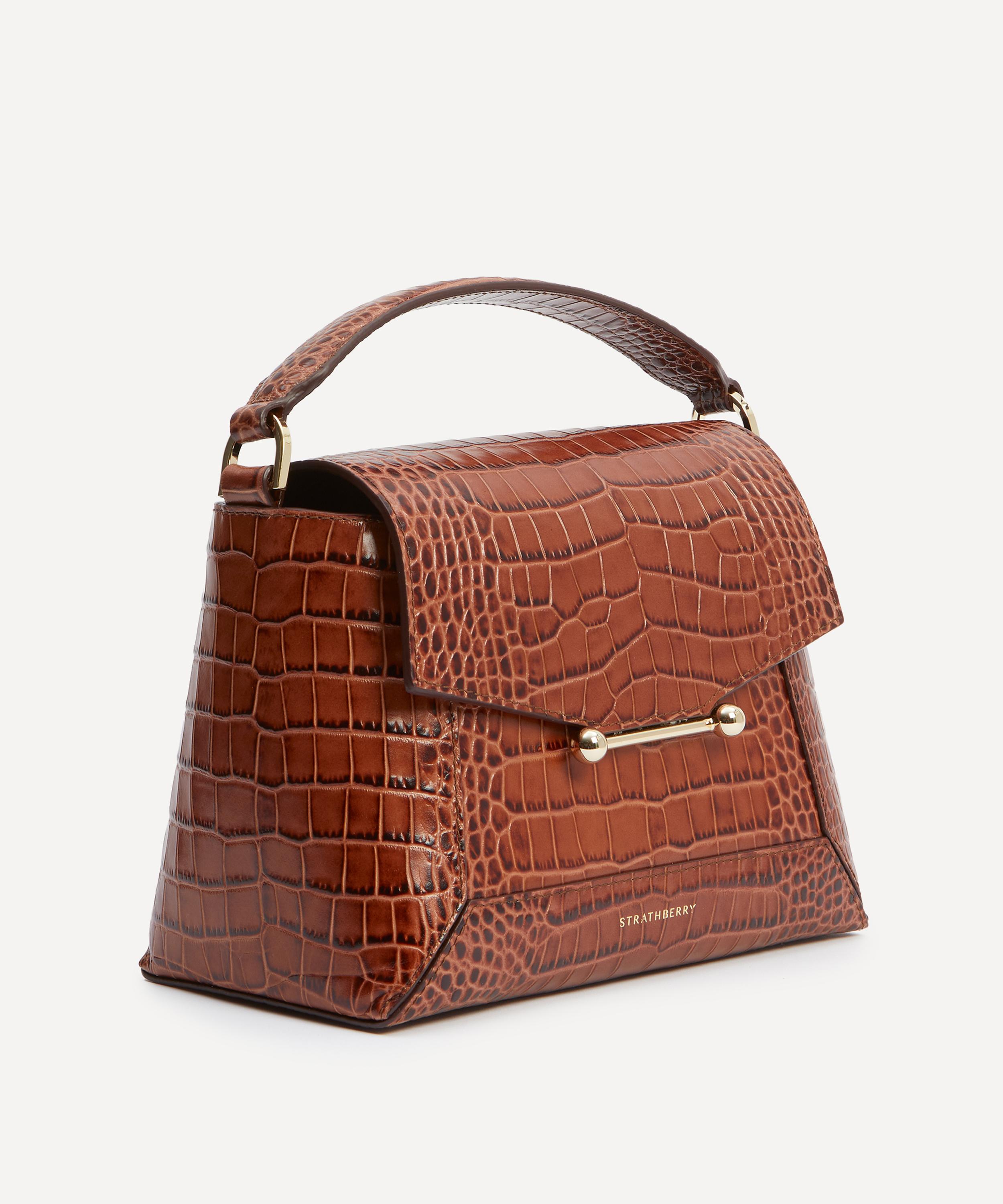 Handmade in Spain from croc-embossed calfskin leather and a soft microfibre lining, it features the brand’s best-selling silhouette, a masterpiece of clean, precise lines inspired by the works of Scottish artist Eduardo Paolozzi. Equipped with a spacious main compartment and a zipped interior pocket, secured by a signature bar closure, it’s guaranteed to add an air of sophistication to any outfit. Complete with one top handle and a detachable, adjustable strap – style it crossbody, sling it over your shoulder, or carry it by hand.About Strathberry