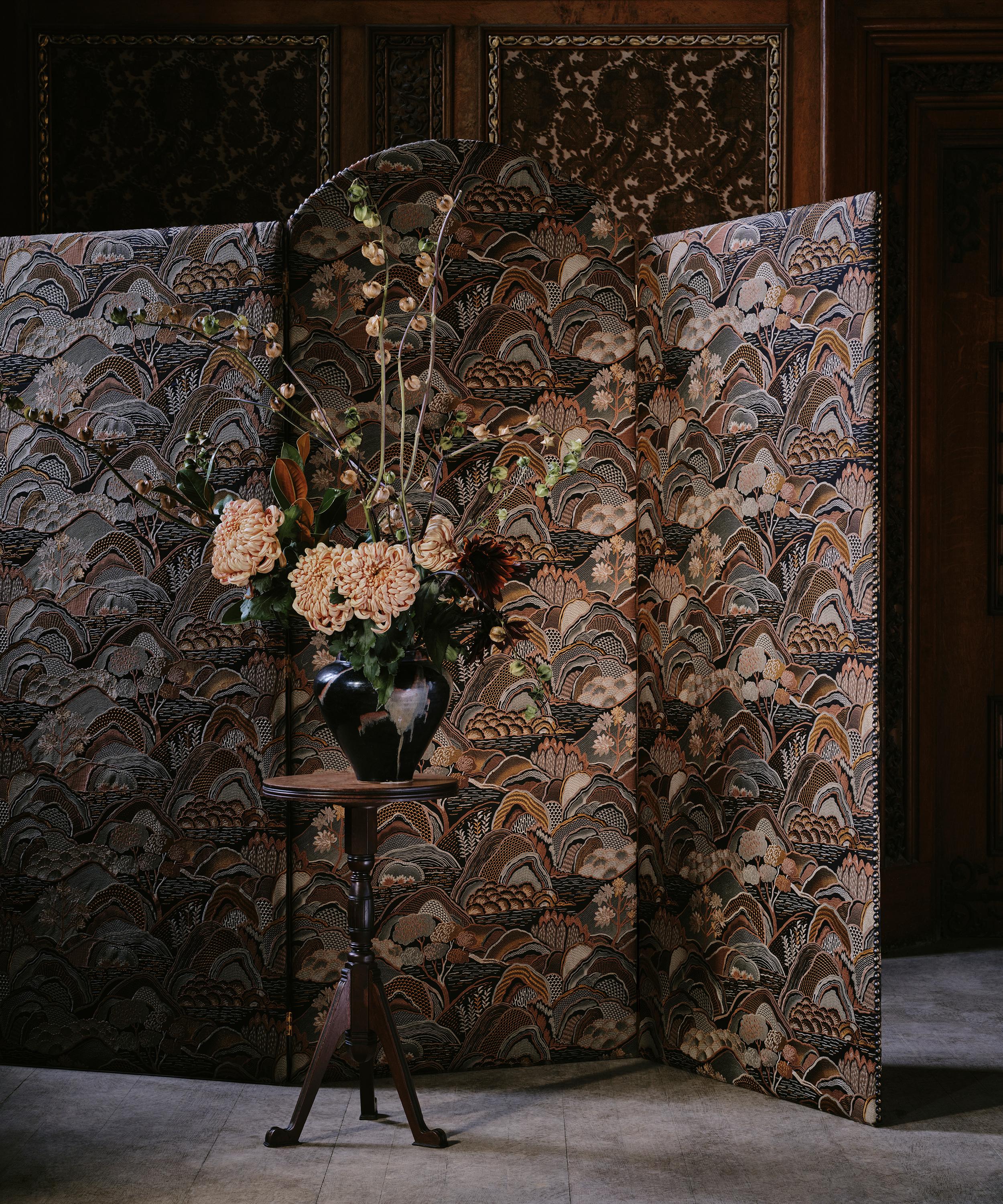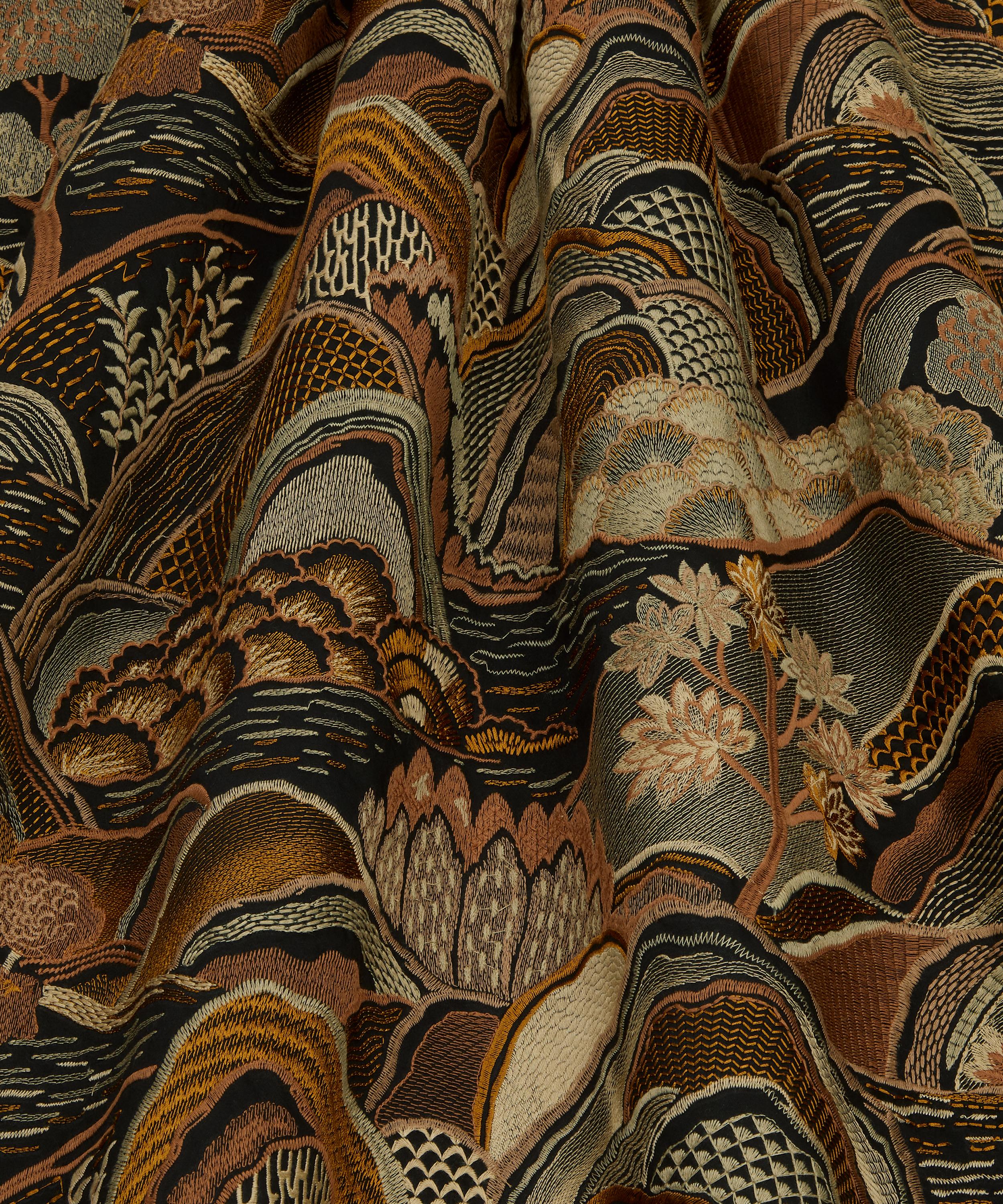 The Botanical Atlas fabric collection celebrates our historic lineage of craftsmanship and design through a cross-pollination of styles and visual narratives. Richly layered embroideries, opulent textured weaves, and contemporary printed velvets and linens are juxtaposed with a selection of elegant stripes and mesmerising geometrics - expertly crafted using traditional and cutting-edge techniques in Italy, Belgium, and India. Inspired by Japanese mountainscapes and ancient forests, Mount Edo features dramatic scenic embroidery perfectly complements the printed arboreal and floral artworks in the collection.