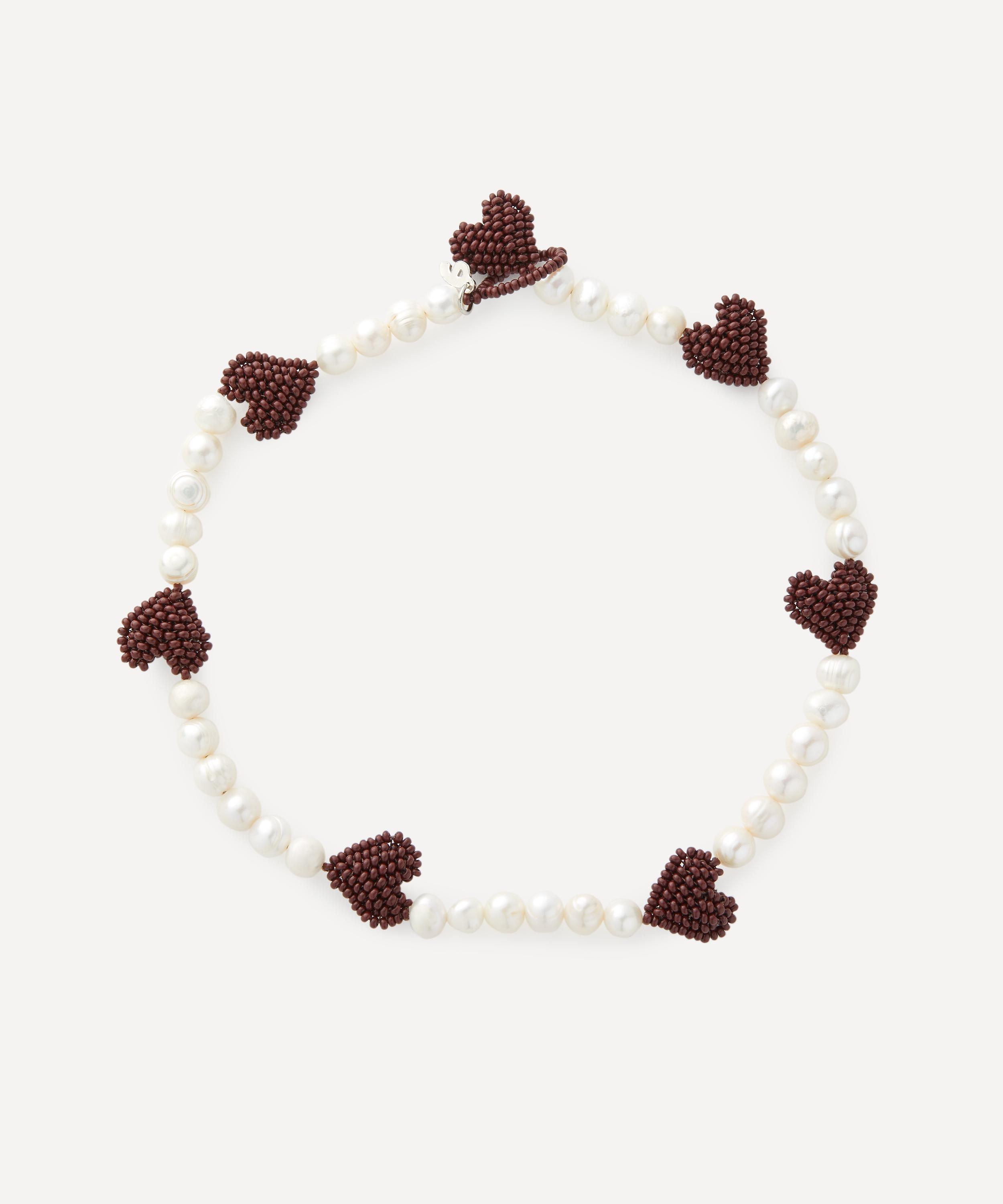 Elevate your accessory collection with this delectable pearl necklace from Pura Utz. Handmade by skilled artisans in Guatemala, it features a string of freshwater pearls with beaded hearts, made entirely from burgundy-coloured glass beads. Offering a fun and playful way of accessorising, style it solo, or mix and match with other styles from the brand’s fruity assortments.