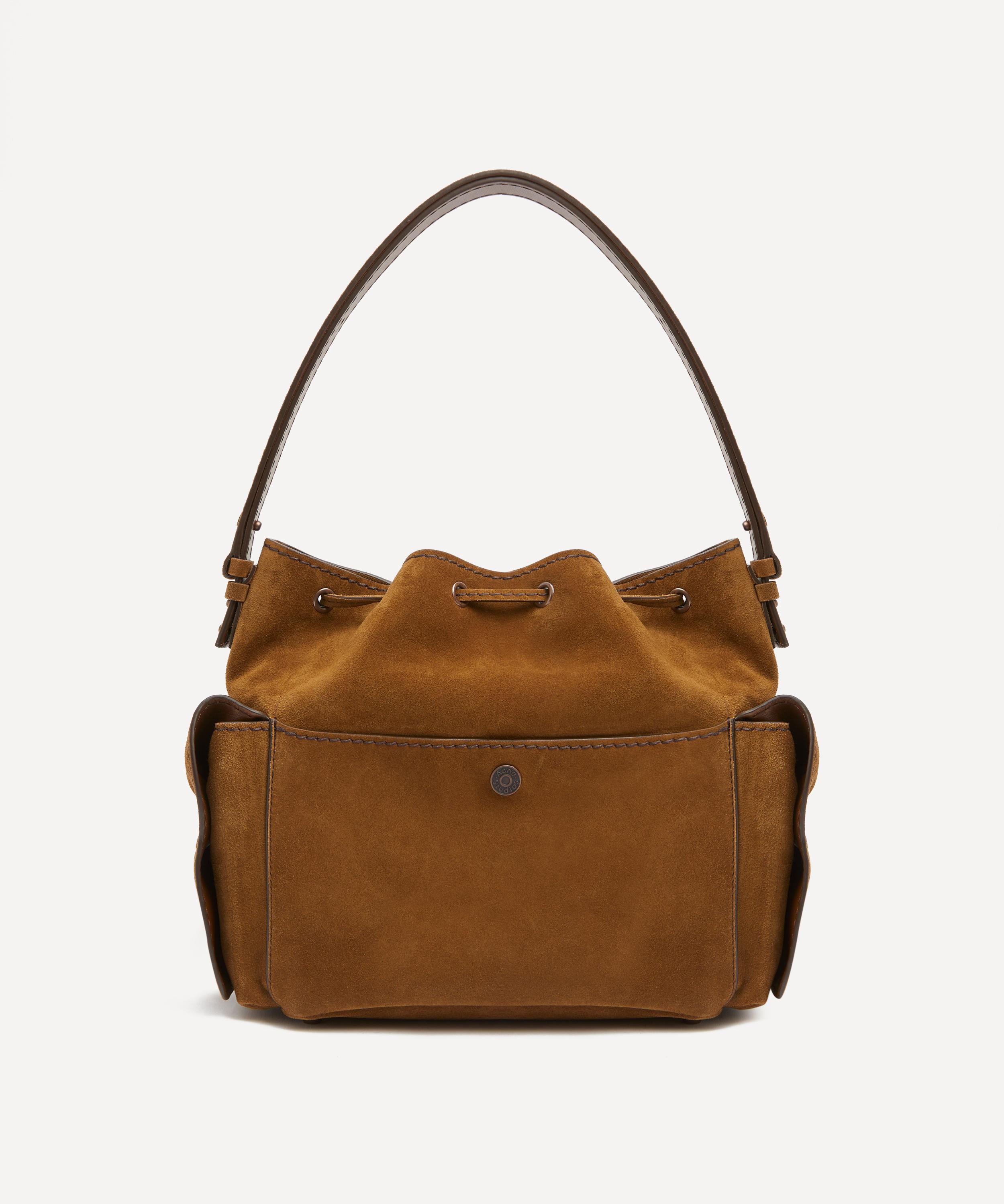 Multi-Pocket Suede Bucket Bag