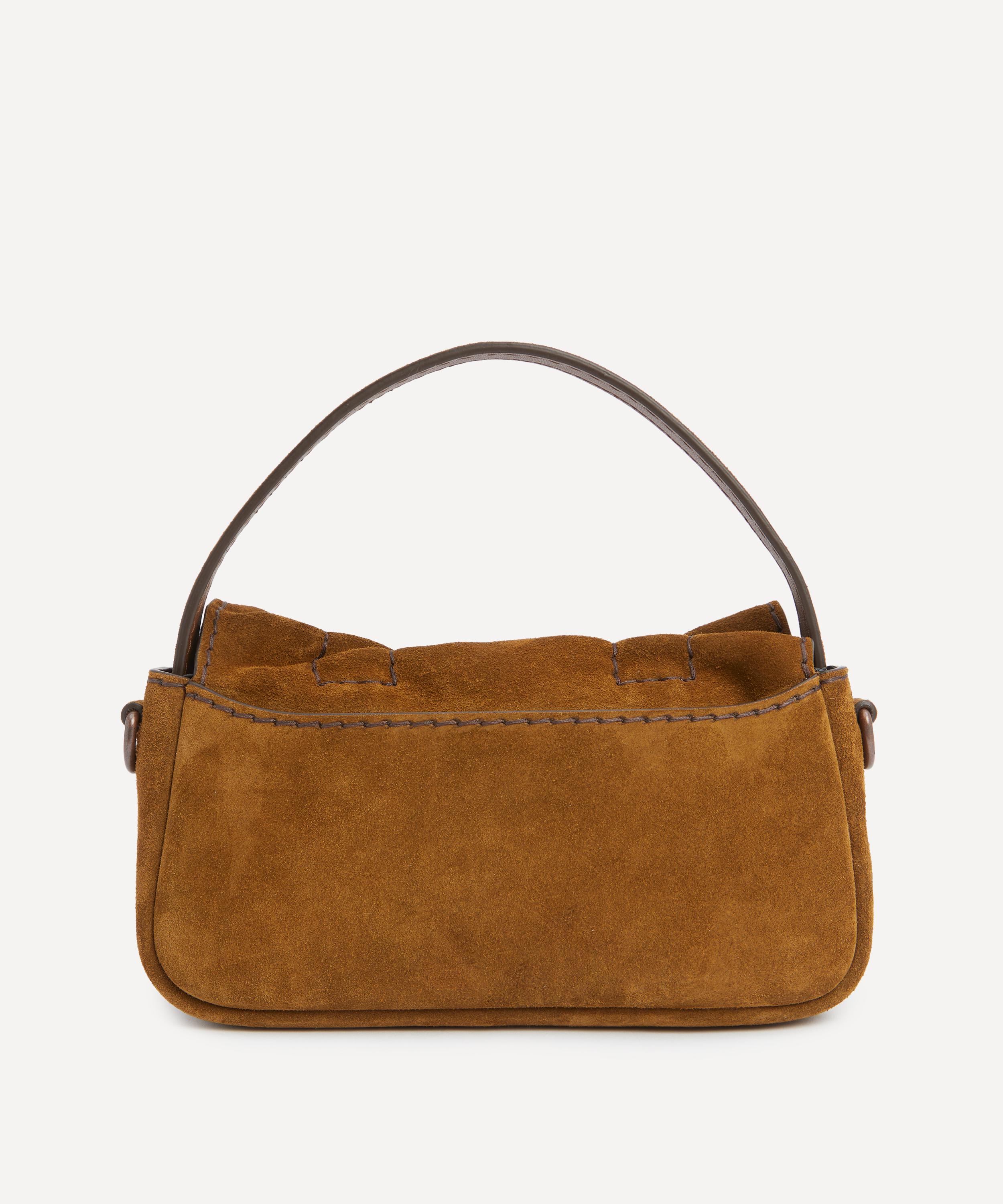 Crafted from suede leather with laced knot details, it’s complete with a fold-over flap and a discrete magnetic closure, one top handle and adjustable crossbody strap. Sling it over your shoulder or style it cross-body to make an artful impression on everyday excursions.