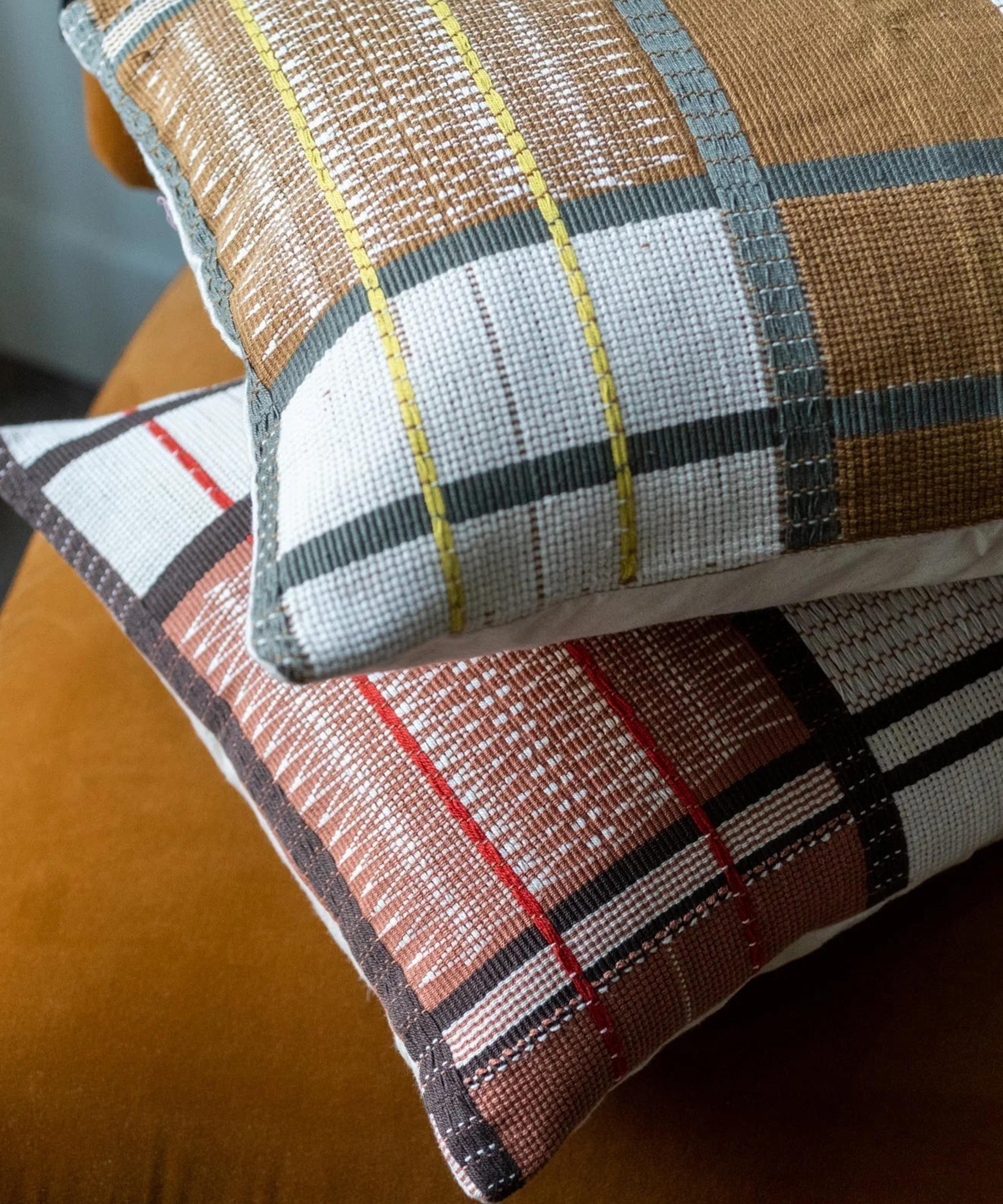 The Mulya cushion from Caravane is meticulously crafted from hand-woven cotton, radiating thoughtful charm.