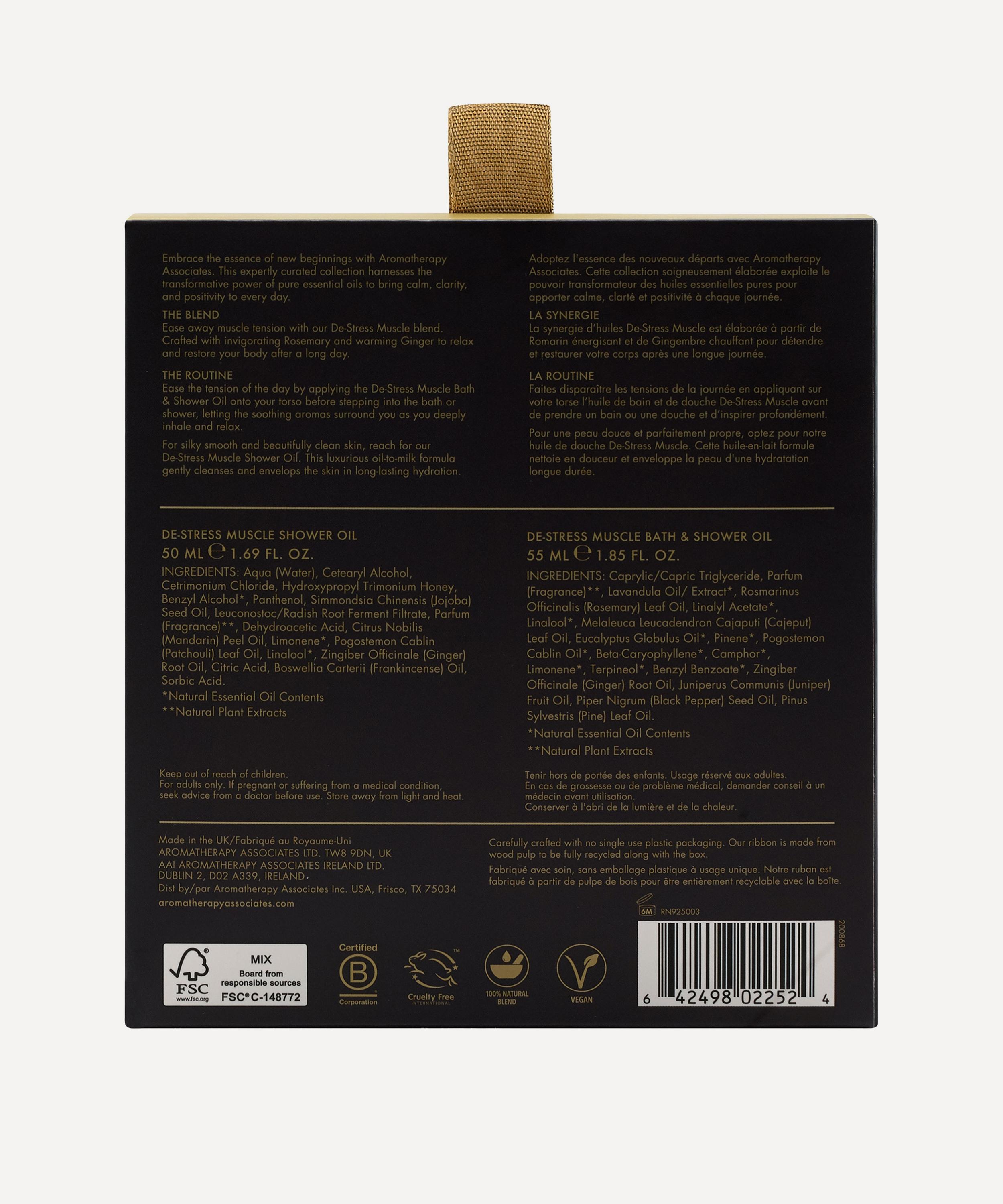 - Includes: De-Stress Muscle Bath & Shower Oil 55ml and De-Stress Muscle Shower Oil 50ml