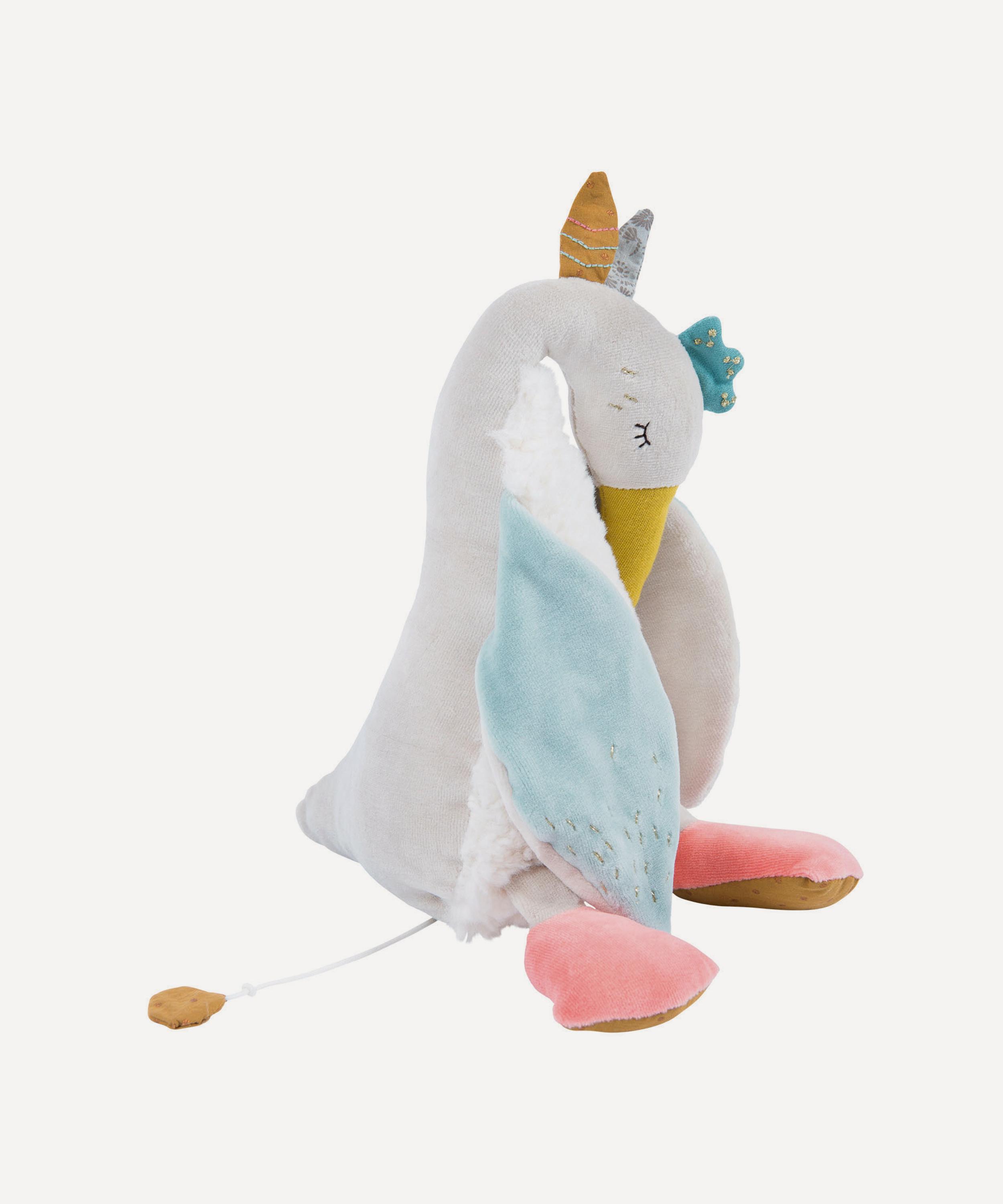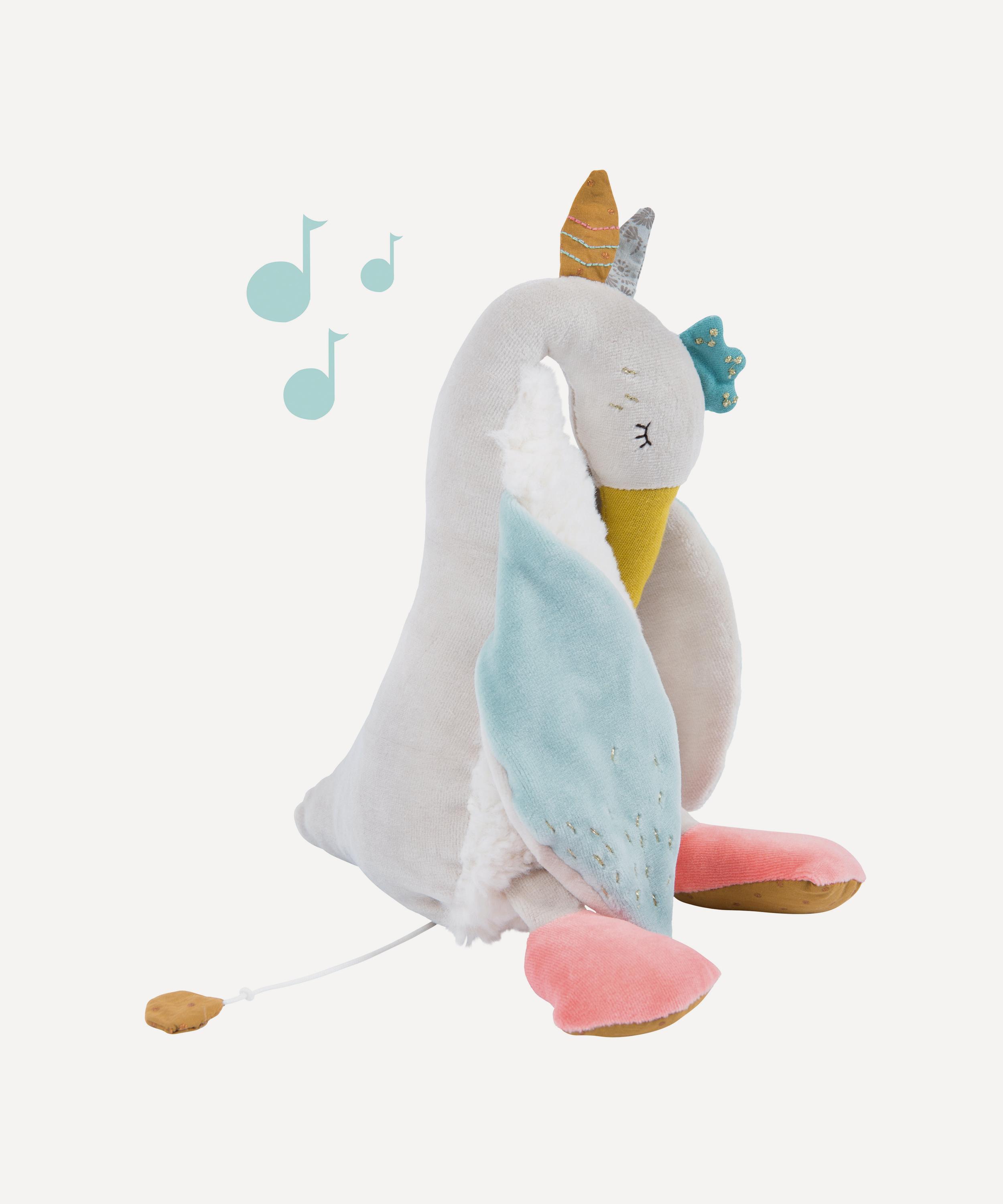 Little ones can drift into a peaceful sleep with Olga the goose – a musical soft toy from Moulin Roty.