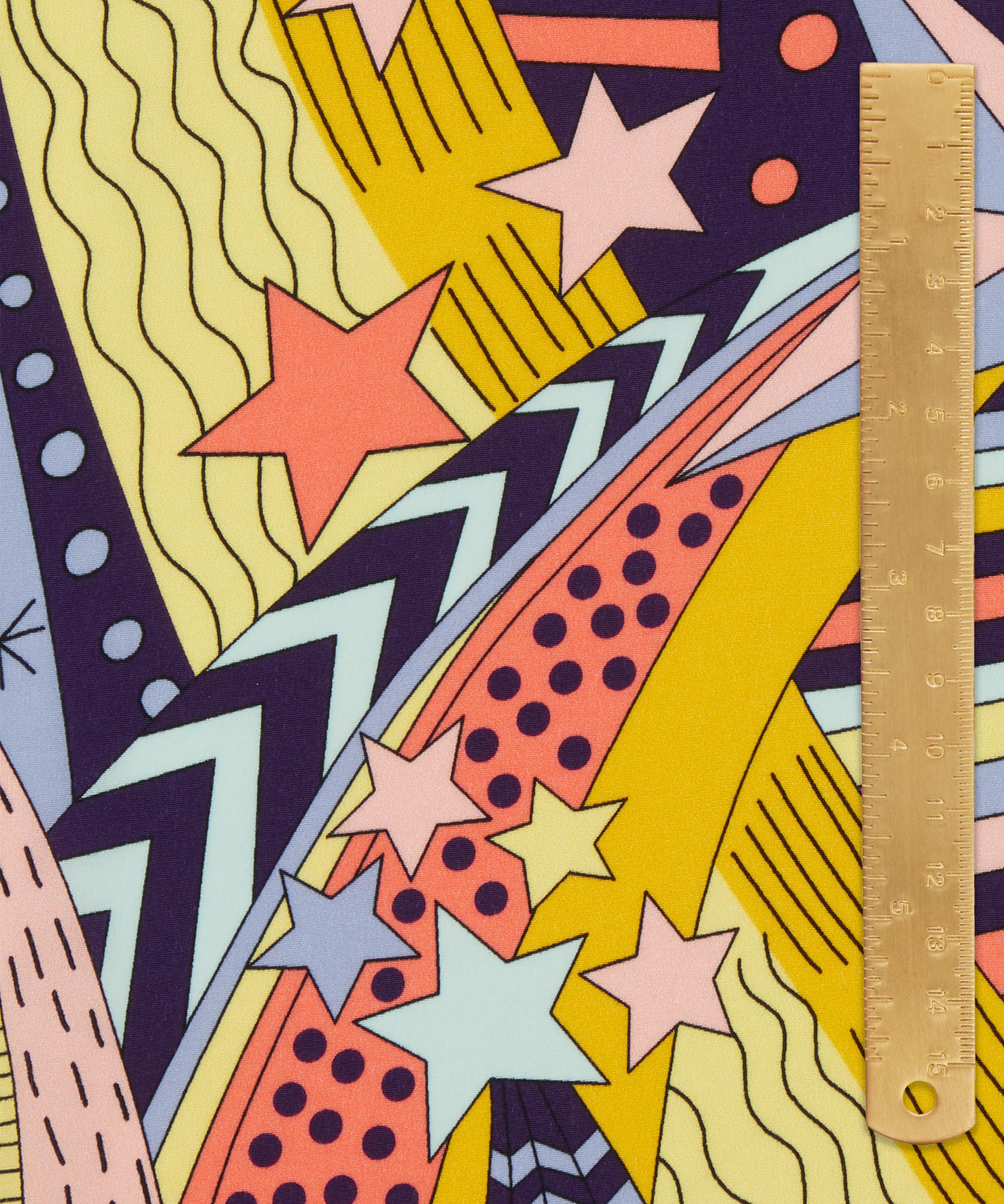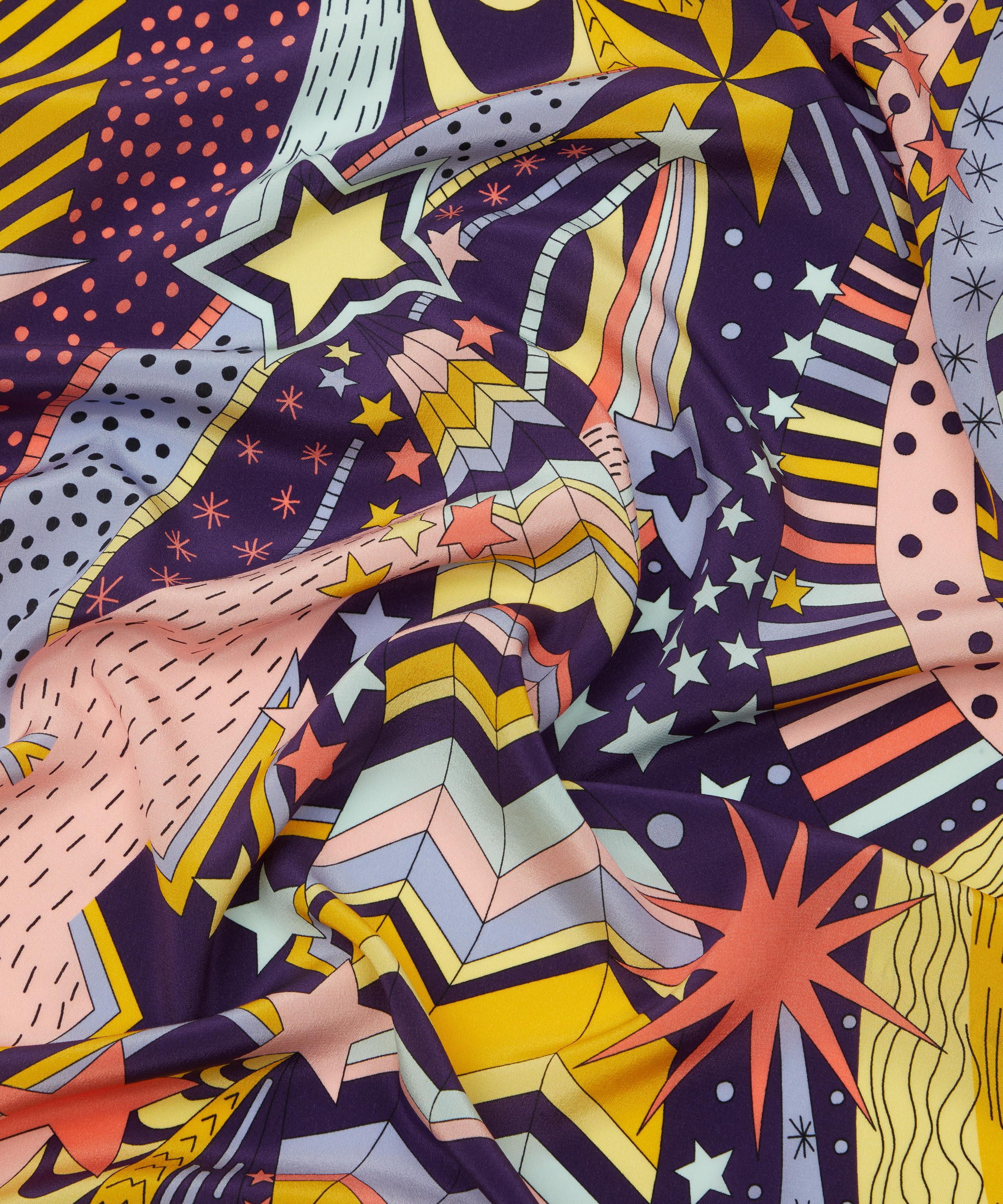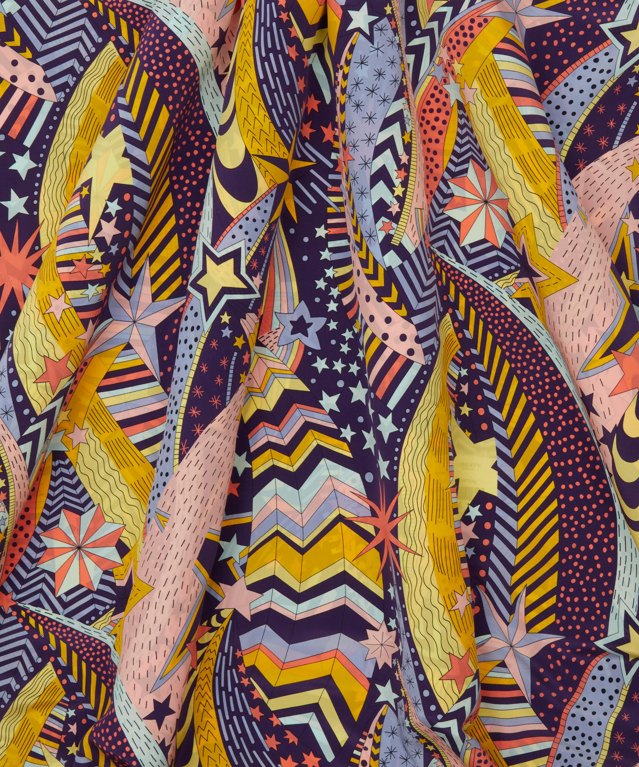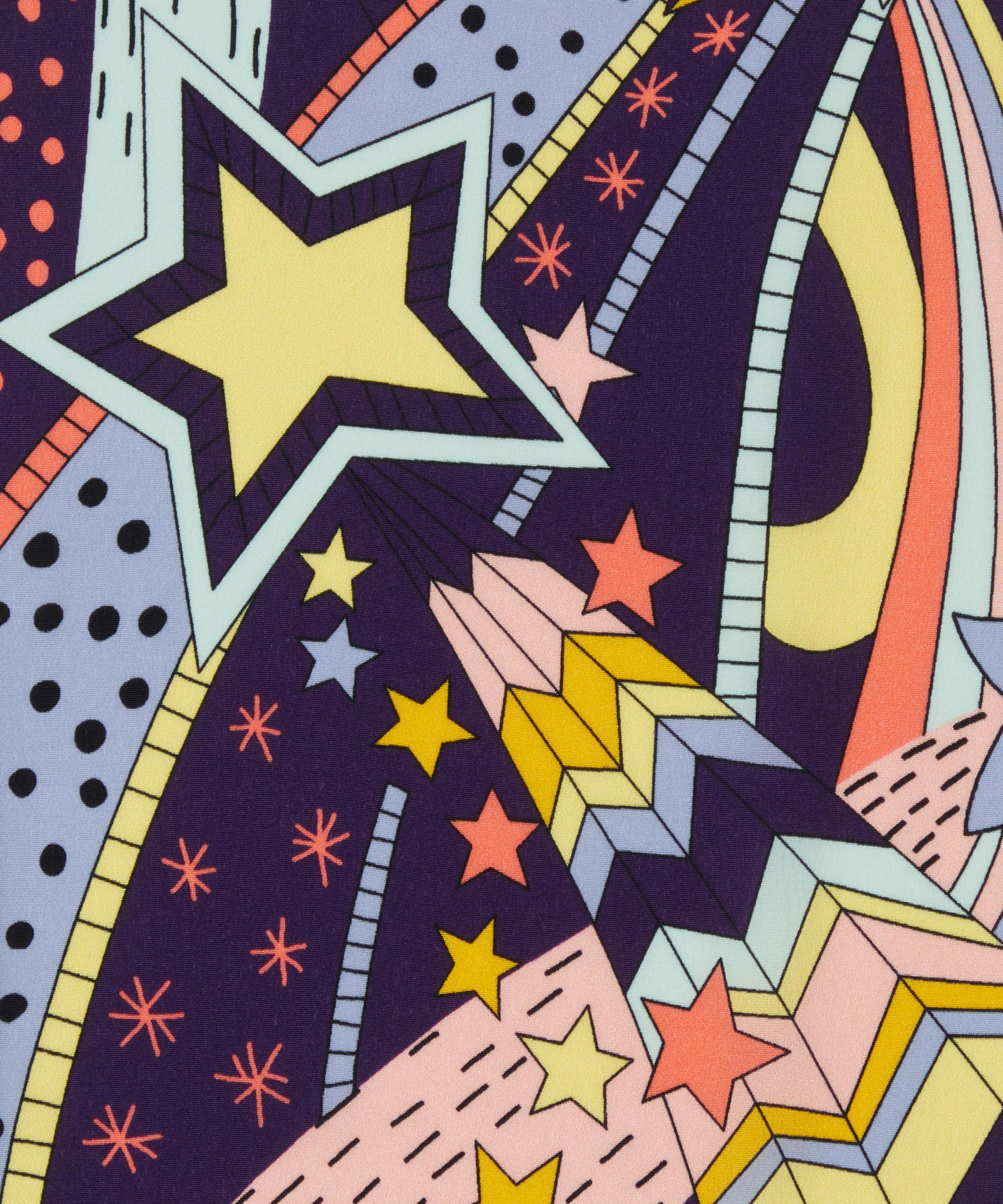 Originally from our SS10 collection, this fun-filled exploration of the night sky featuring vibrant comets, shimmering supernovas, and shooting stars has been rescaled and recoloured for SS25. This print is part of The Stage act of Retold, a look through our visually enthralling Liberty flagship which, with its atriums and galleries, forms the perfect stage for this performance to unfold – set with an eclectic collection of objets d’art from across the globe.
