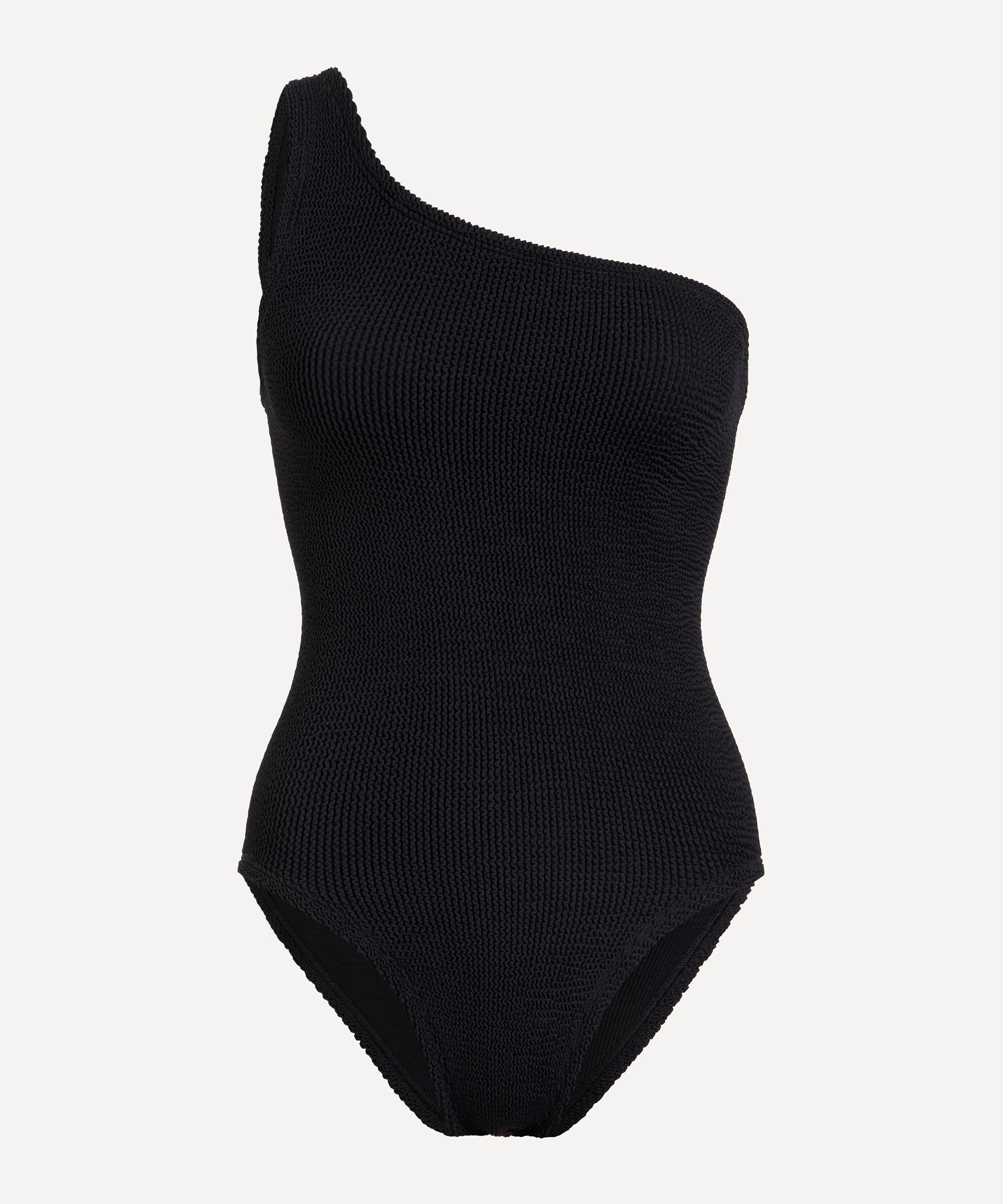 Minimal and effortlessly chic, Hunza G's Nancy swimsuit boasts a bold asymmetric silhouette - a polished and practical addition to your poolside edit.
