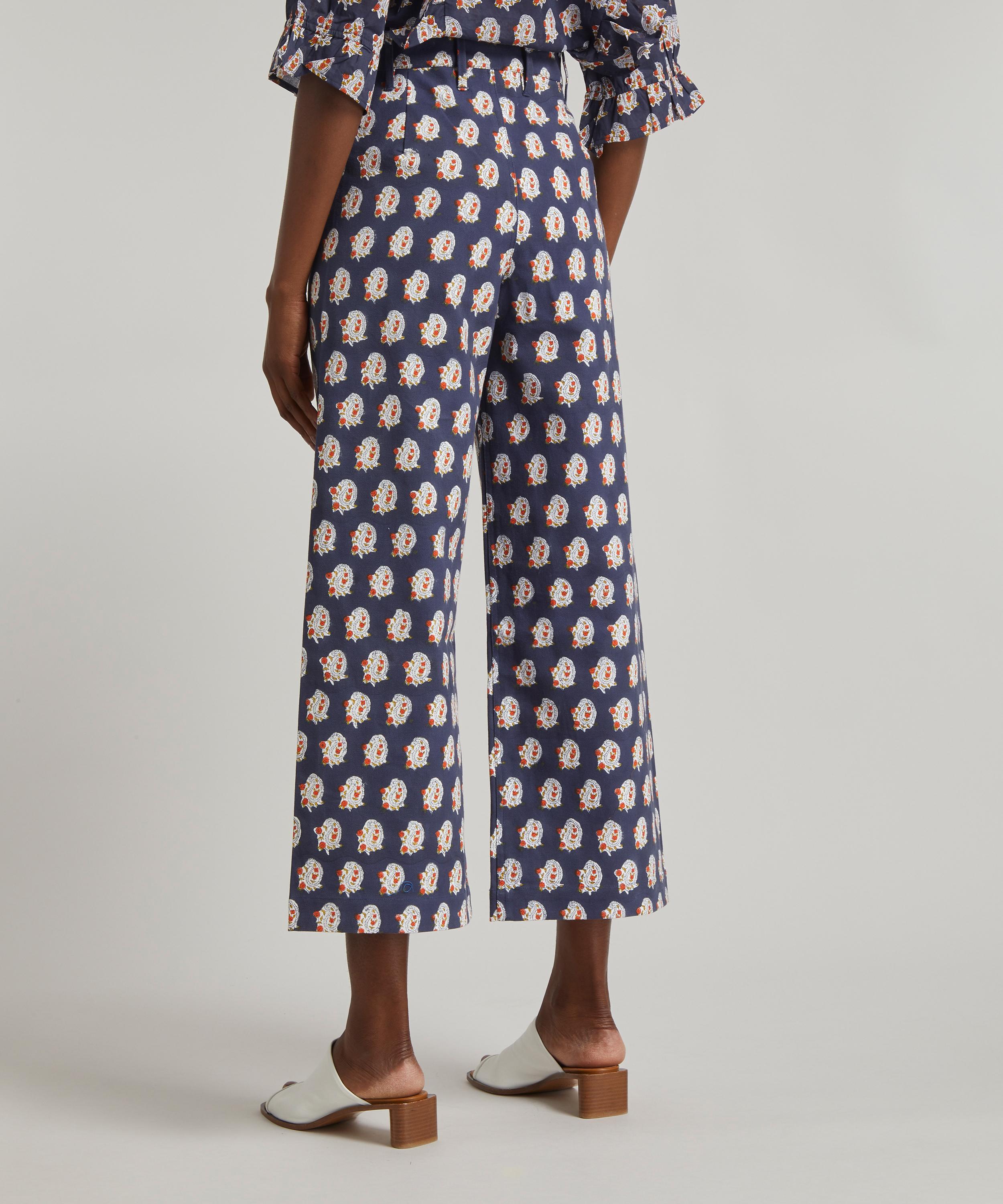 Bold and brimming with colour, these high-waisted Disco Pants are crafted from pure Indian cotton-canvas and cut to a cropped, wide-leg in a navy and orange paisley print pattern. A playful touch to your everyday edit, simply pair with the matching Hartley Small Paisley Print Top for an eclectic edge.