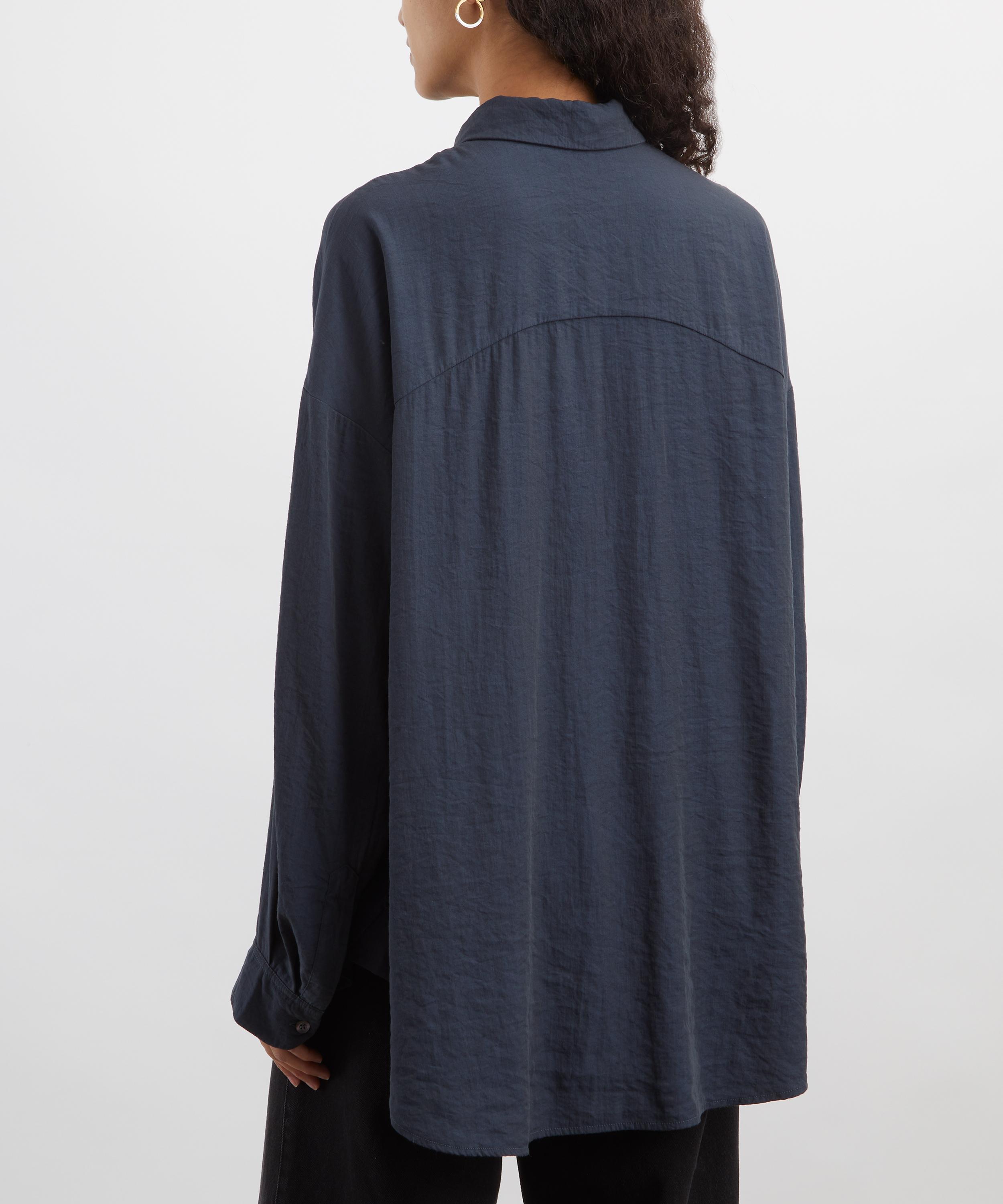 In a soft viscose fabric, this fluid shirt features an oversized fit complete with a point collar, mother-of-pearl button fastening, and chest pocket, offering an easy, refined take on tailoring.