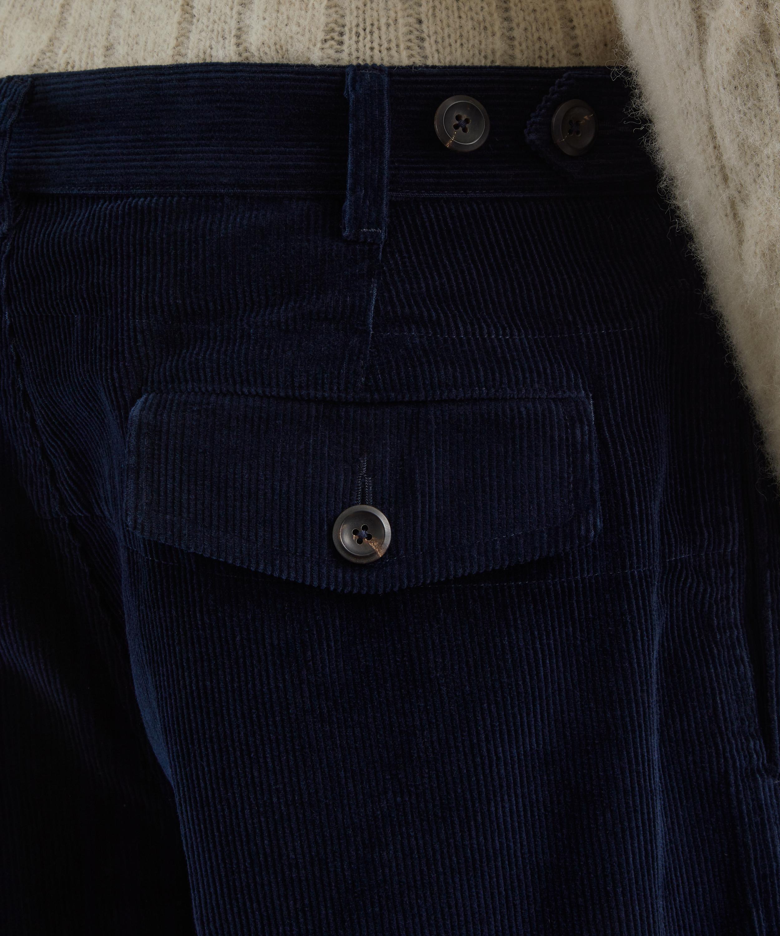 Comfortable, practical, and resilient, these everyday classics make getting dressed effortless in any weather. Cut from 8-wale cotton corduroy woven in Yorkshire’s Calder Valley, they feature a high-rise, full-leg silhouette with single pleats, a gentle taper, and utilitarian details like side adjusters, belt loops, and a concealed fob pocket.