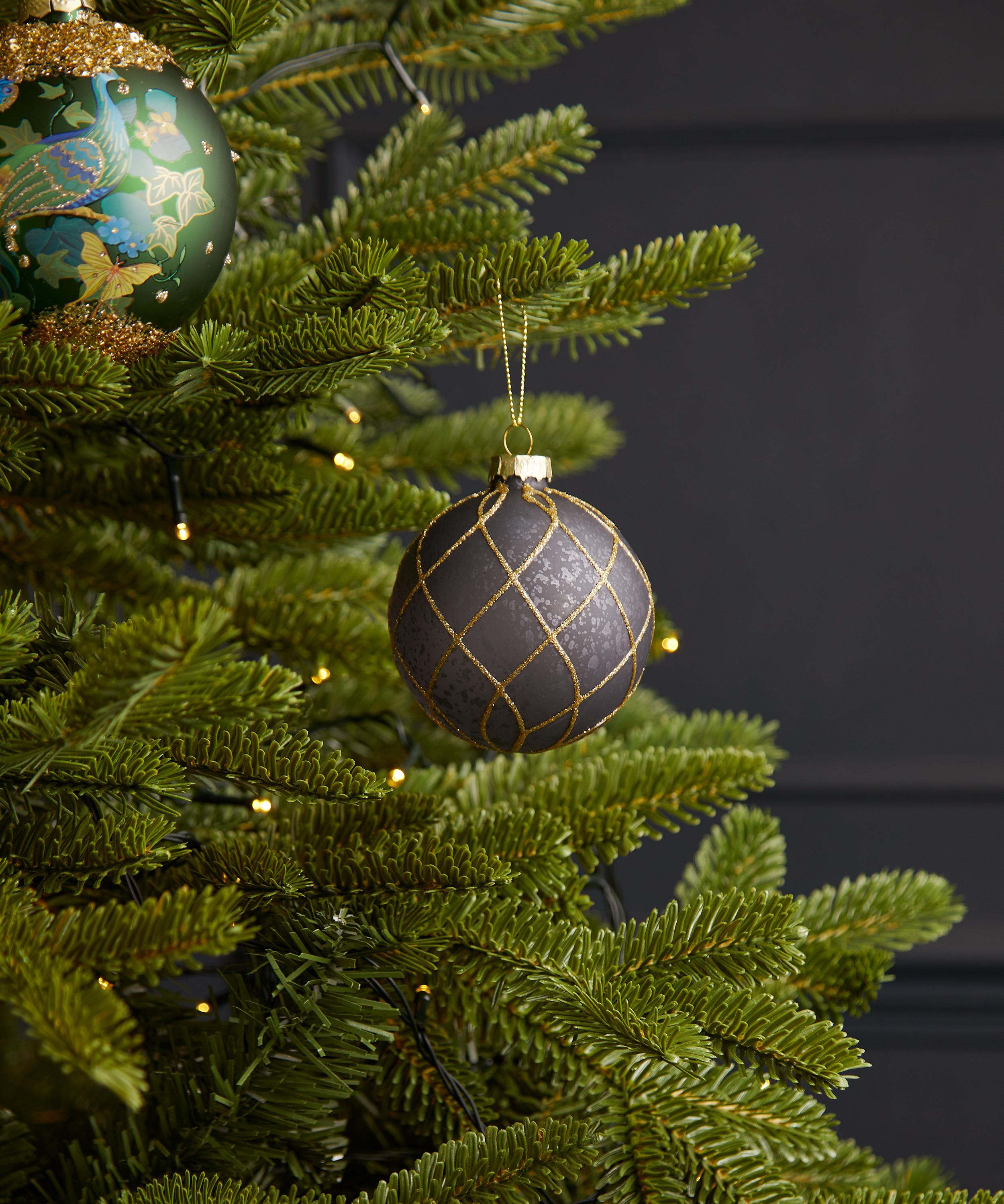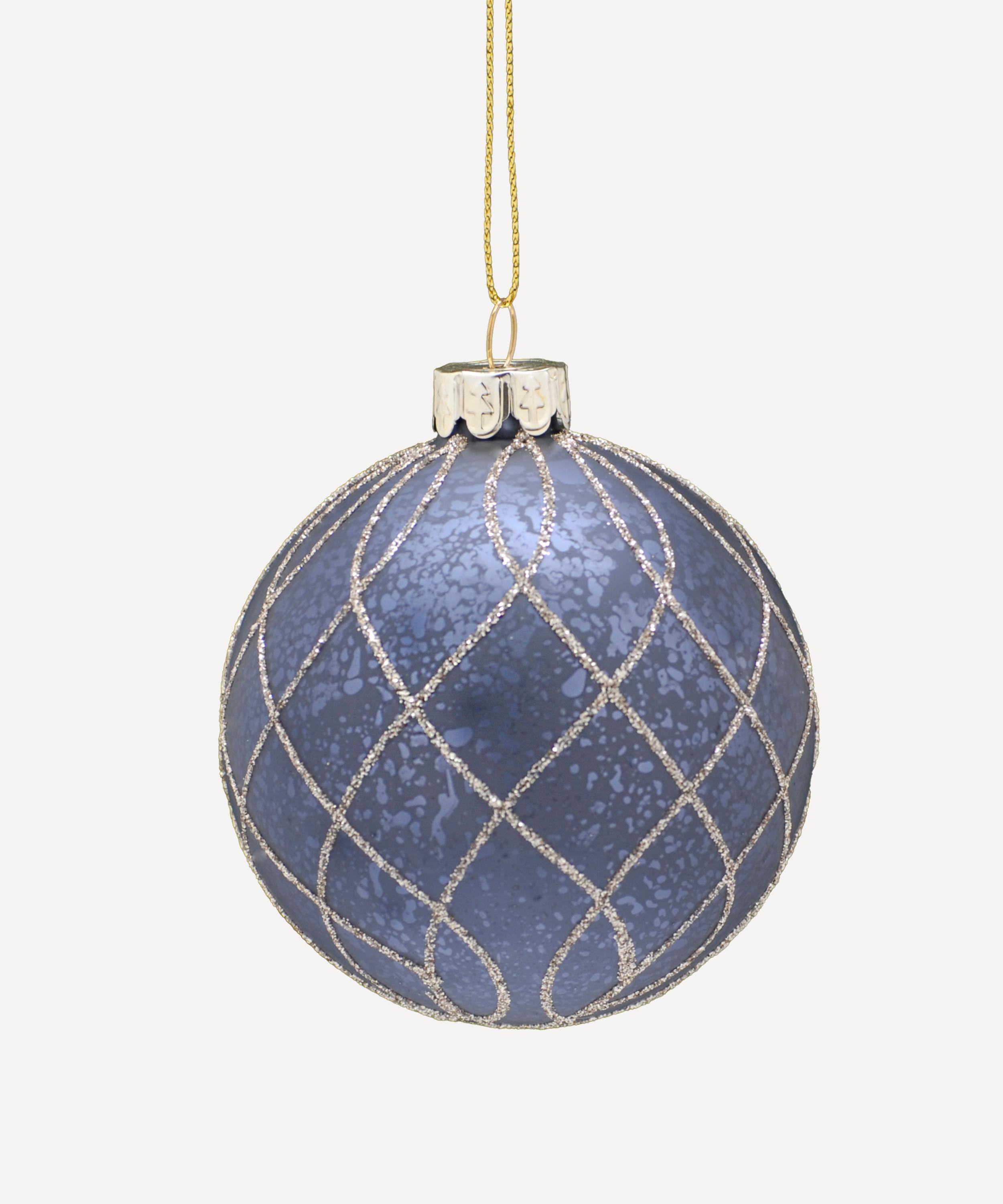 Add a touch of timeless charm to your evergreen pine with the Navy Glitter bauble, exuding whimsical, eclectic taste through its glittering details.