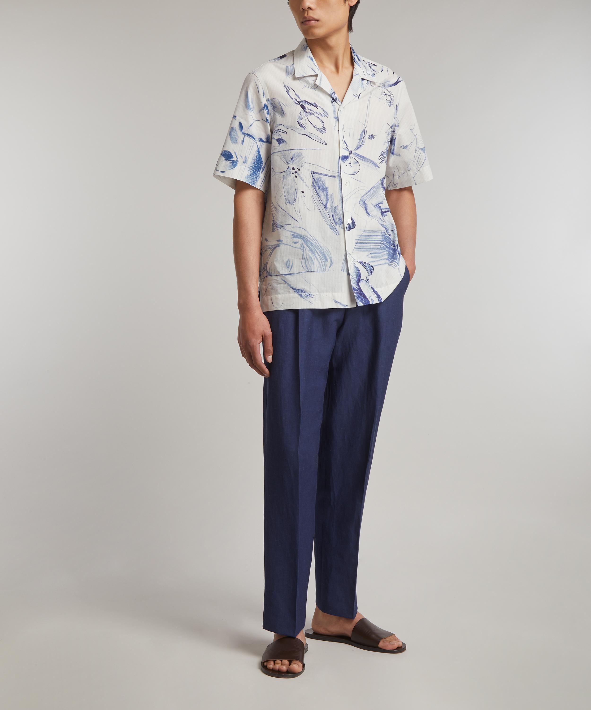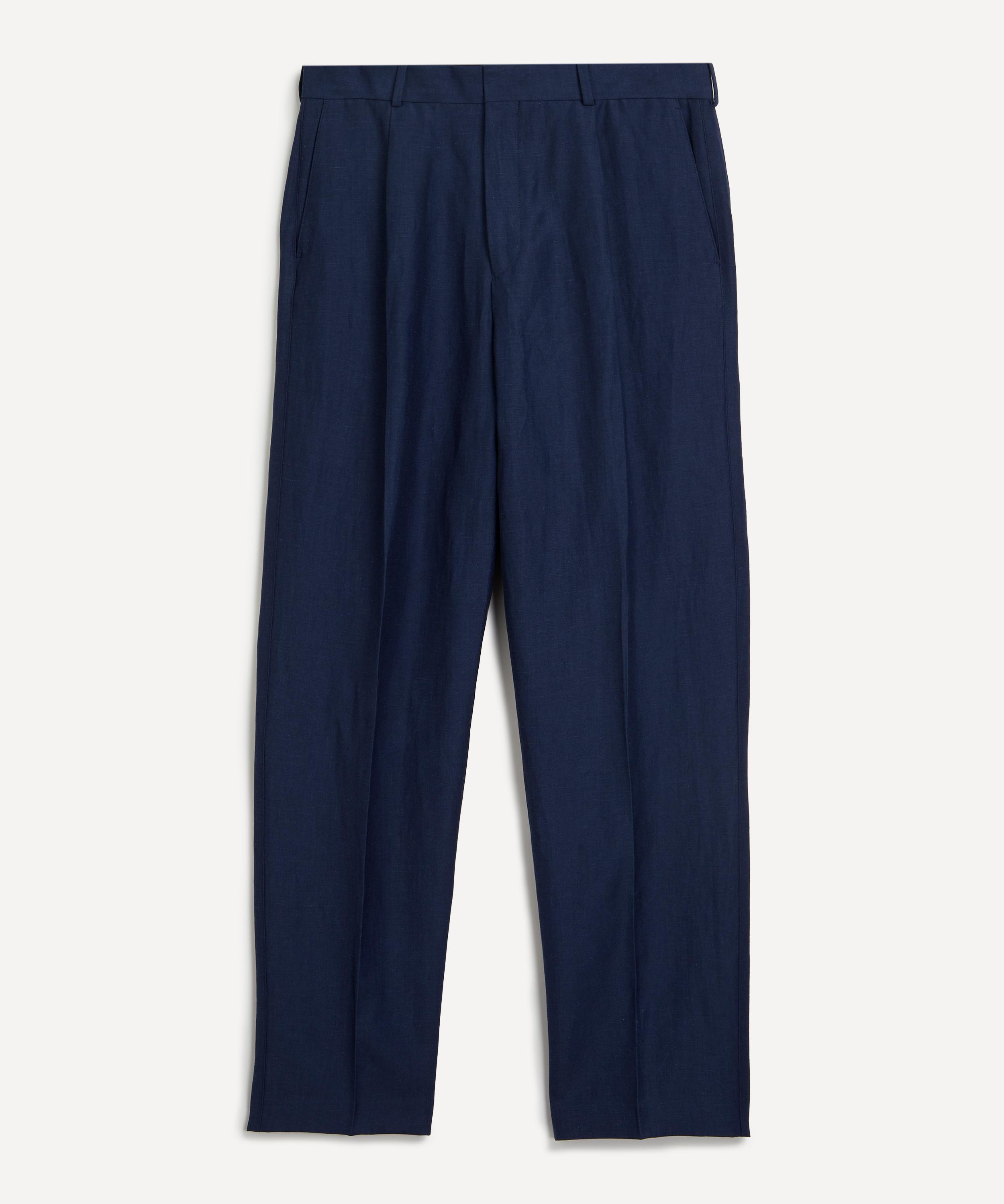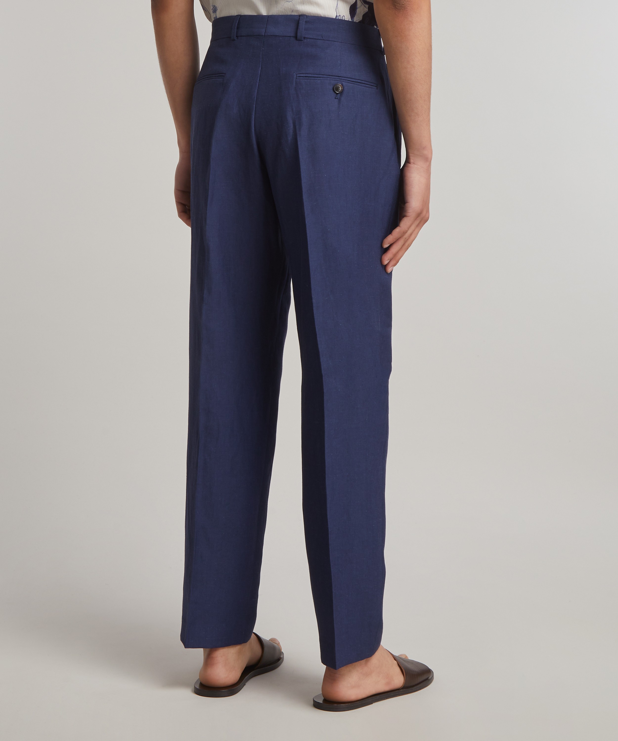 Made from a lightweight linen and wool blend, these navy chino trousers feature a flattering tapered leg complete with a concealed hook-and-eye fastening, belt loops, and single pleats for a classic tailored finish. Pair them with the matching Navy Linen Blazer to complete the look.