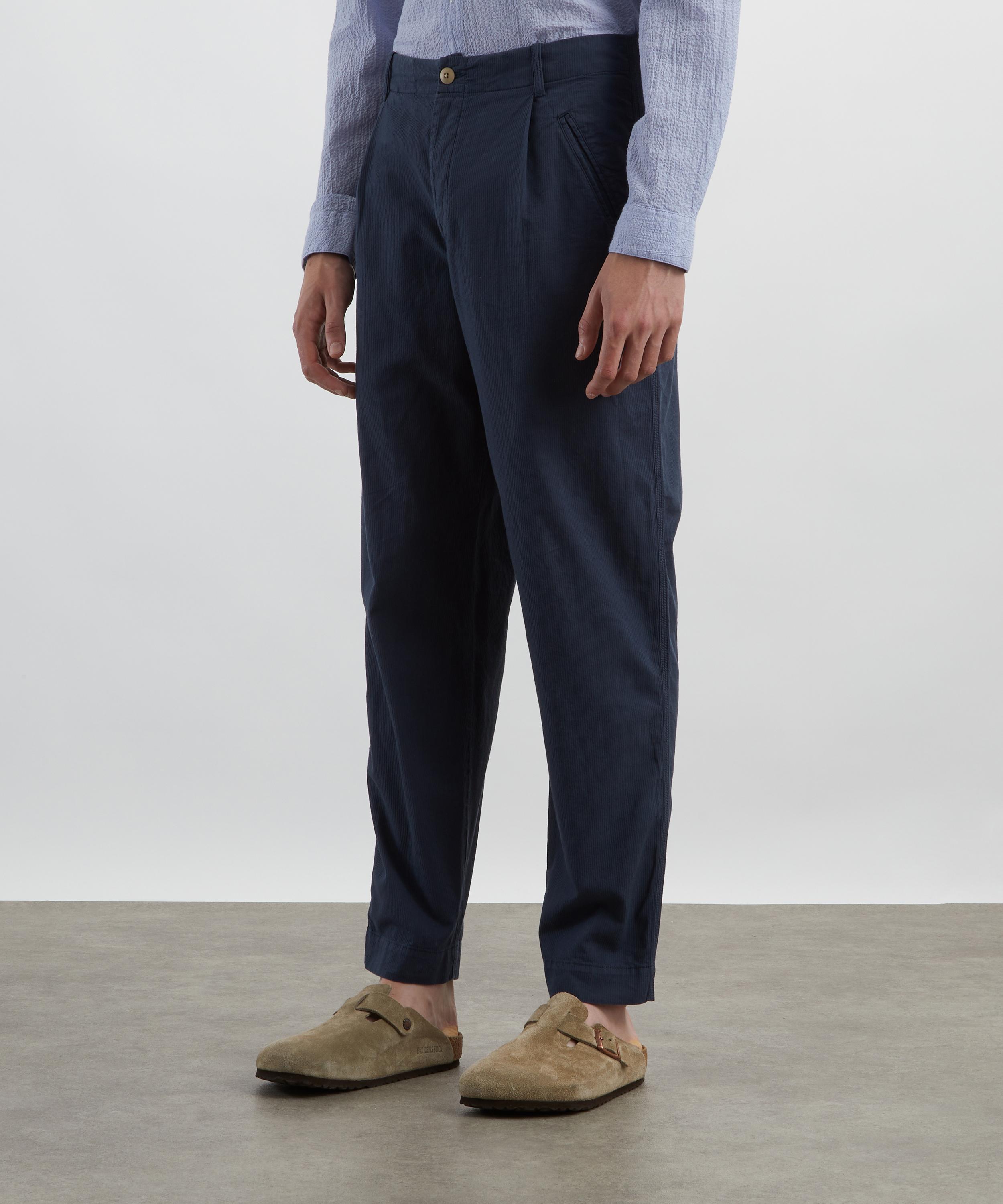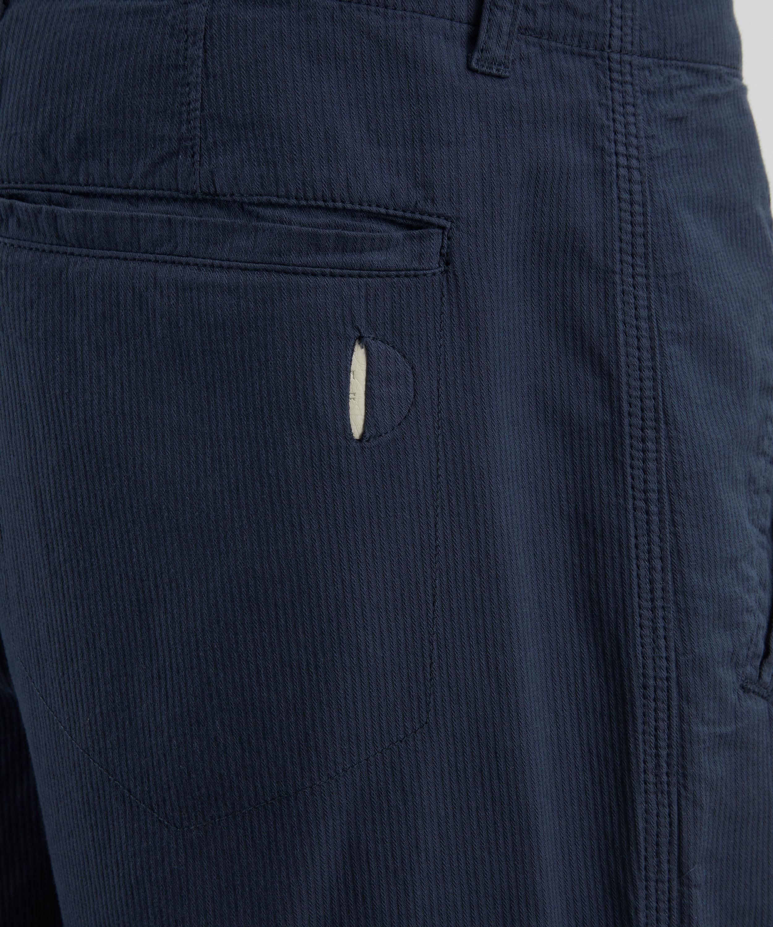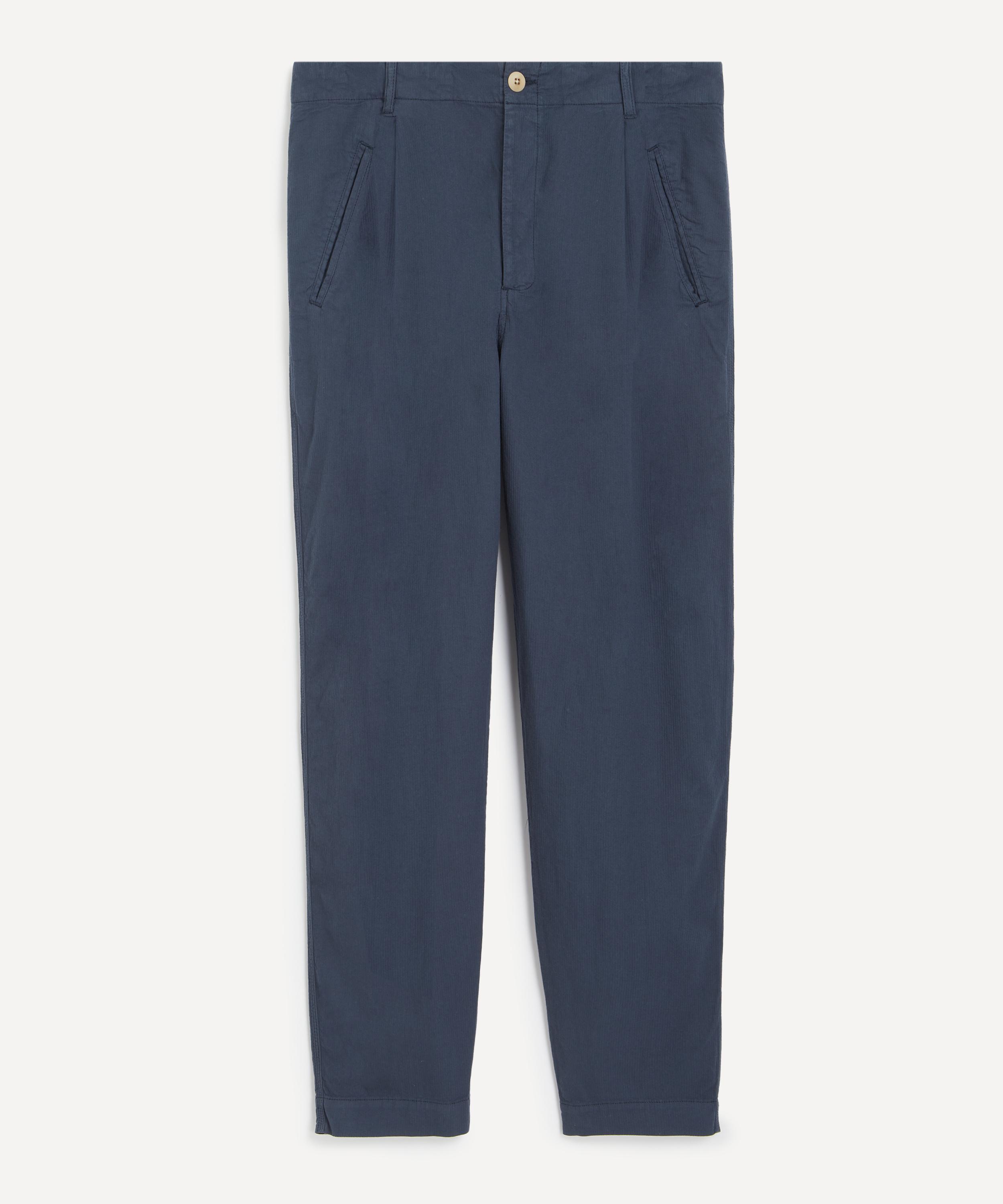 The Assembly trousers are cut with a slightly wider leg and a cropped silhouette, perfect for showing off your logo-adorned socks or latest trainer purchase. Tailored from navy mini stripe cotton fabric, they are breathable and ideal for everyday wear – swap your jeans for a pair.