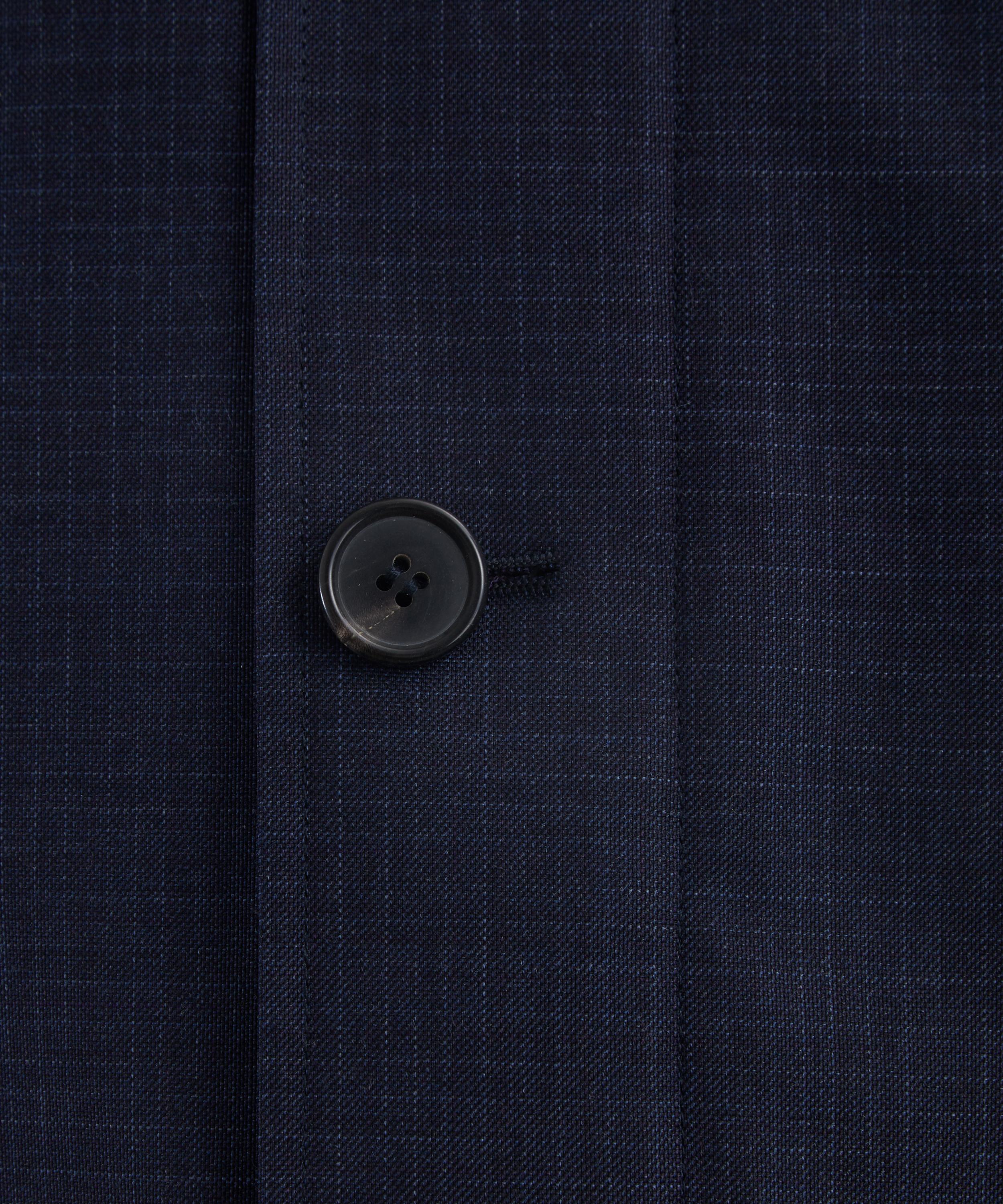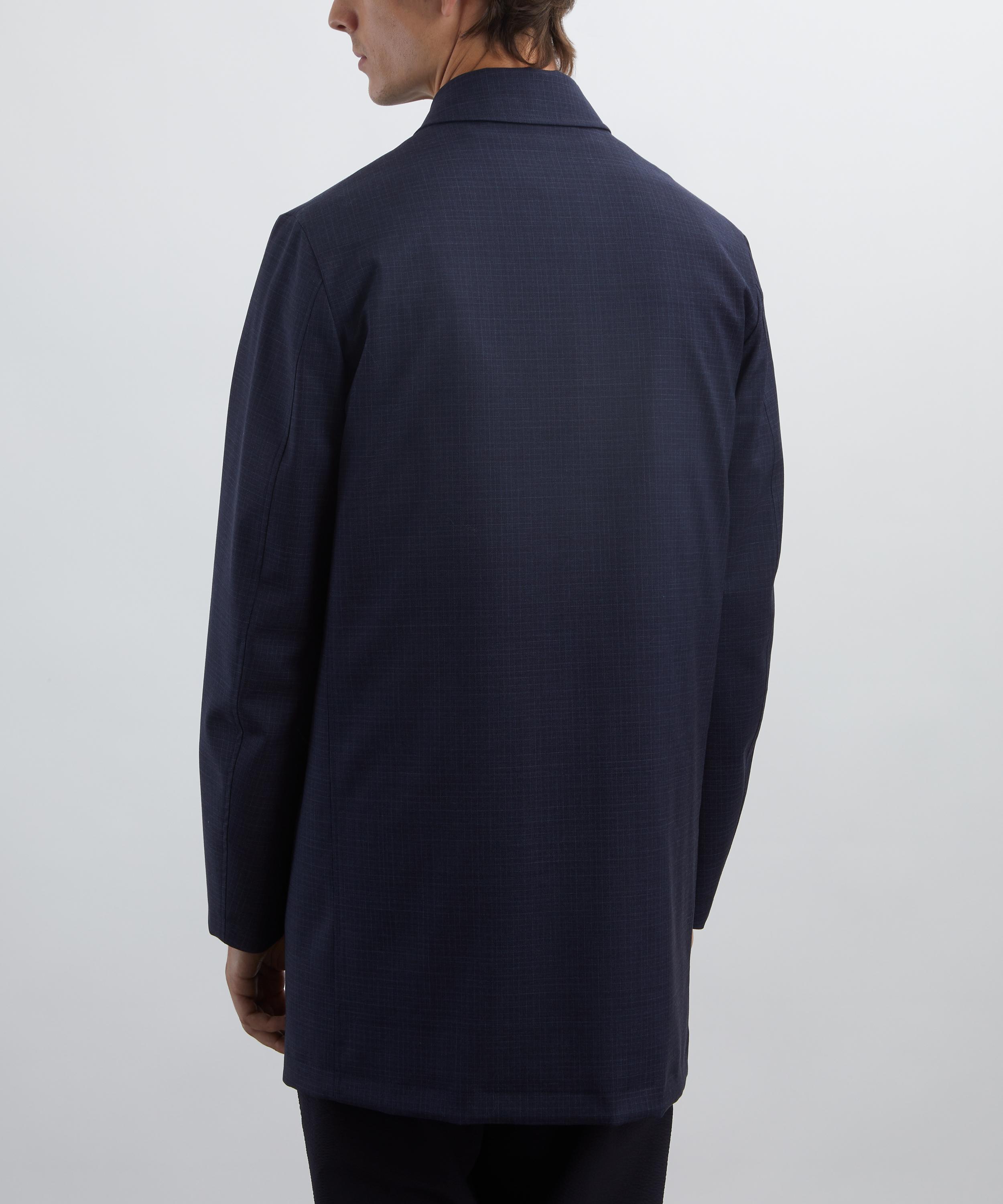 Crafted from a water-resistant and windproof stretch wool-linen blend, this navy plaid mac coat combines function with refined style. It features a removable quilted gilet made from technical fabric, offering added insulation for versatile layering. True to Paul Smith’s signature tailored aesthetic, it’s finished with a sharp point collar, button closure, and flap side pockets.